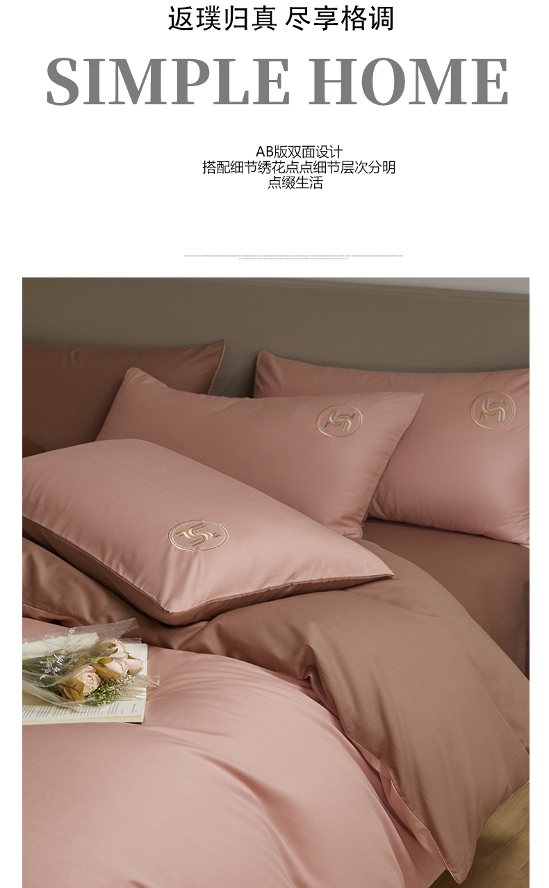 商品名称:梵克保罗 2024新款全棉轻奢纯色双拼刺绣四件套 豆沙咖