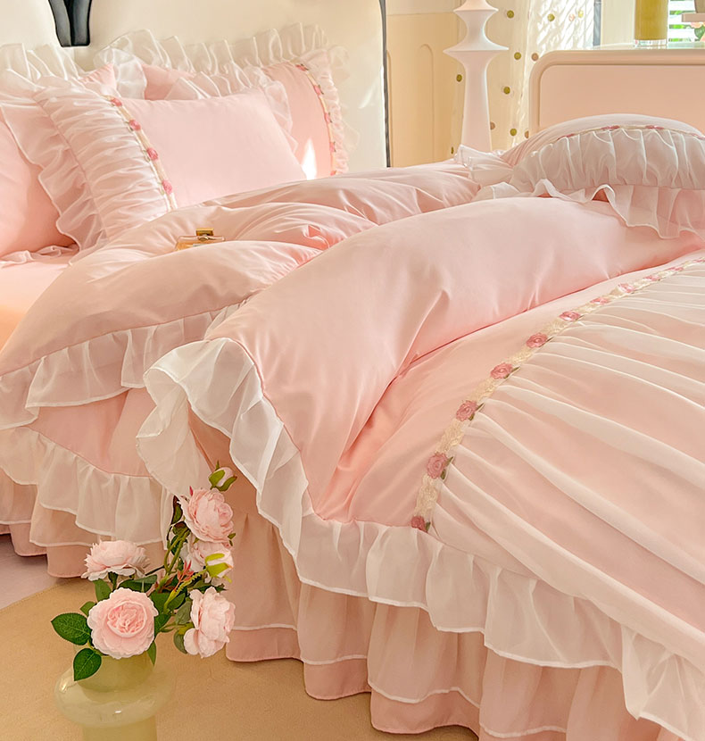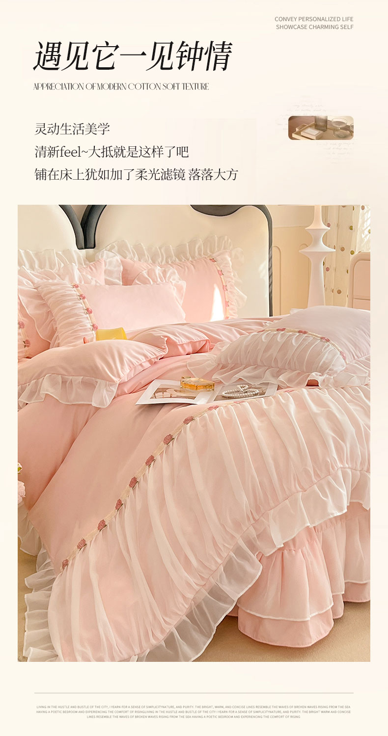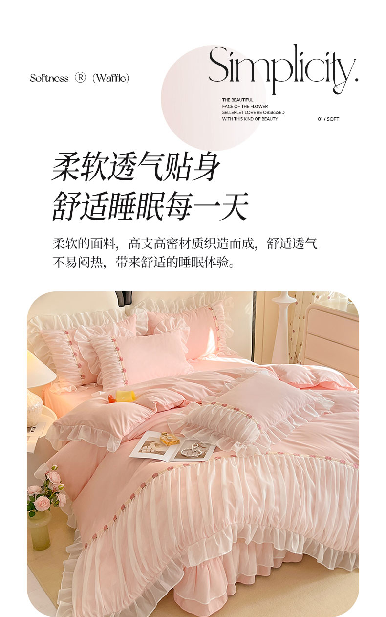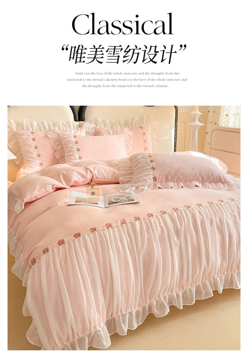 (总)芭比蔓家纺 2025新款亲肤磨毛法式浪漫四件套-依恋,依恋-粉色,依恋-蓝色,依恋-绿色,依恋-米色,依恋-玉色