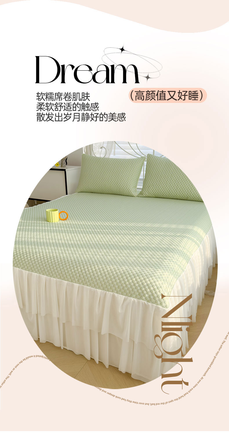 当前位置: 91家纺网 > 商品网购 > 床上用品 > 凉席 > 其他凉席 > 灰鲸 2025新款A类舒适凉豆豆华夫格床裙款凉席 凉豆豆-马尔斯绿床裙款