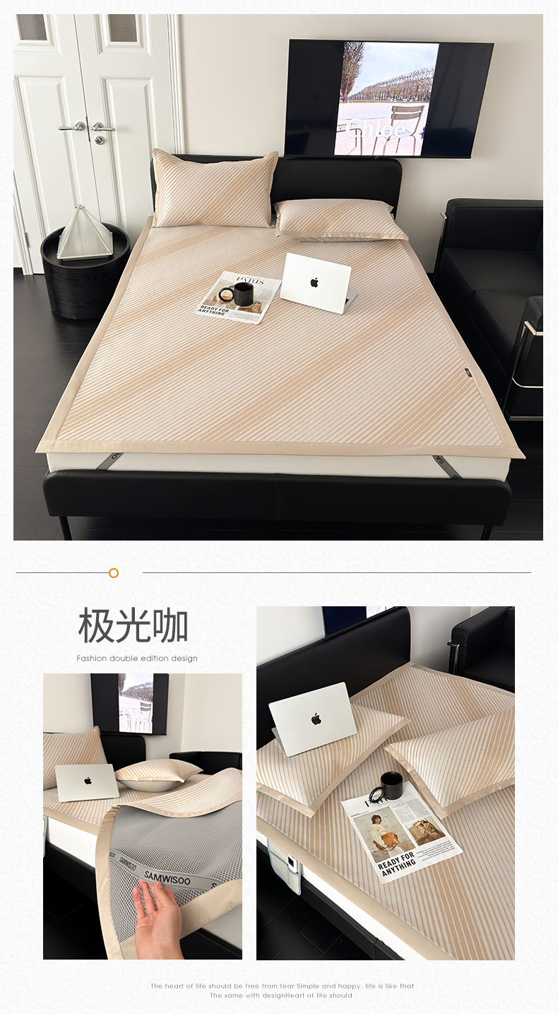 商品名称:三味舒屋 2025新款抗菌凉感提花席简约冰丝养生凉席-简生活系列(床席款) 床席 极光咖