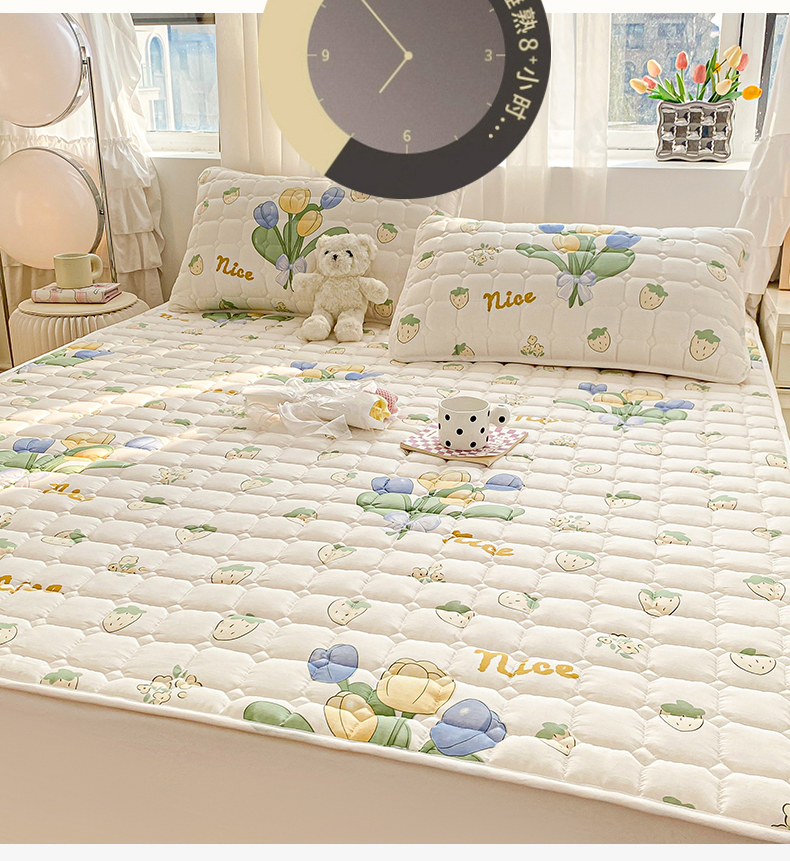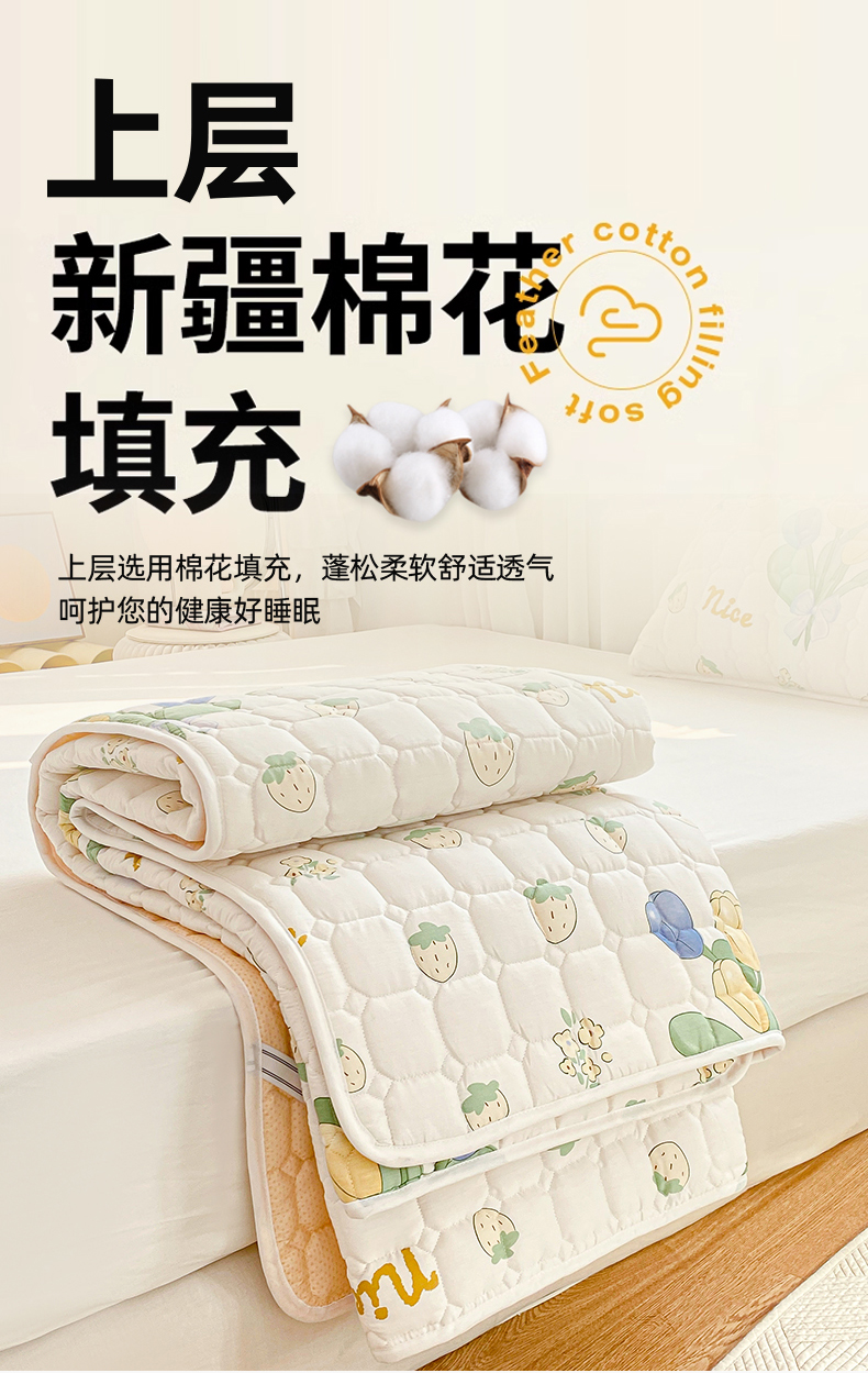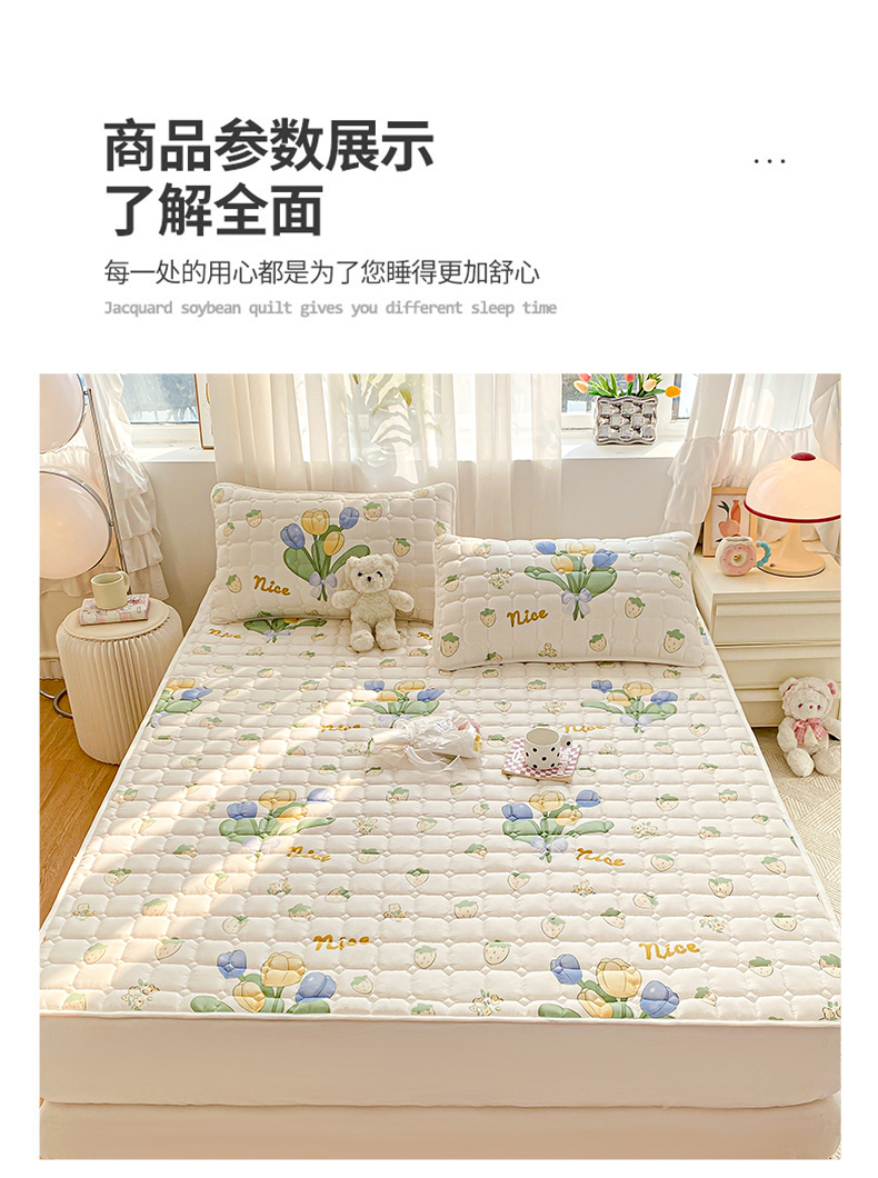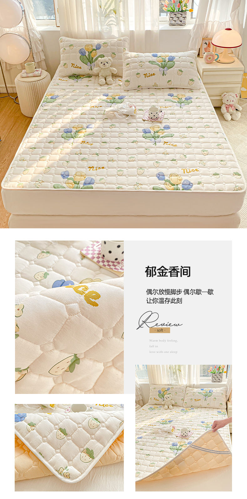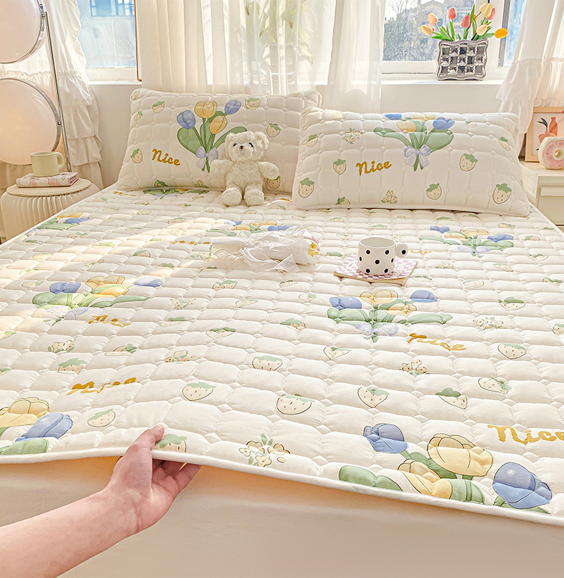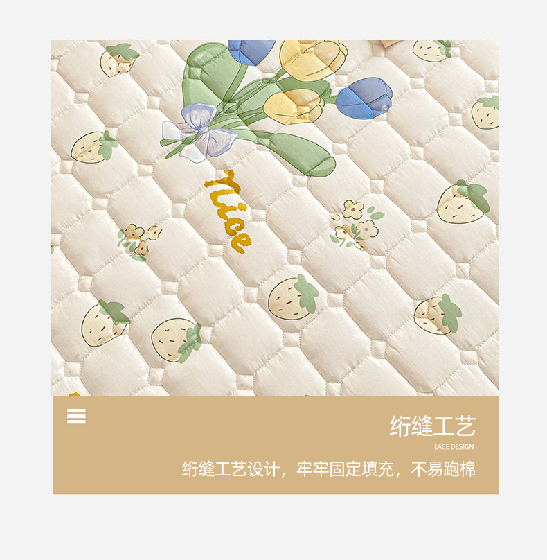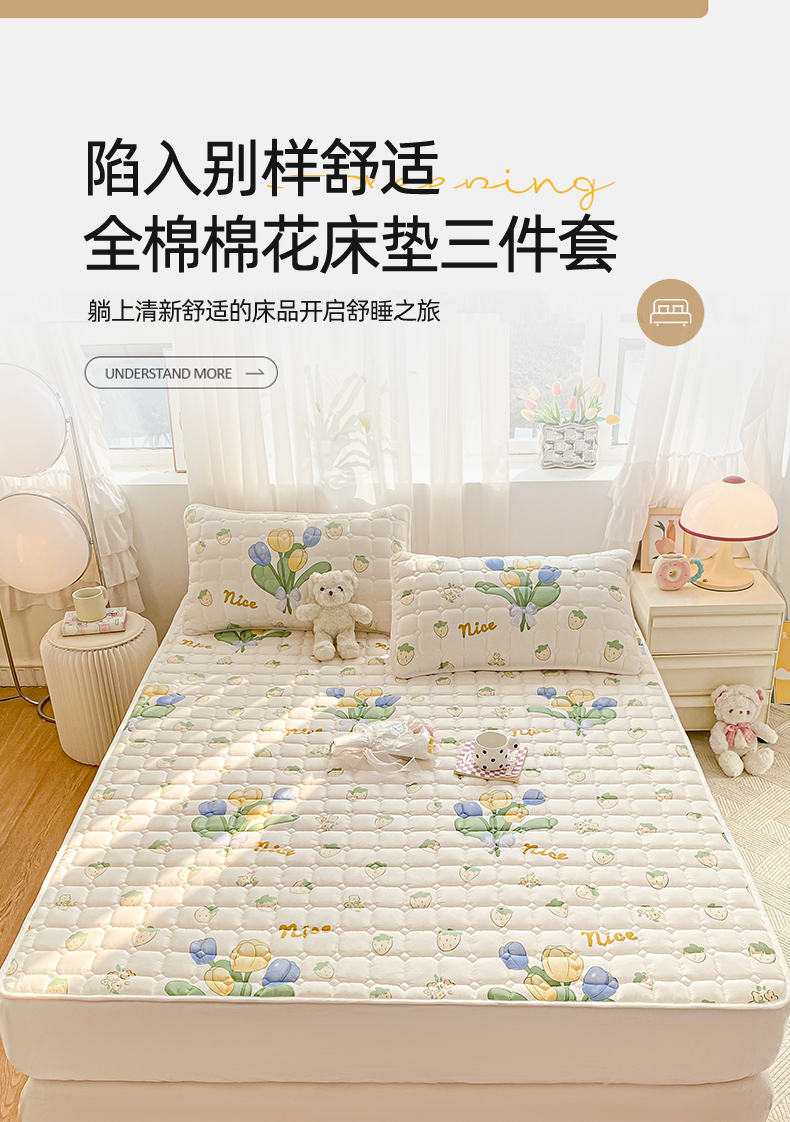 • 91家纺网 家纺一手货源 找家纺 萌飞2024新款全棉新疆棉花夹棉床垫加厚床褥垫被三件套印花 郁金香间