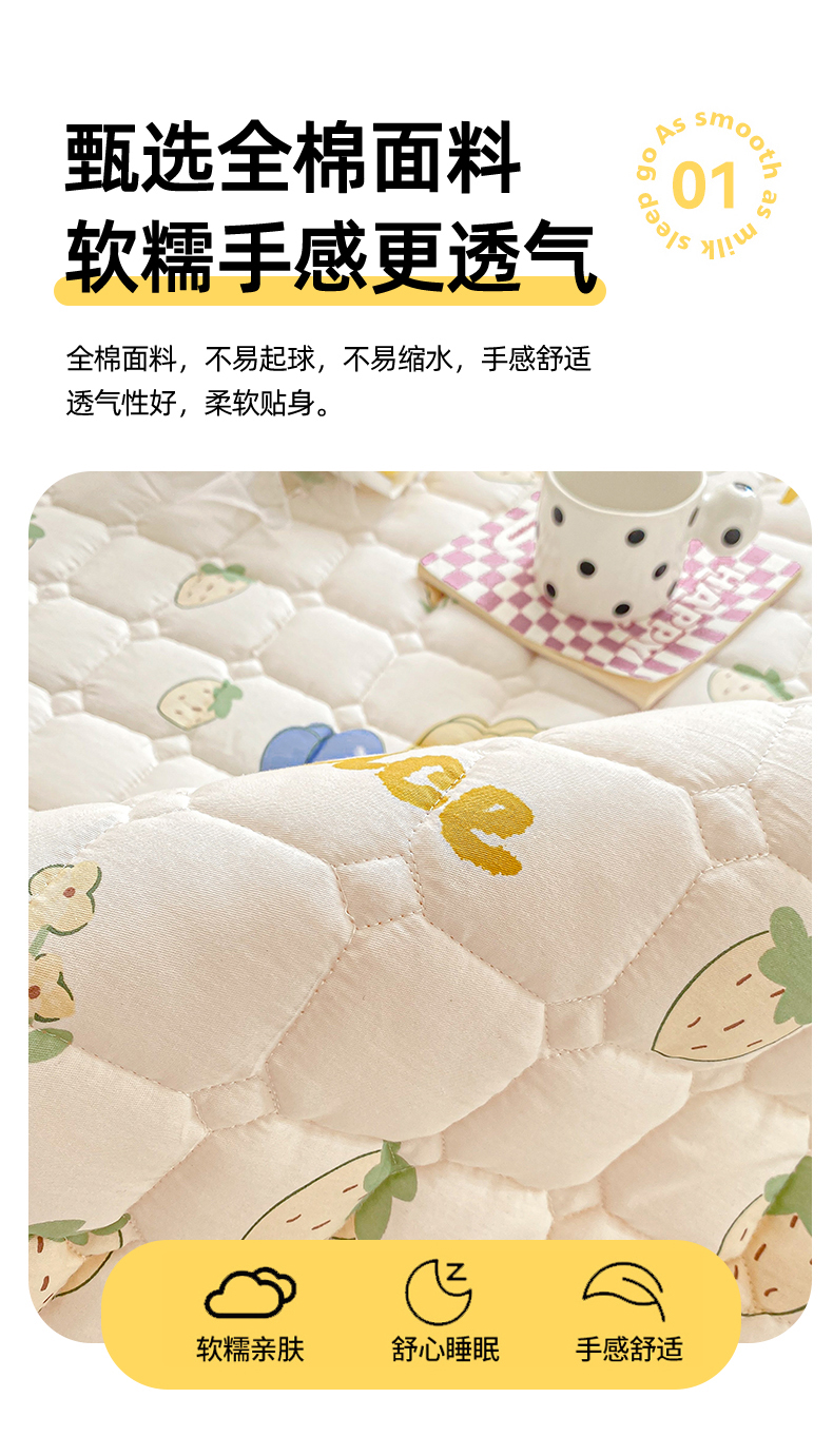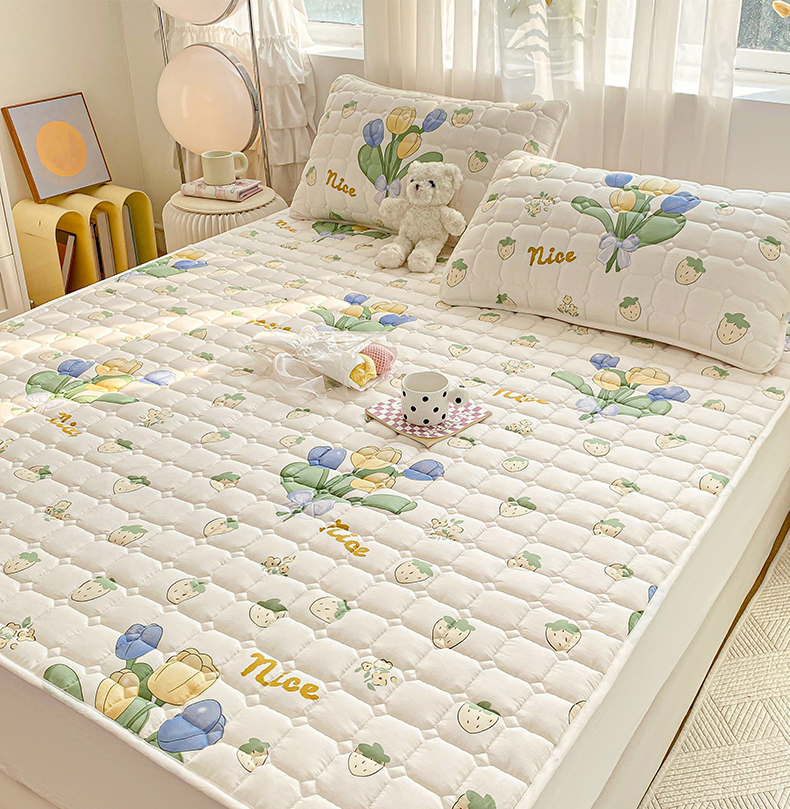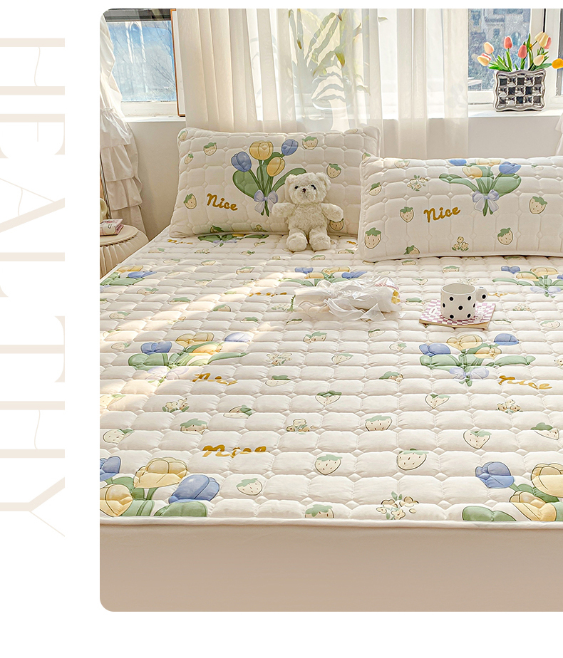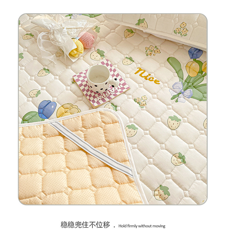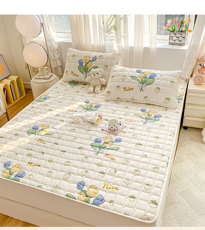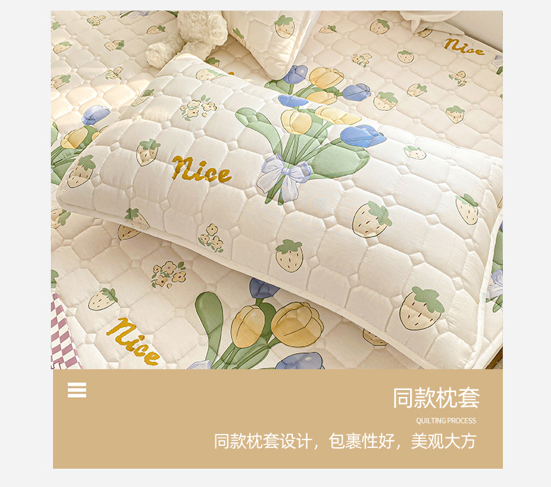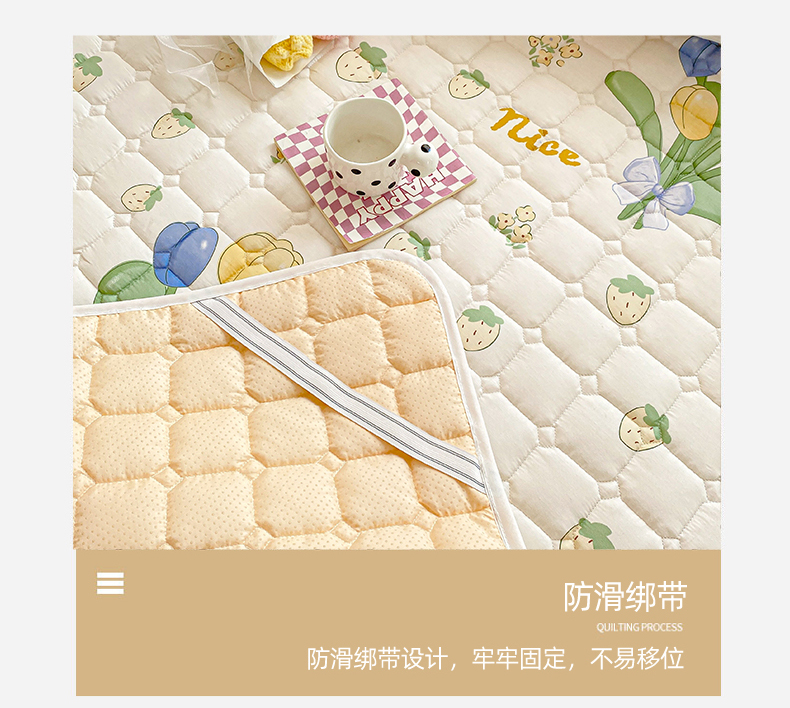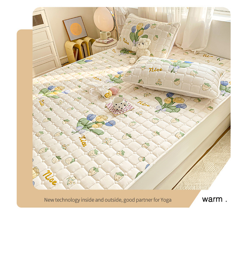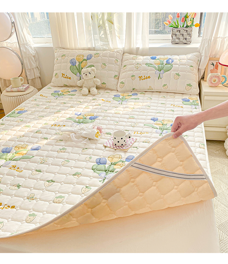 • 91家纺网 家纺一手货源 找家纺 萌飞2024新款全棉新疆棉花夹棉床垫加厚床褥垫被三件套印花 郁金香间