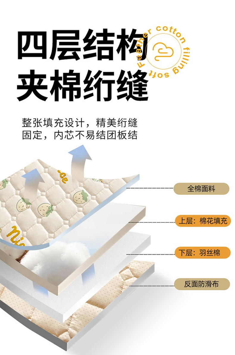当前位置: 91家纺网 > 商品网购 > 床垫/床褥 > 萌飞2024新款全棉新疆棉花夹棉床垫加厚床褥垫被三件套印花 郁金香间