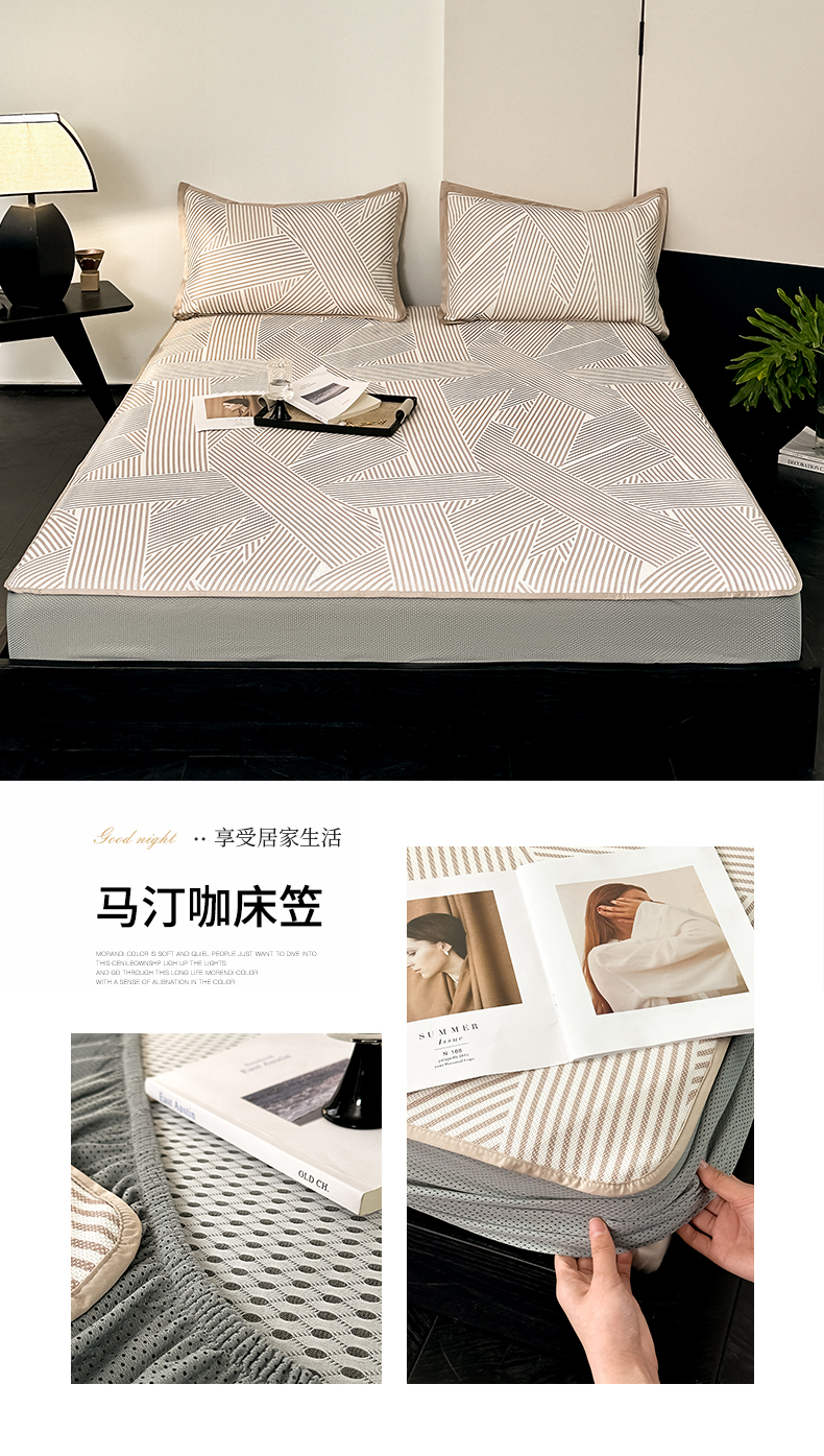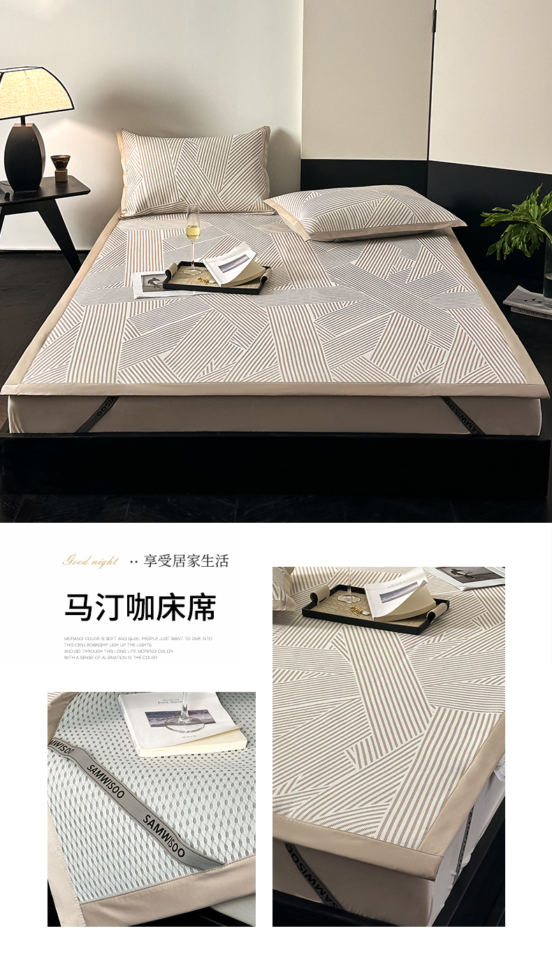 (总)三味舒屋 2025新款麦吉拉时尚印花冰藤凉席席子,麦吉拉 米 床席,麦吉拉 蓝 床席,麦吉拉蓝 床笠,麦吉拉米 床笠