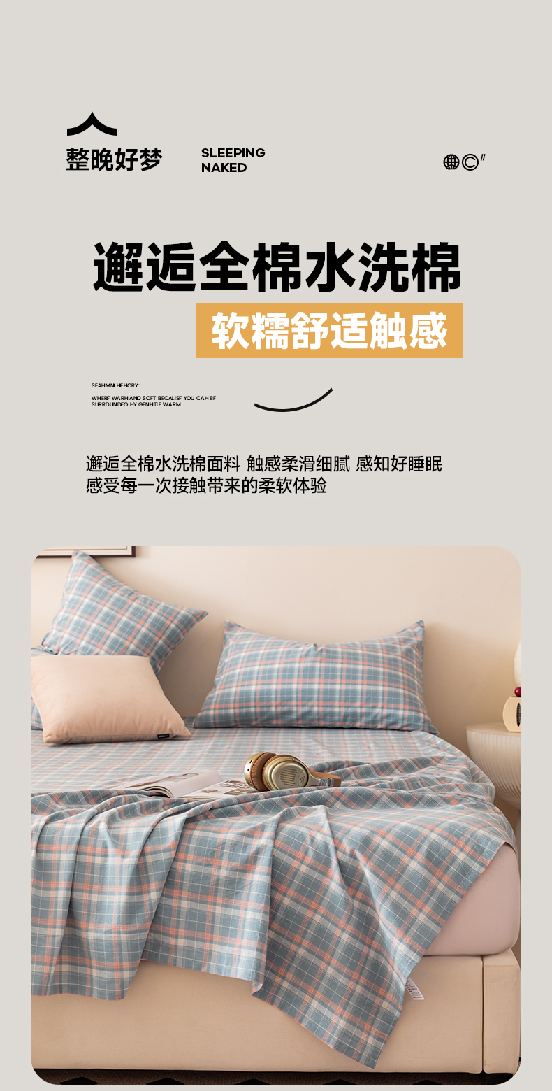(总)寐眠 2025新款印花牛奶绒三角针贝壳款四件套,红蓝律动,黄绿森语,米韵红痕,墨格独白,暖黄千鸟,桃粉千鸟,雾灰千鸟,棕格时光