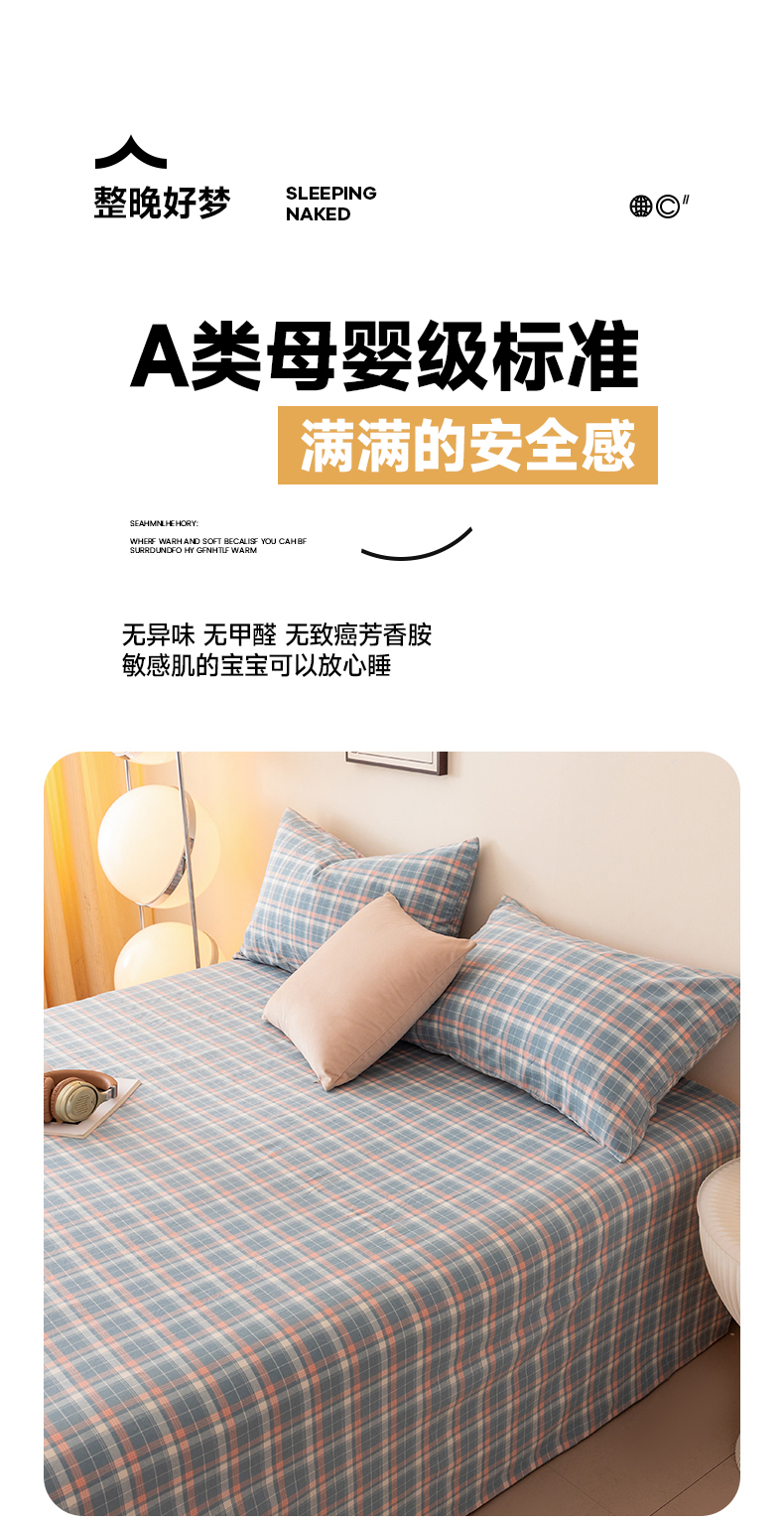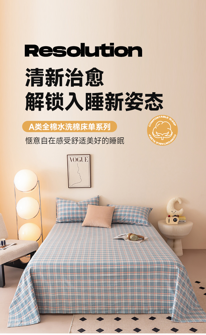 寐眠 2024新款全棉水洗棉床单床笠单品-单床单 梦幻蓝