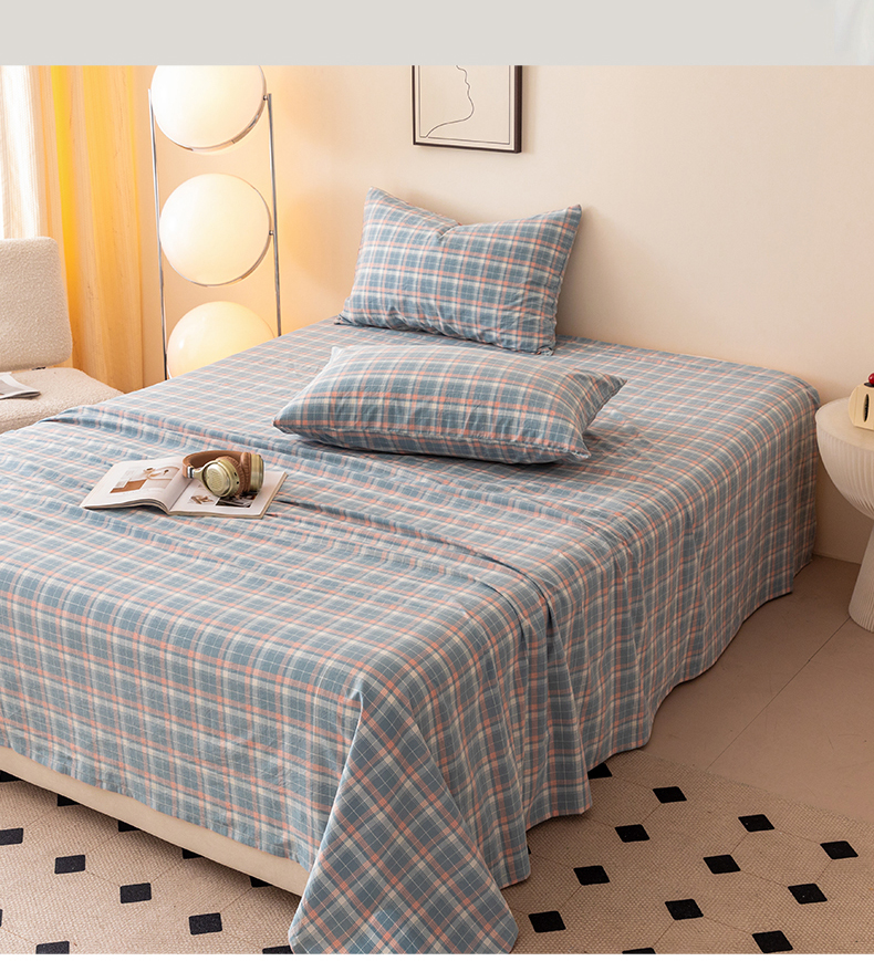 (总)寐眠 2023新款全棉色织水洗棉儿童夏被,粉大格,粉小格,灰白格,蓝大格,蓝小格,雾蓝格,小粉格