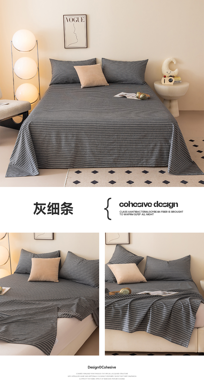 商品名称:寐眠 2024新款全棉水洗棉床单床笠单品-单床单 灰细条