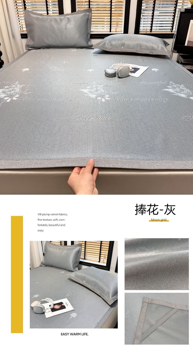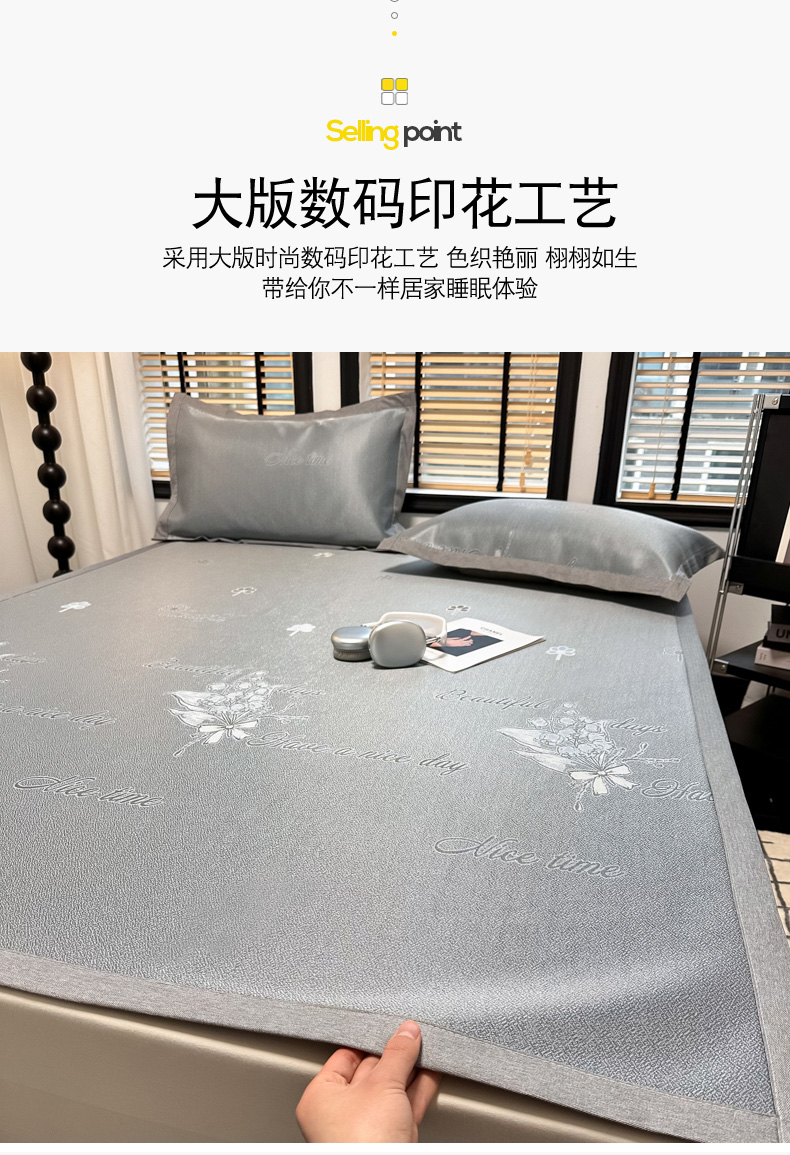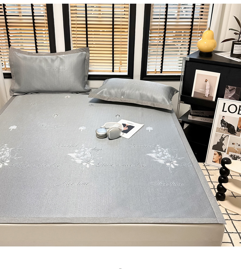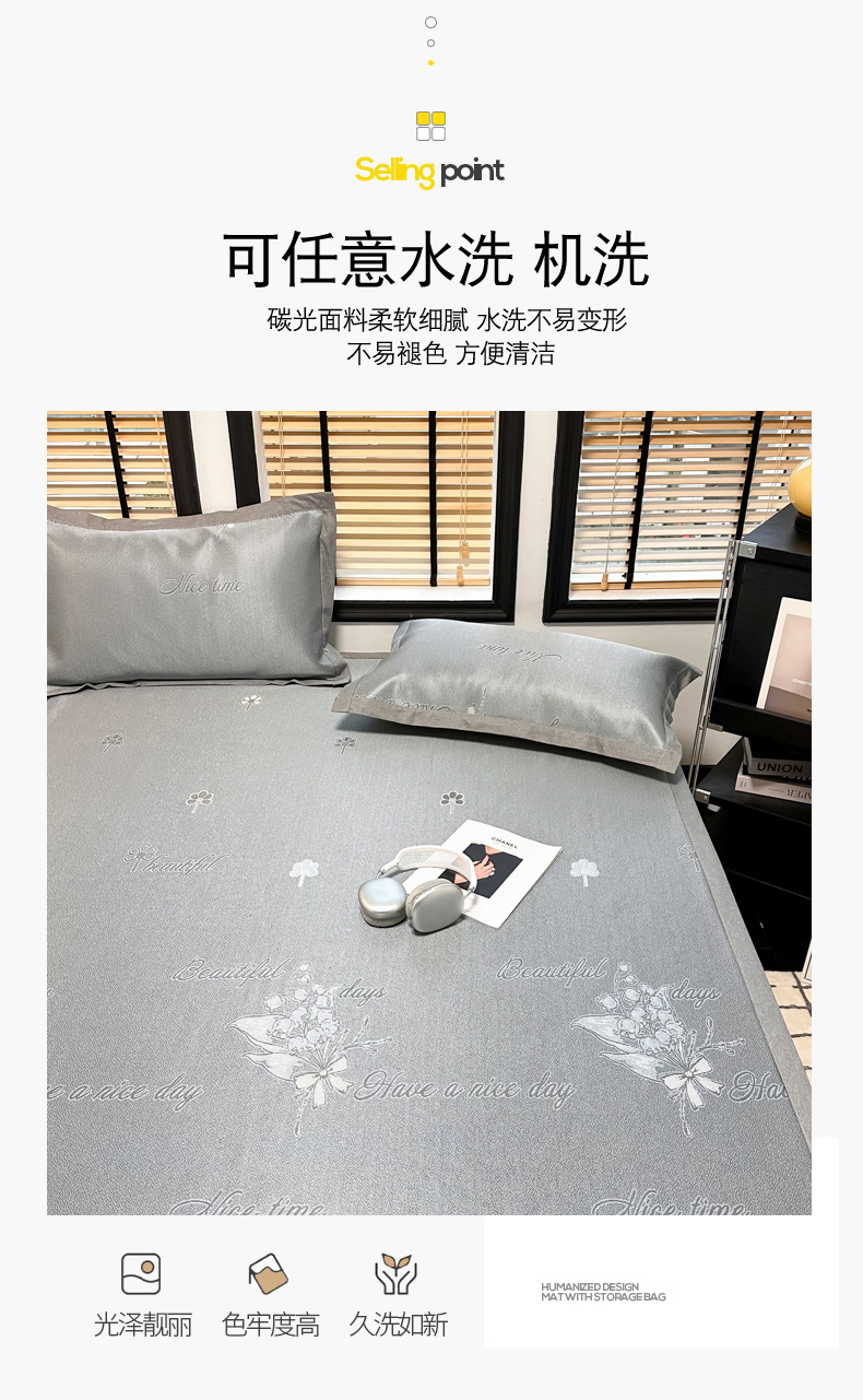 商品名称:柒月家居2024新款AB版简约时尚600D提花凉席冰丝席 捧花-灰