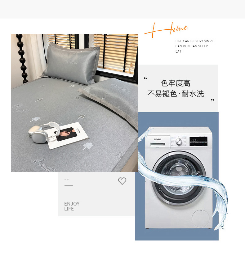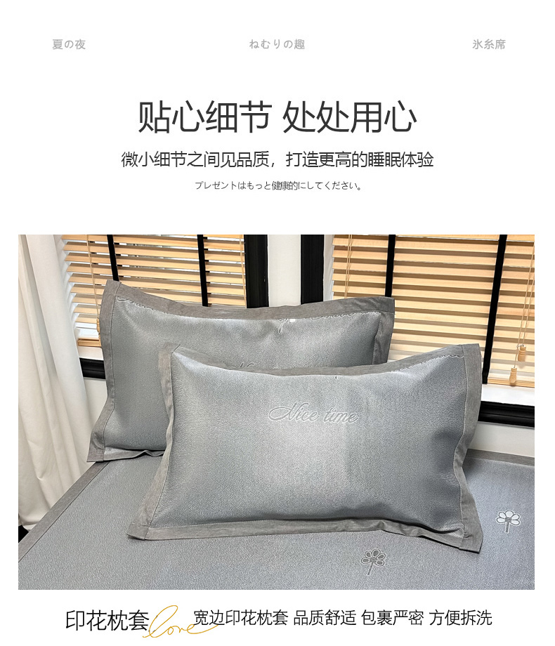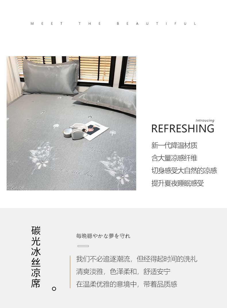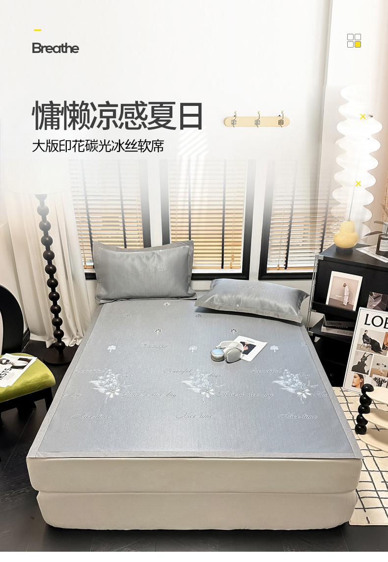 商品名称:柒月家居2024新款AB版简约时尚600D提花凉席冰丝席 捧花-灰