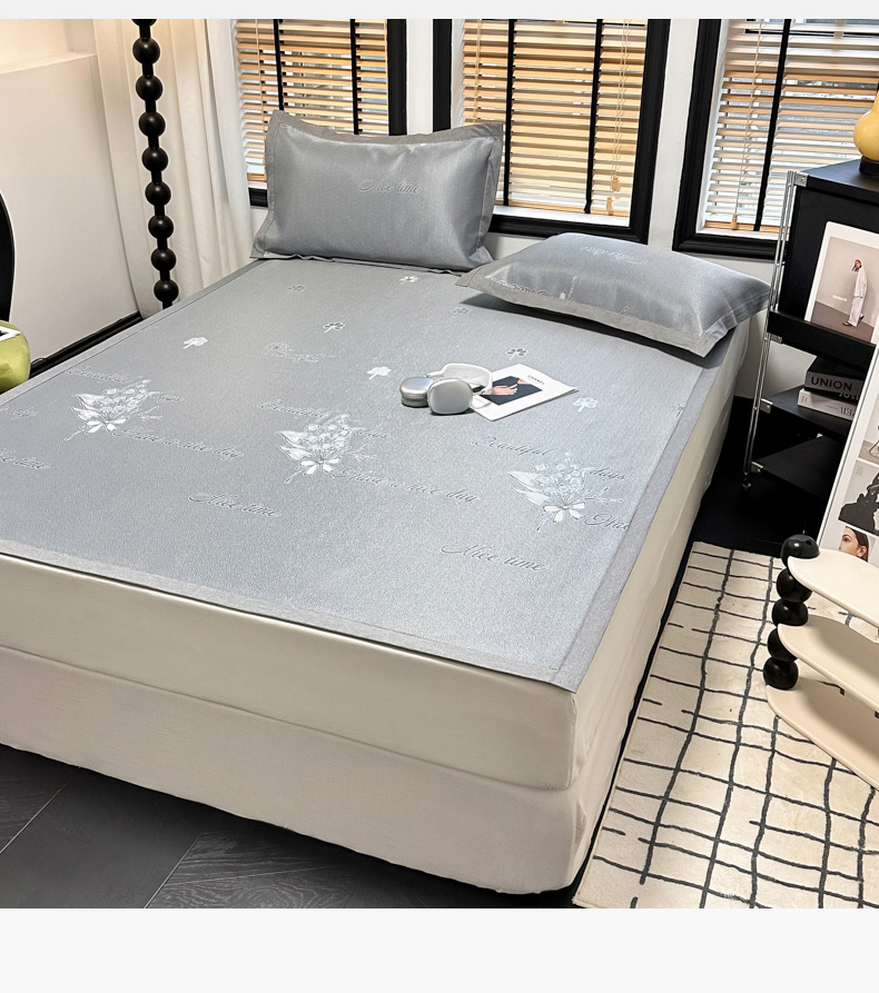 柒月家居2024新款AB版简约时尚600D提花凉席冰丝席 捧花-灰