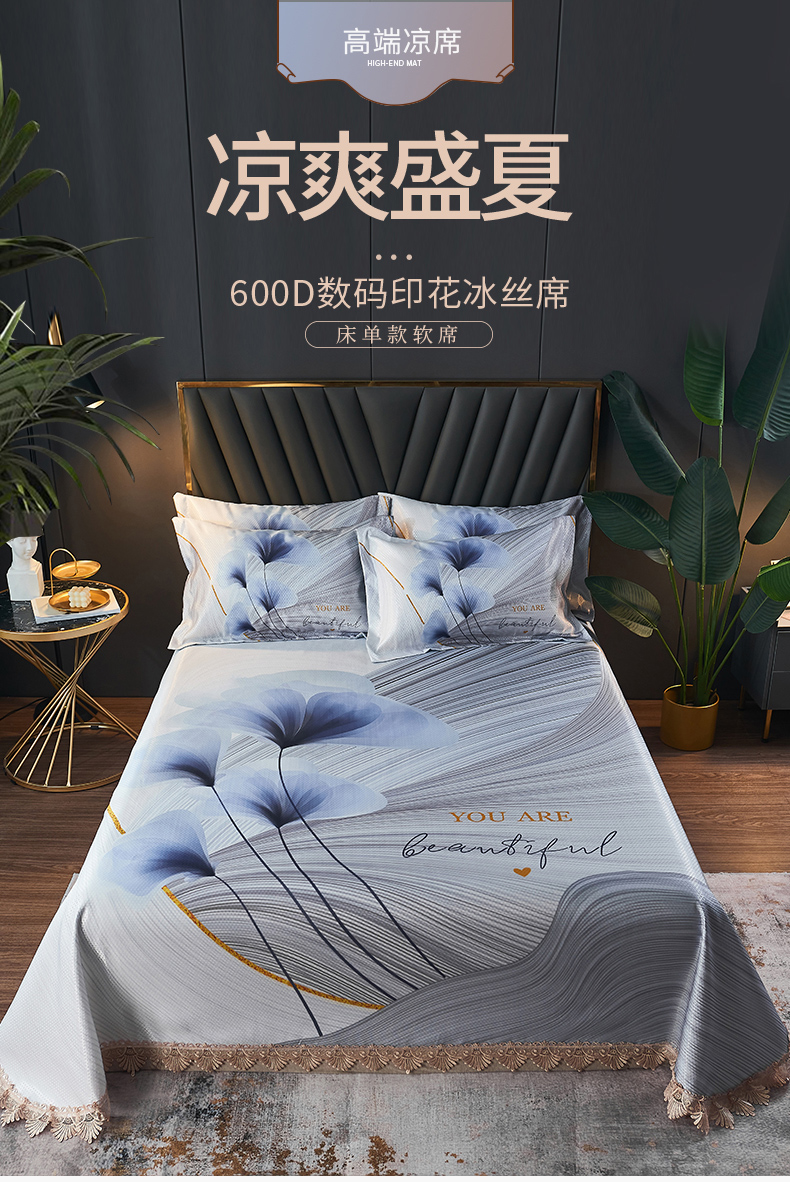 商品名称:其奥家纺 2025新款900d窝蜂冰丝凉席三件套 恋夏时光
