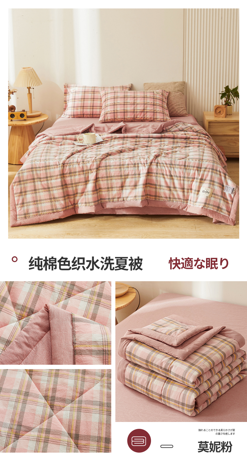 • 91家纺网 家纺一手货源 找家纺 恋人优选 2024新款纯棉色织水洗夏被 莫妮粉