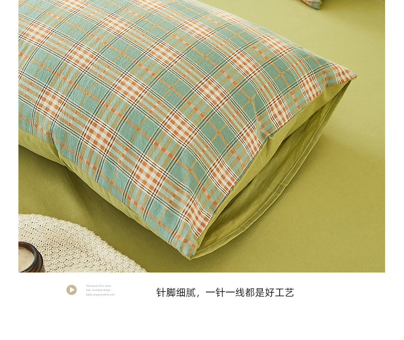凡客家居 2024新款全棉色织水洗棉枕套 轻萝—绿