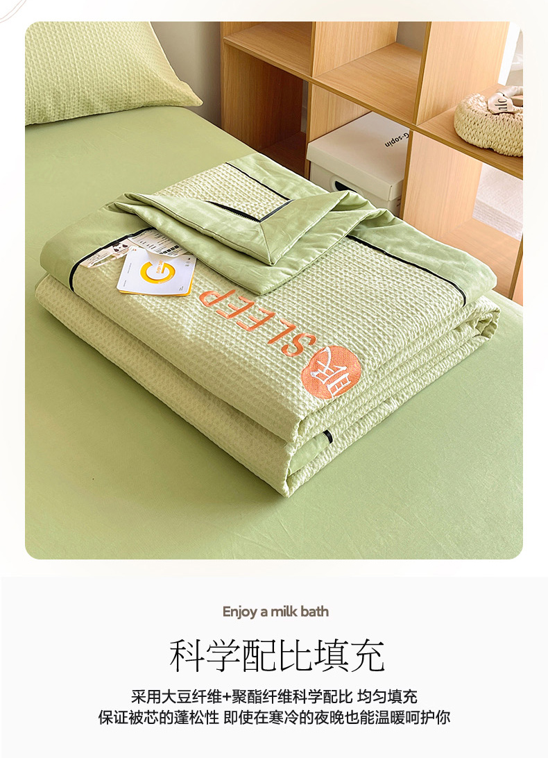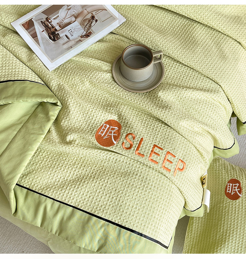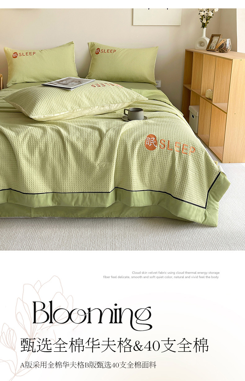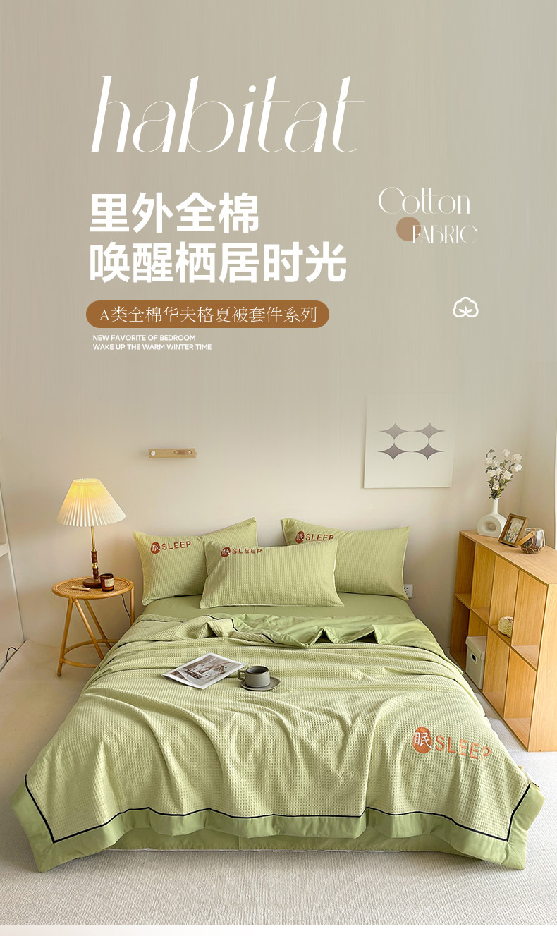 • 91家纺网 家纺一手货源 找家纺 眠博士 2024新款A类全棉华夫格拼角夏被套件系列 夏被-果绿