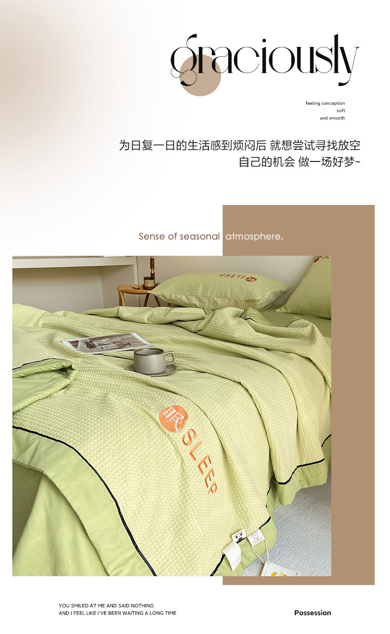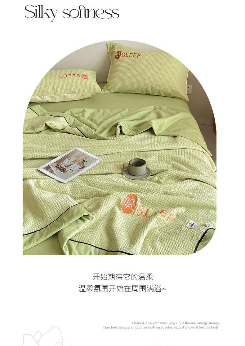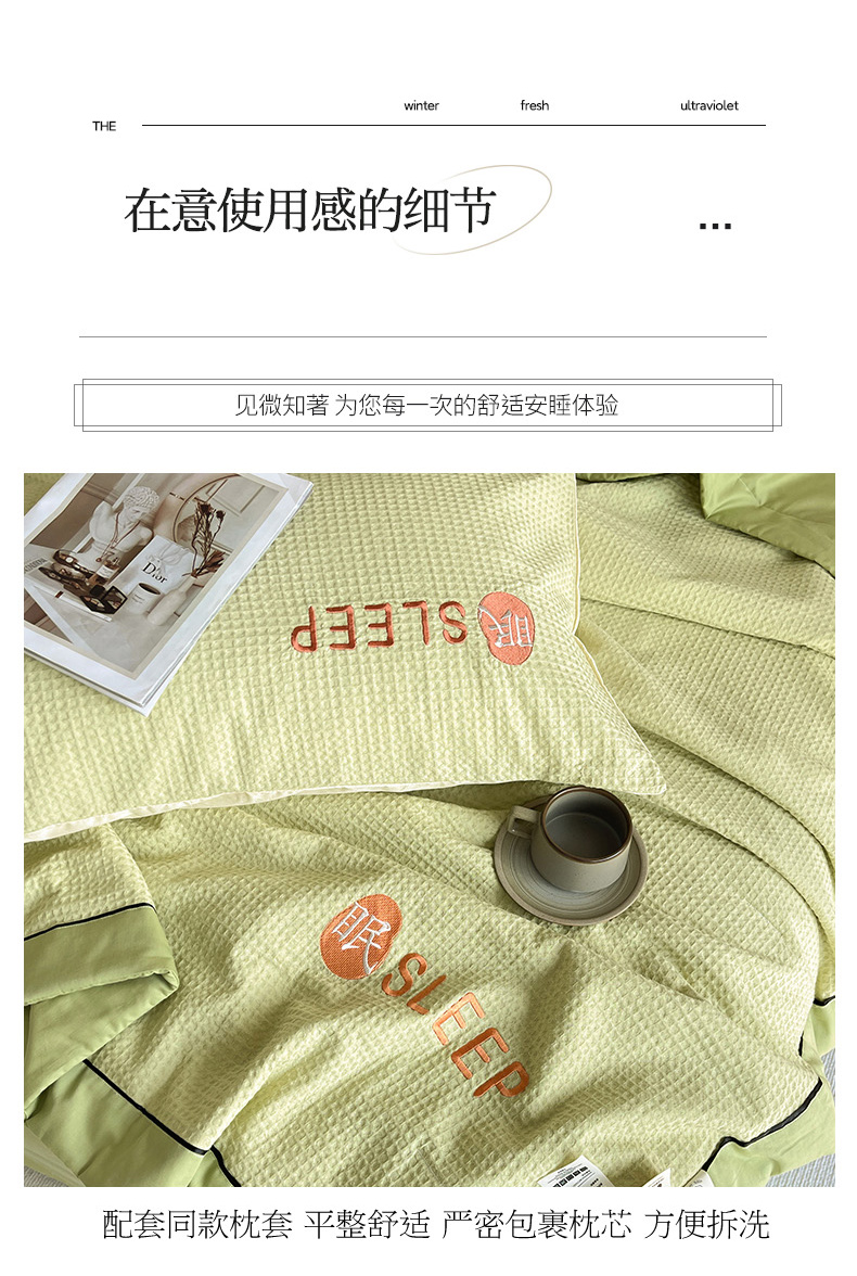 • 91家纺网 家纺一手货源 找家纺 眠博士 2024新款A类全棉华夫格拼角夏被套件系列 夏被-果绿
