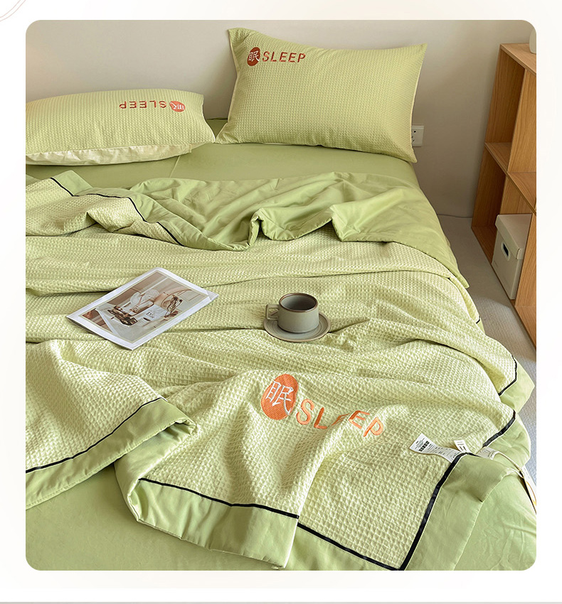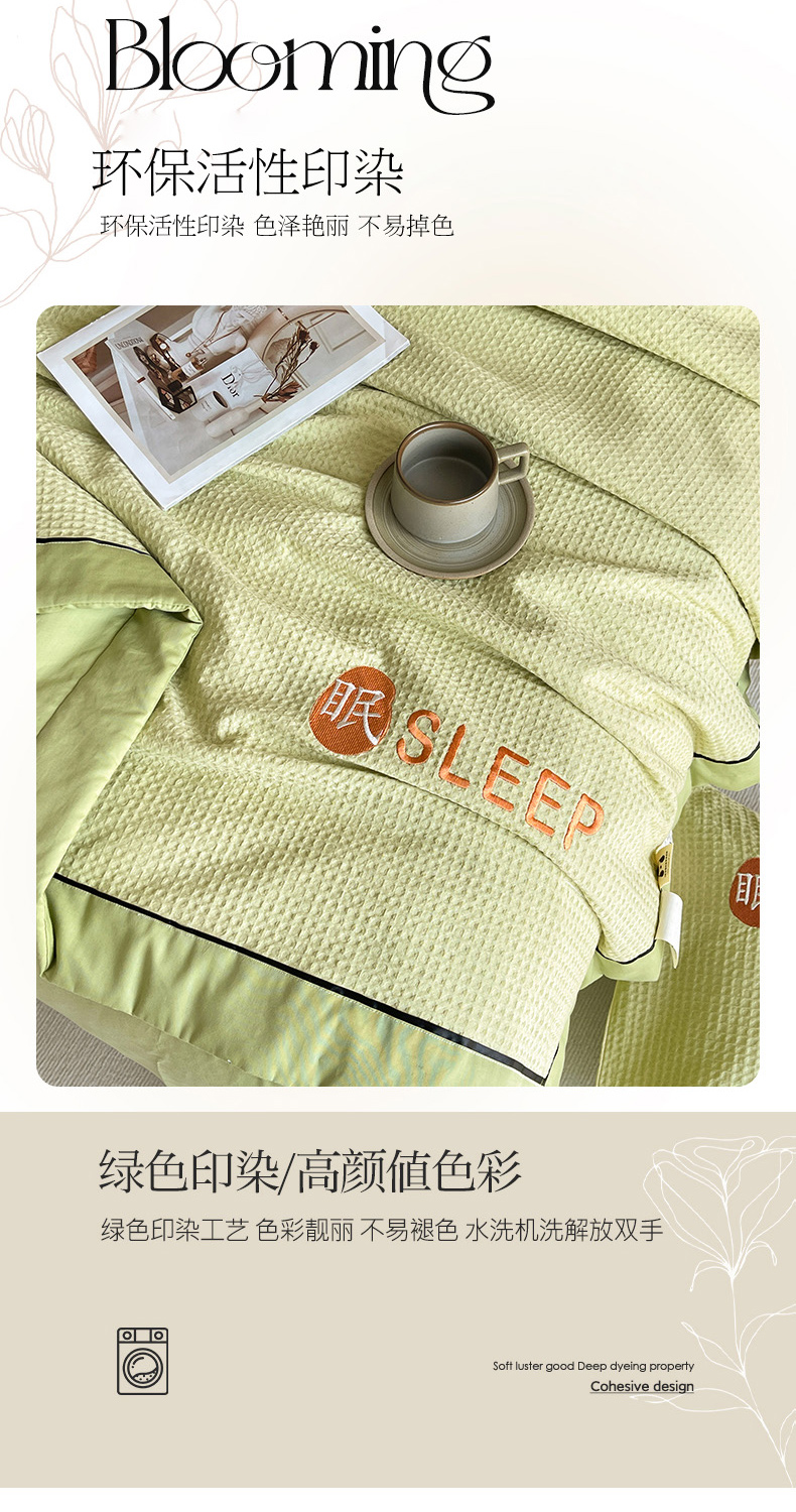 眠博士 2024新款A类全棉华夫格拼角夏被套件系列 夏被-果绿