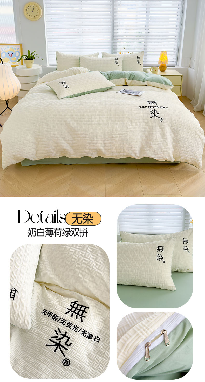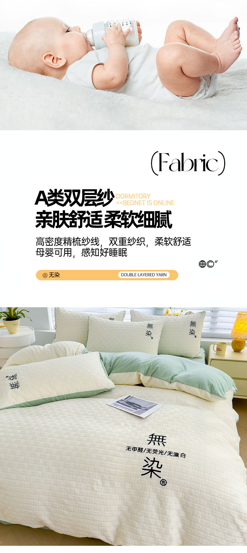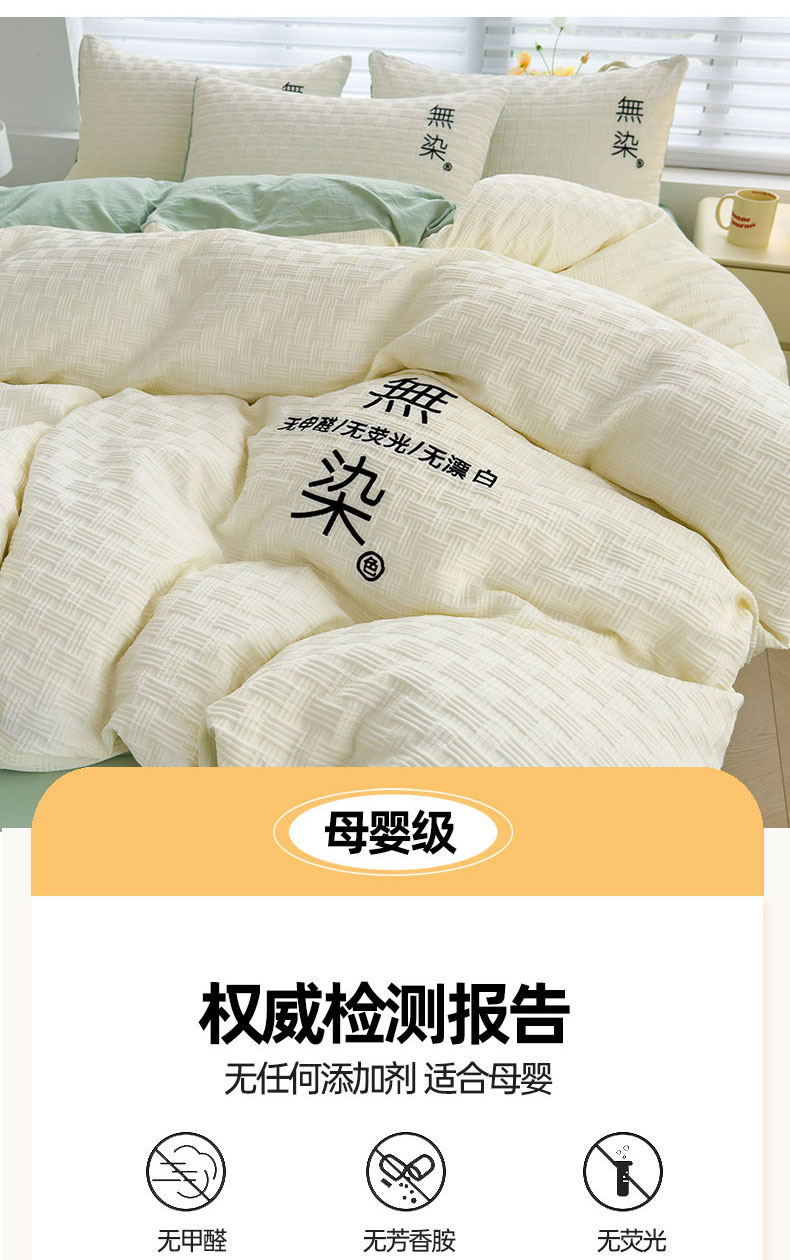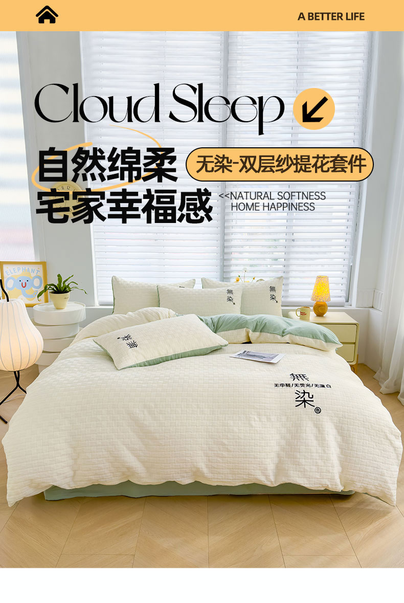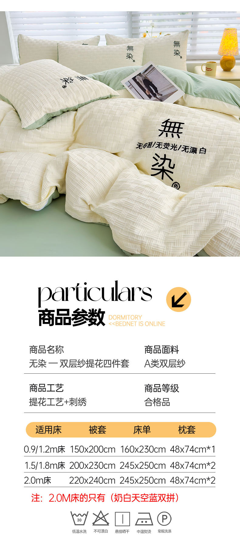 当前位置: 91家纺网 > 商品网购 > 床品套件 > 四件套 > 提花四件套 > 灰鲸 2025新款A类双层纱无染提花四件套 无染-奶白薄荷绿双拼
