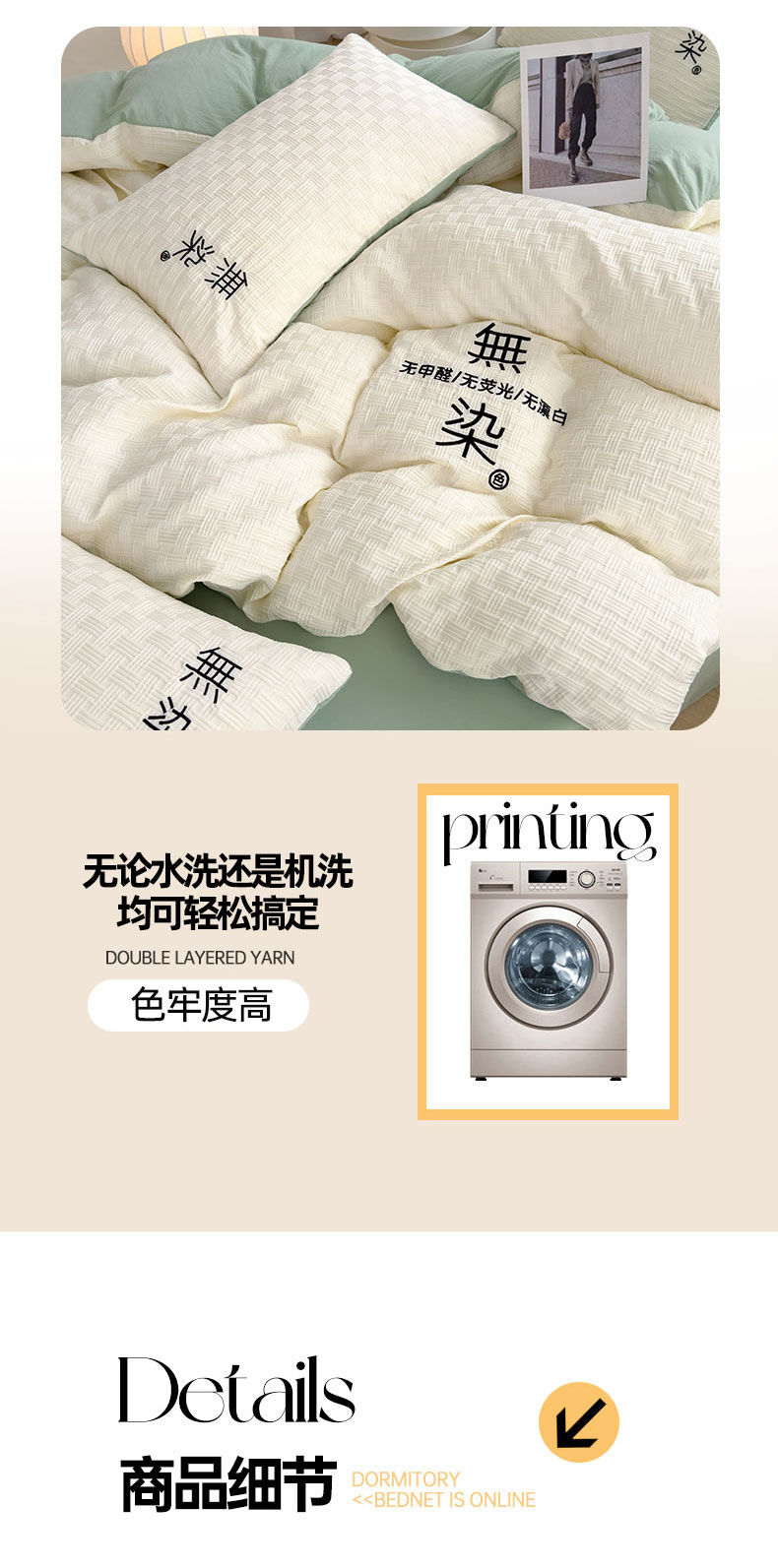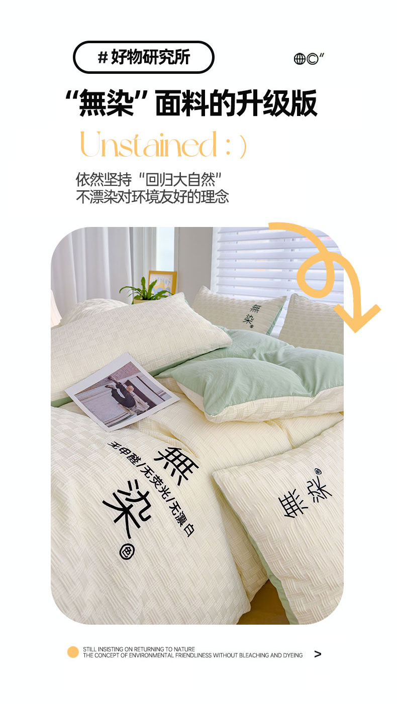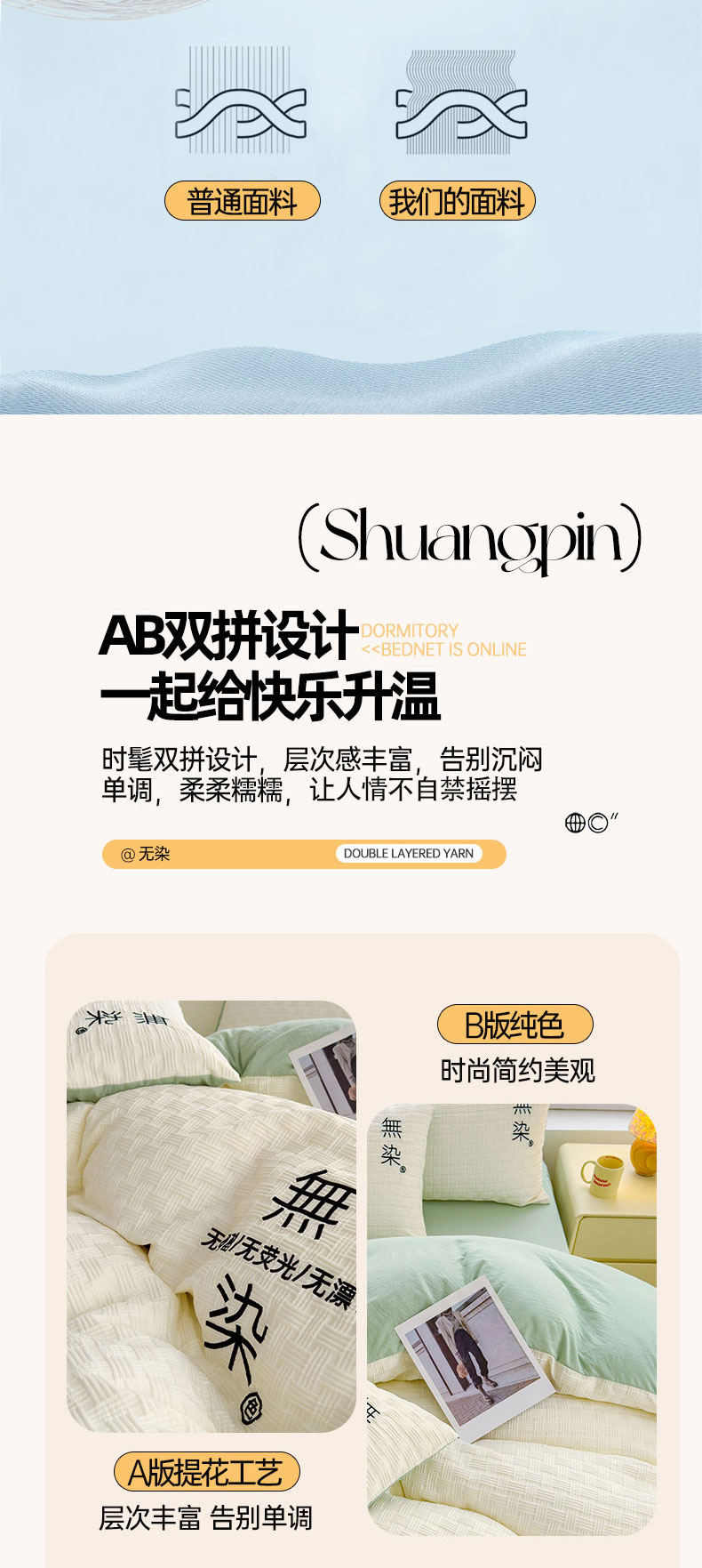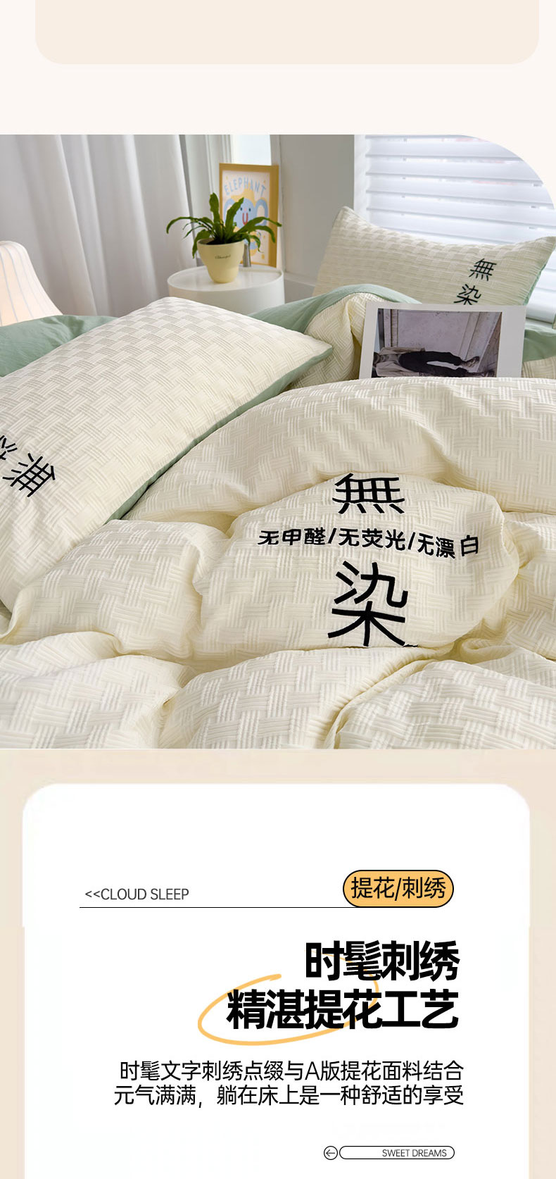 当前位置: 91家纺网 > 商品网购 > 床品套件 > 四件套 > 提花四件套 > 灰鲸 2025新款A类双层纱无染提花四件套 无染-奶白薄荷绿双拼