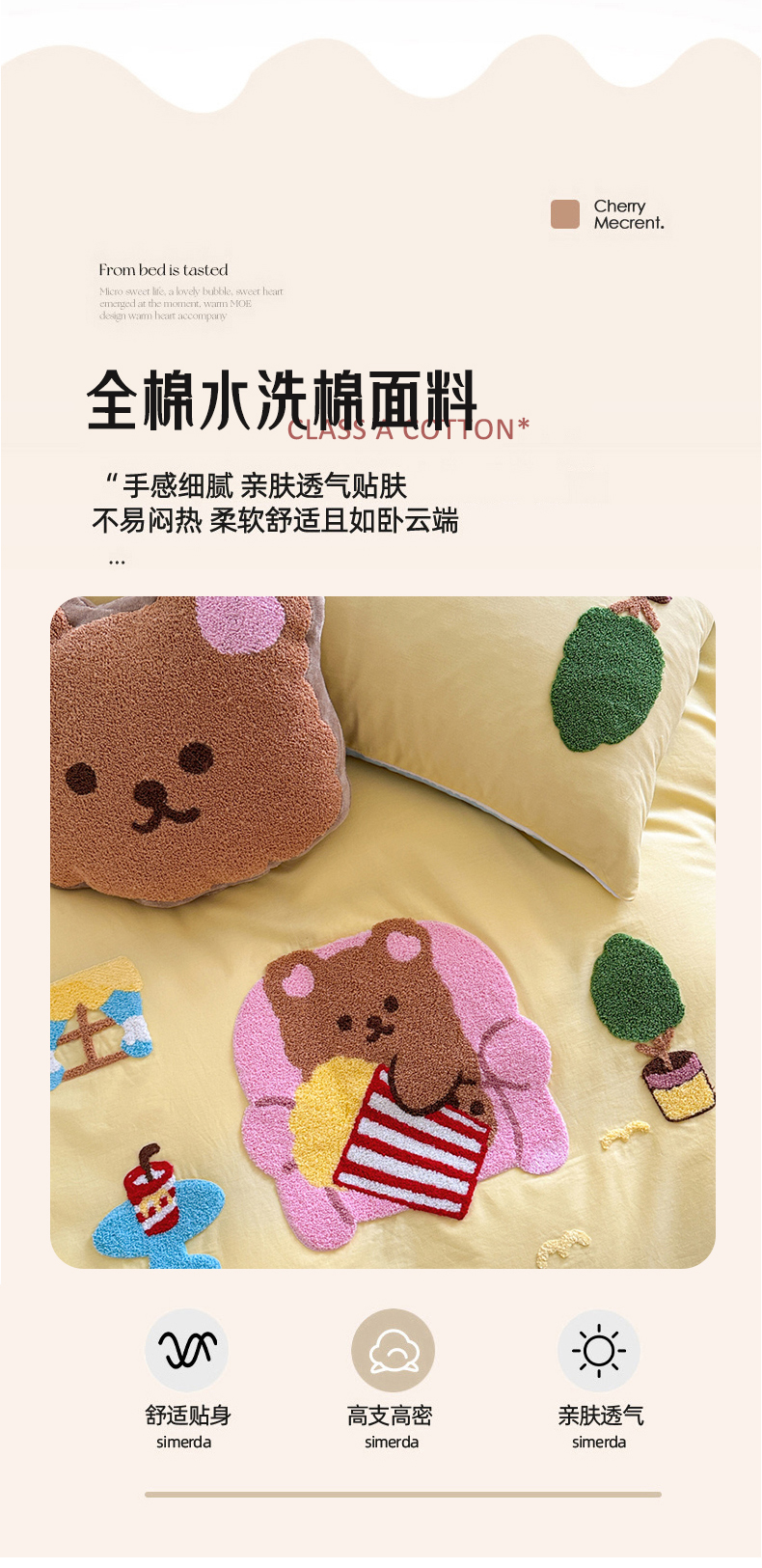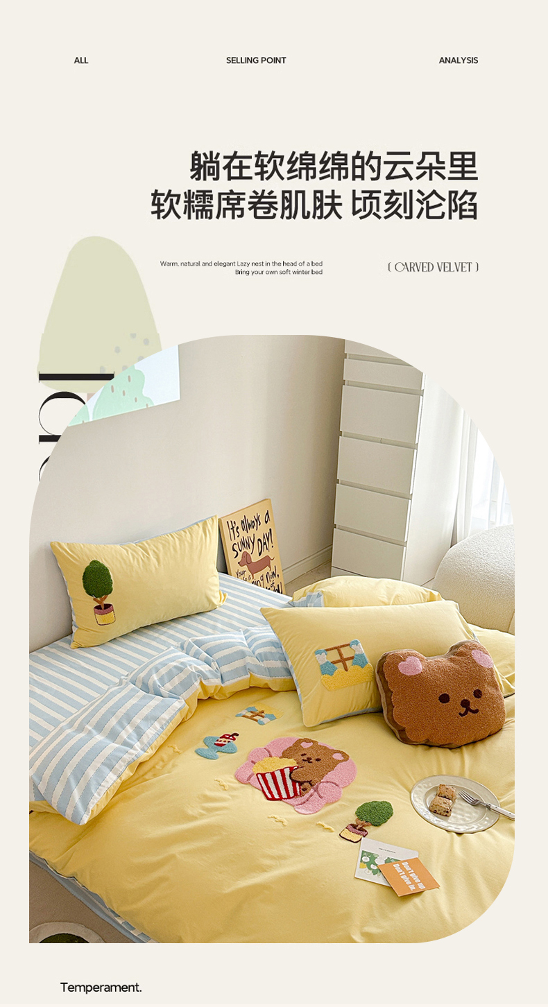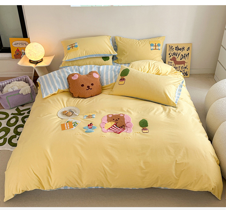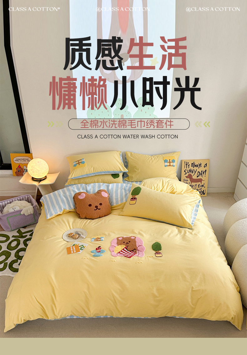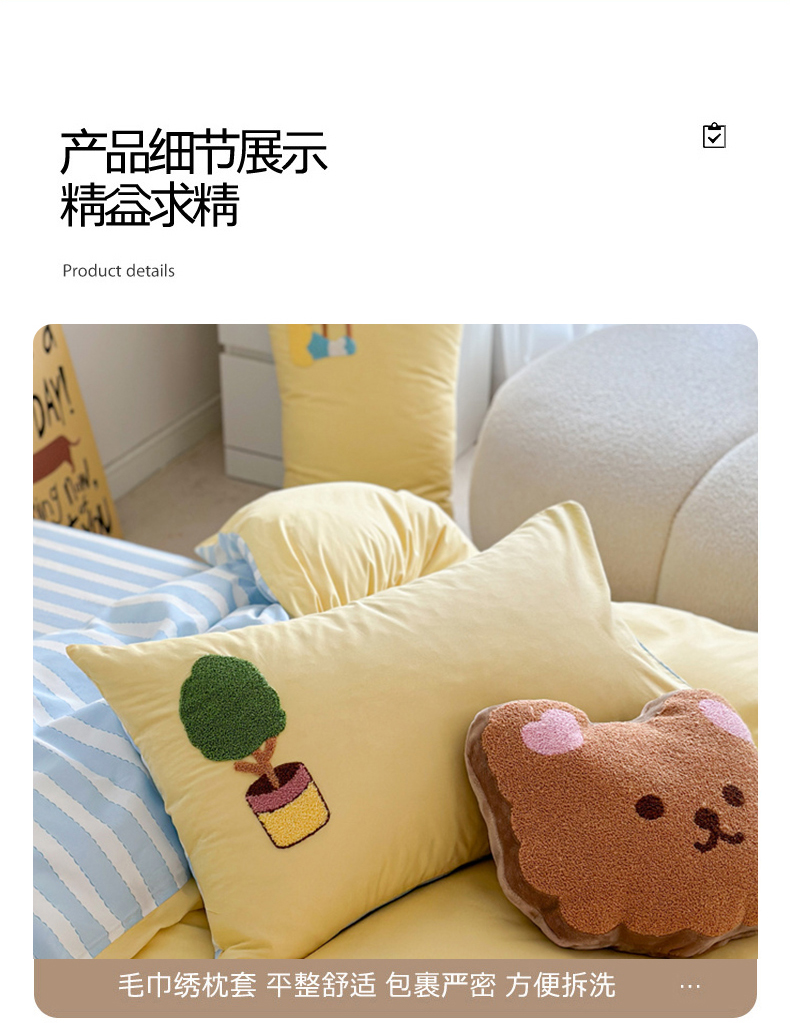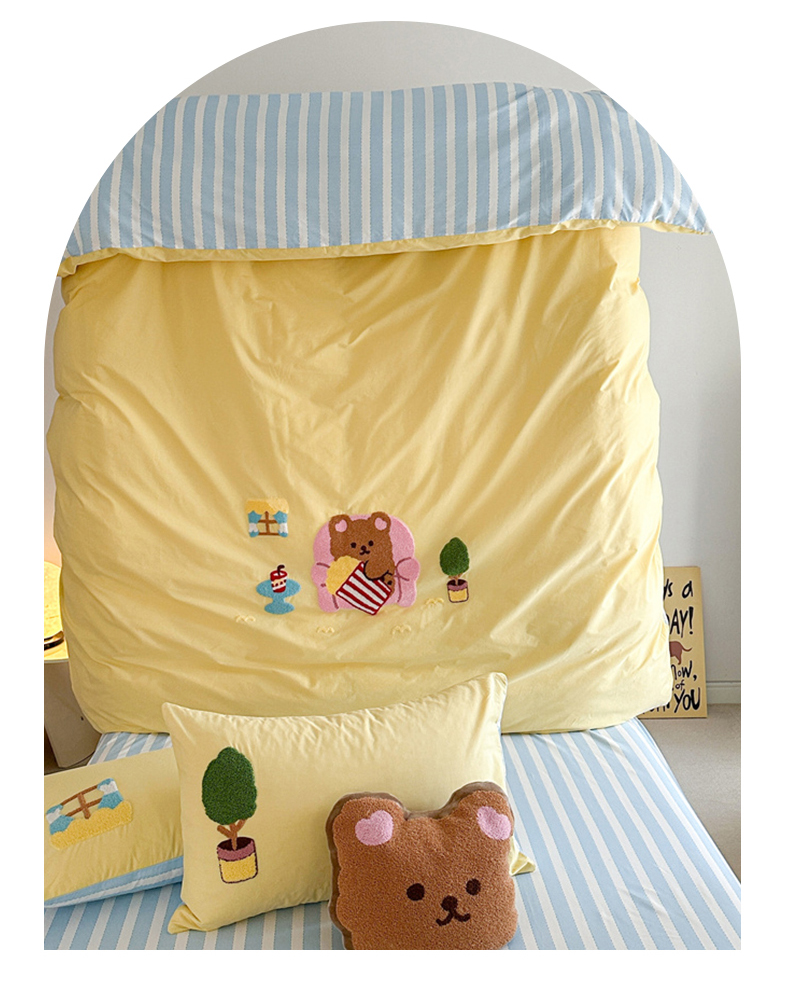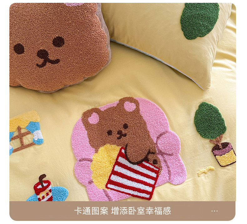 商品名称:眠屿 2024新款A类全棉40支水洗棉毛巾绣四件套 沙发熊
