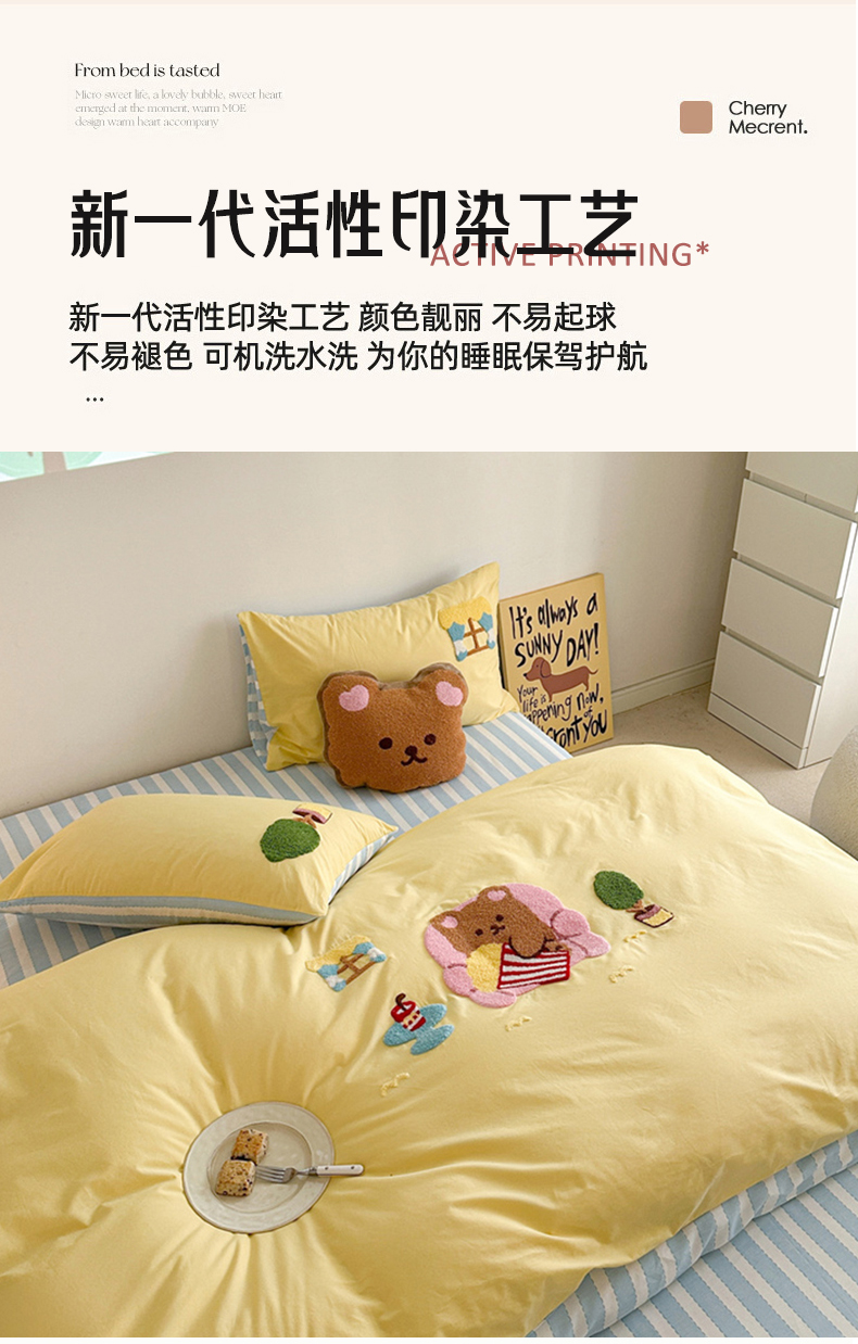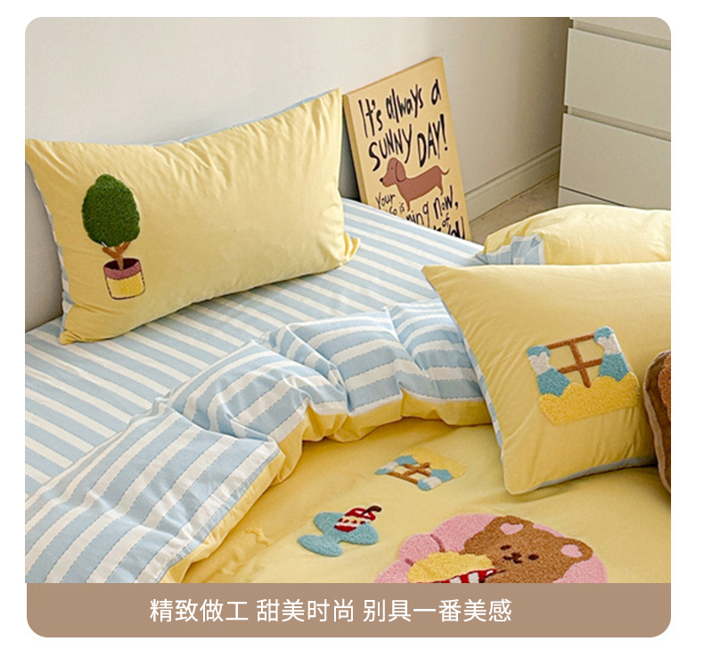 (总)眠屿家纺 2025新款全棉秋冬磨毛贴布绣四件套,爱心猫咪,蛋糕狗狗,可爱玩偶,热量100%