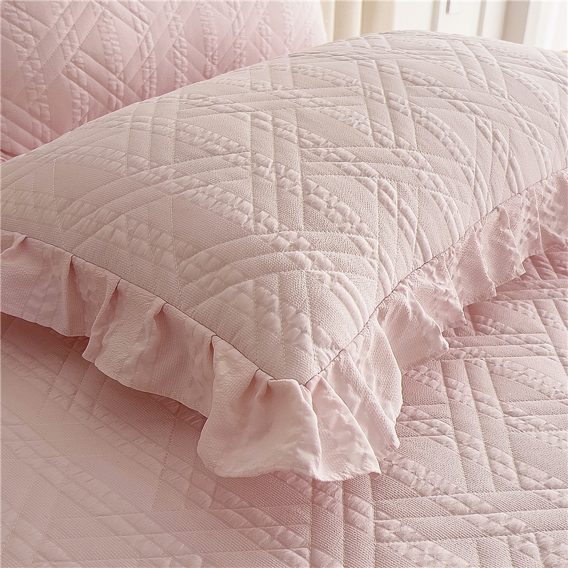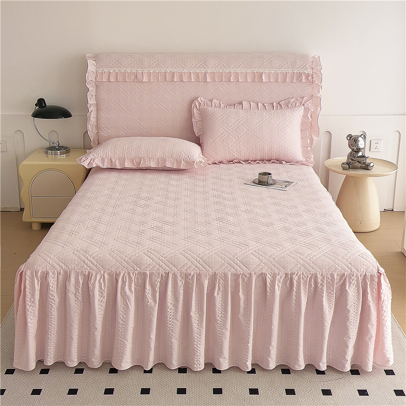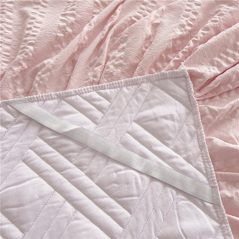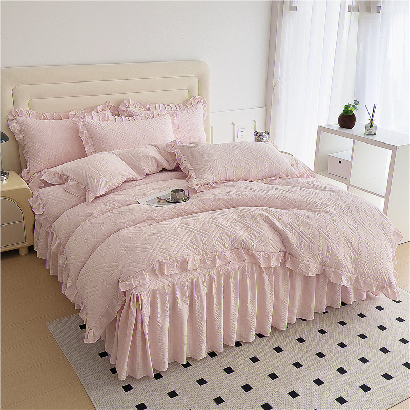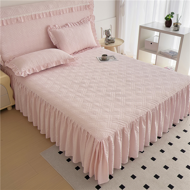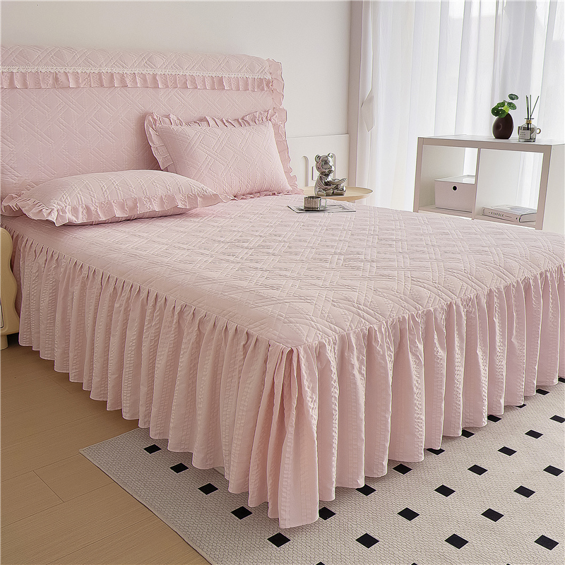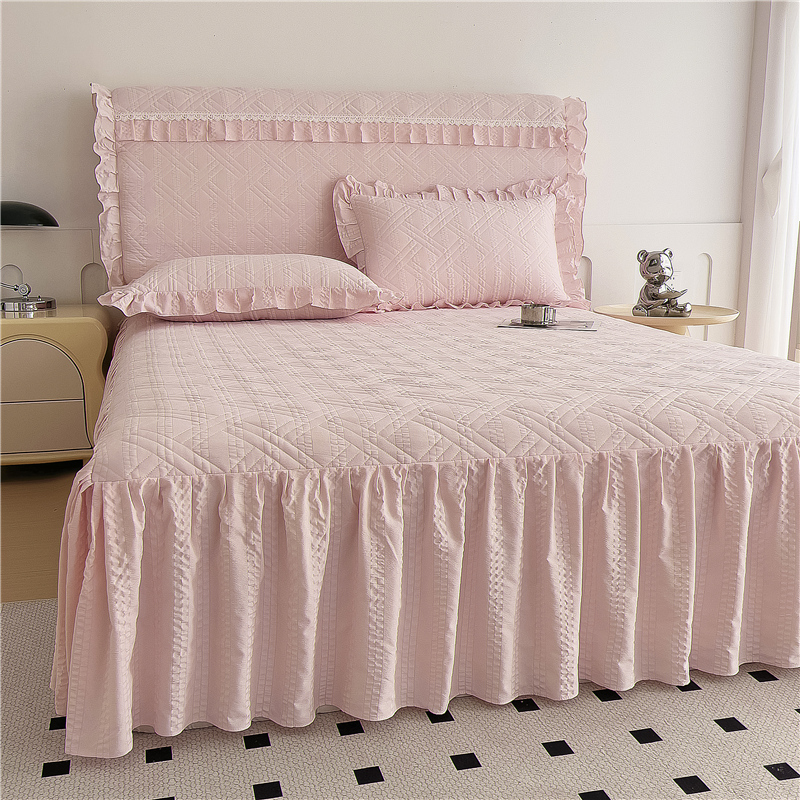 2024新款亲肤水洗泡泡棉夹棉绗缝床裙款单品及套件 玉粉