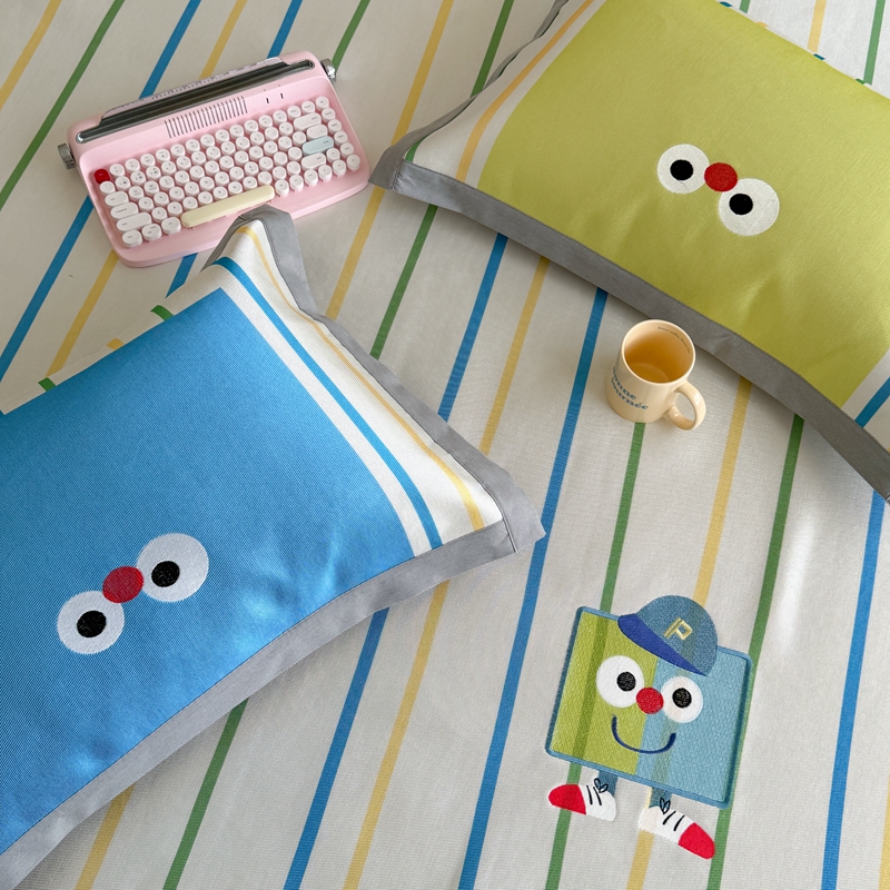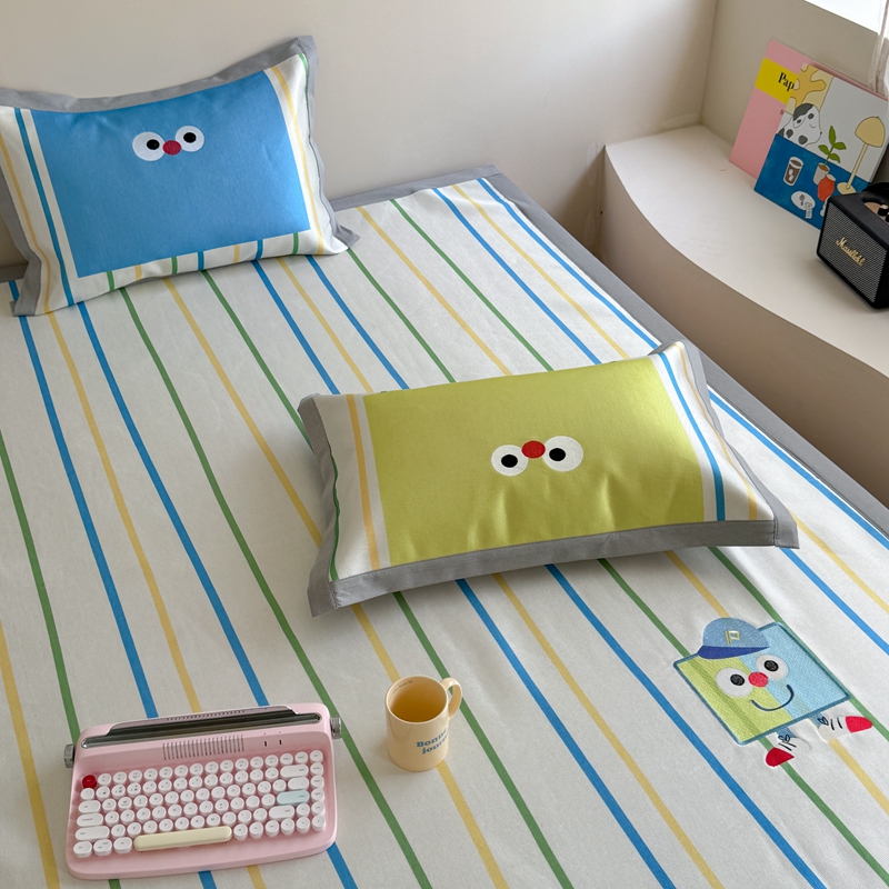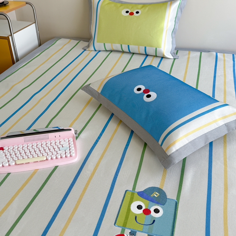(总)柚子YOUTH 225新款全棉双层纱球球款四件套,薄荷绿条,波点霉霉,波点小丑,蓝心,芊芊结,碎花点点