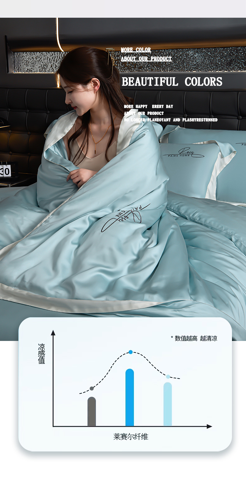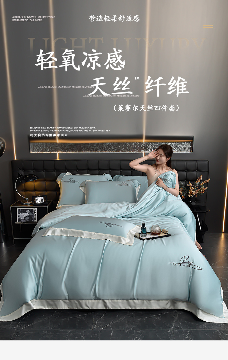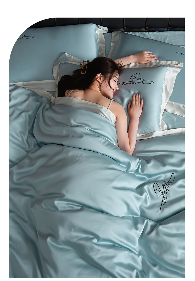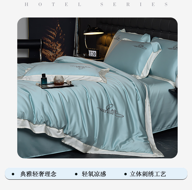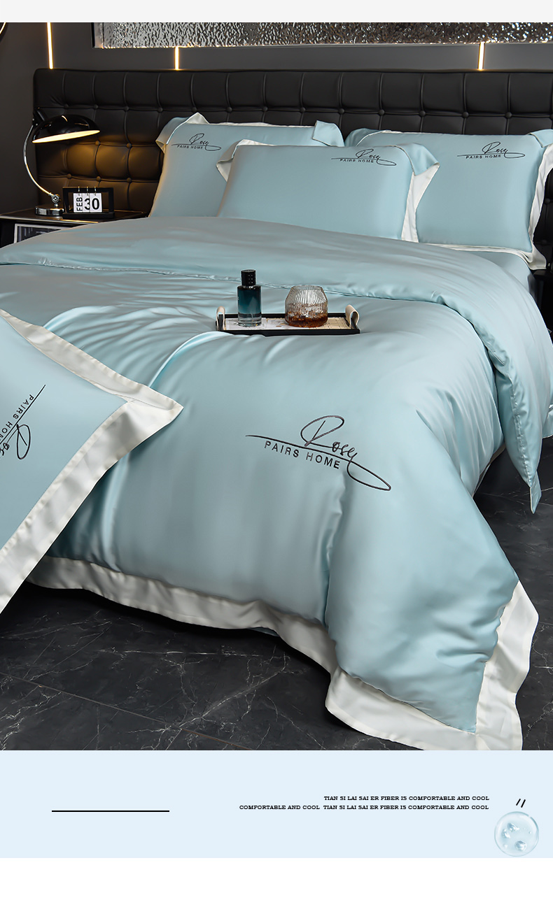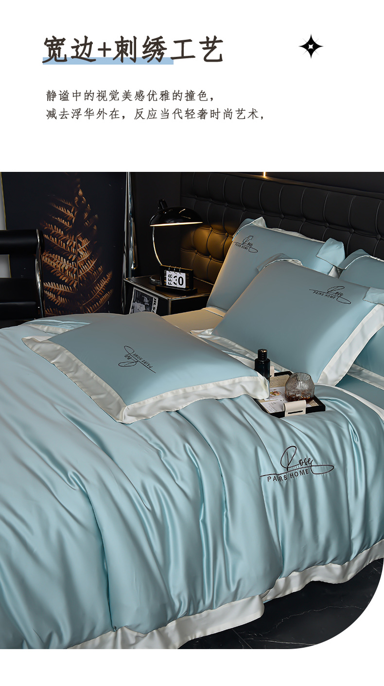 瑞驰家纺2024新款60兰精天丝四件套-罗莎琳系列(风格二) 天水蓝