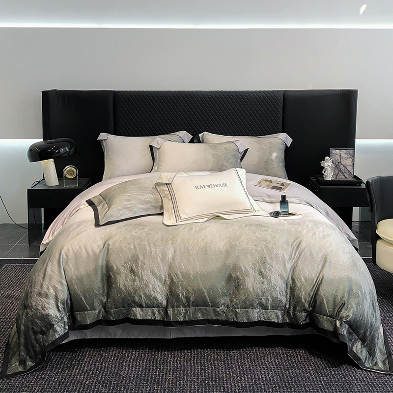 (总)若未家居2023新款轻奢意式50支全棉长绒棉四件套-水墨,贵族白,雾棕,烟蓝