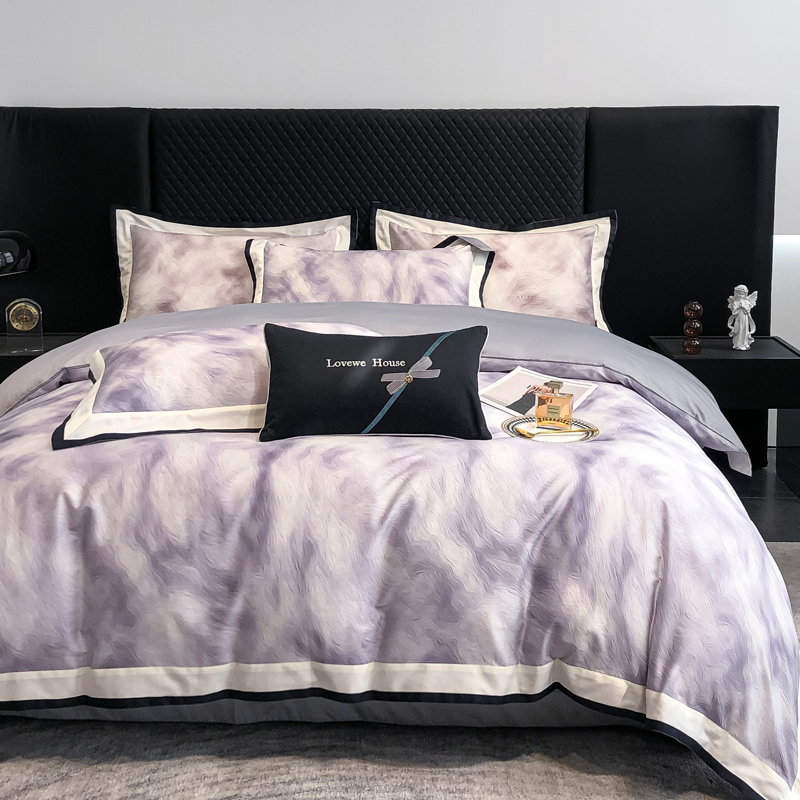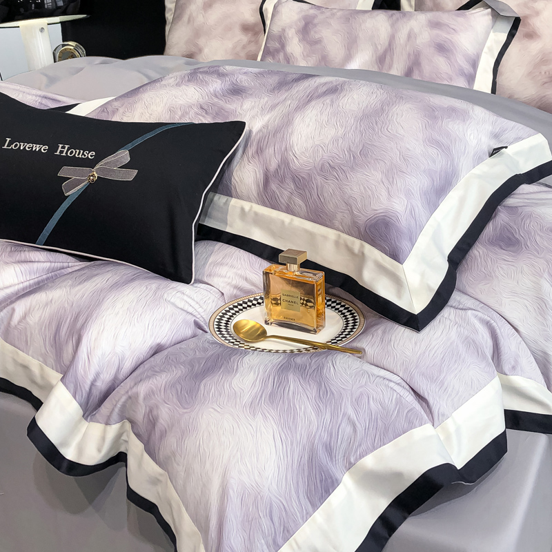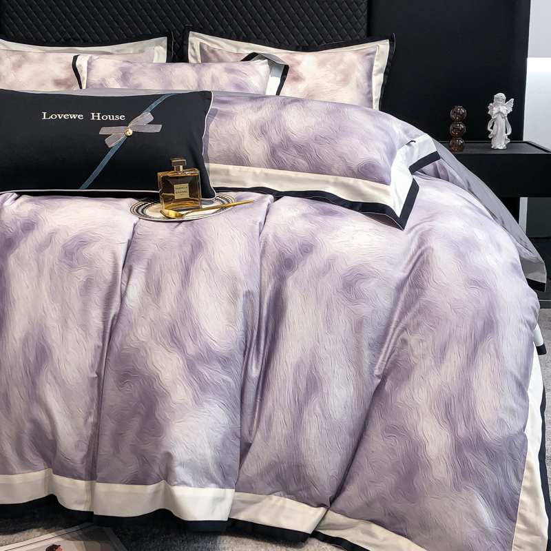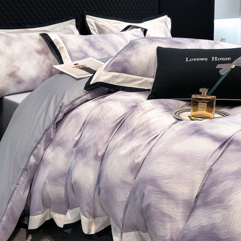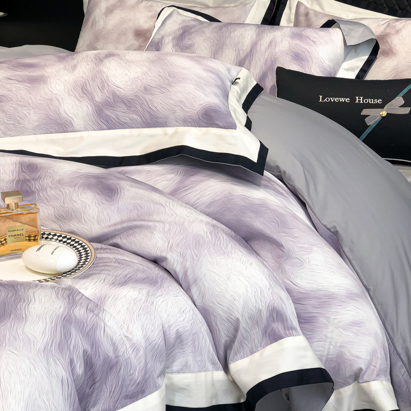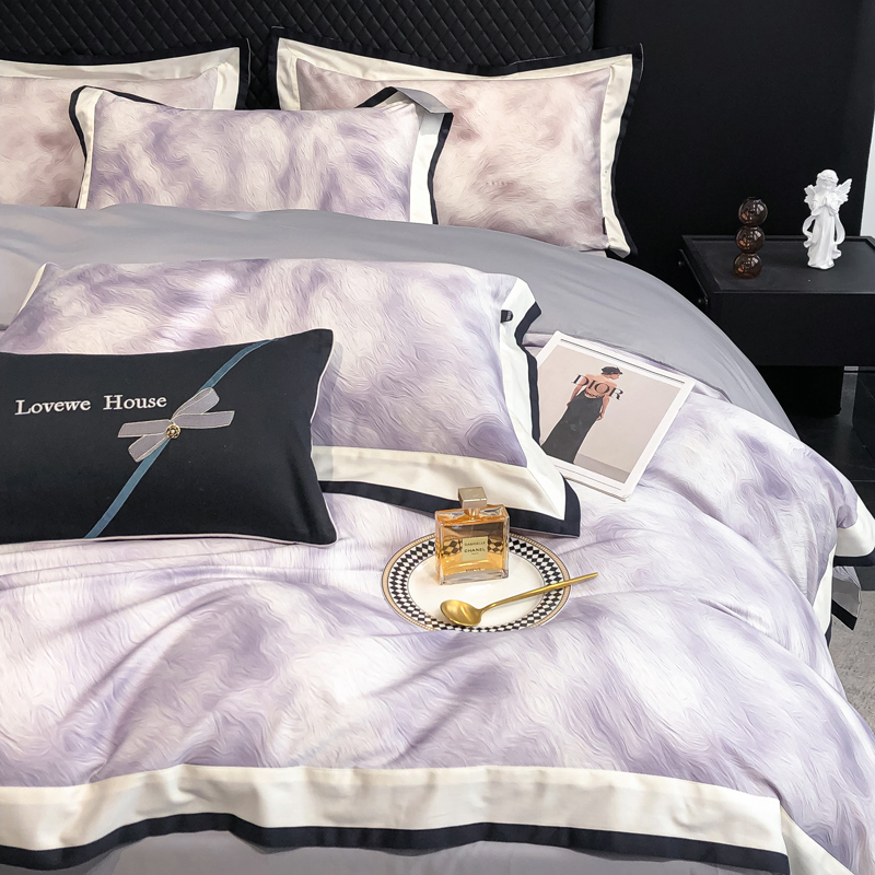 (总)若未家居 LOVEWE HOUSE 2026新款100S数码印花轻奢风四件套-波澜,波澜 爵士灰,波澜 公主粉,波澜 贝拉橘