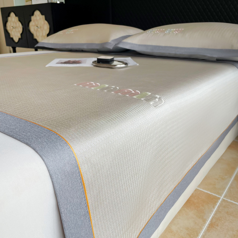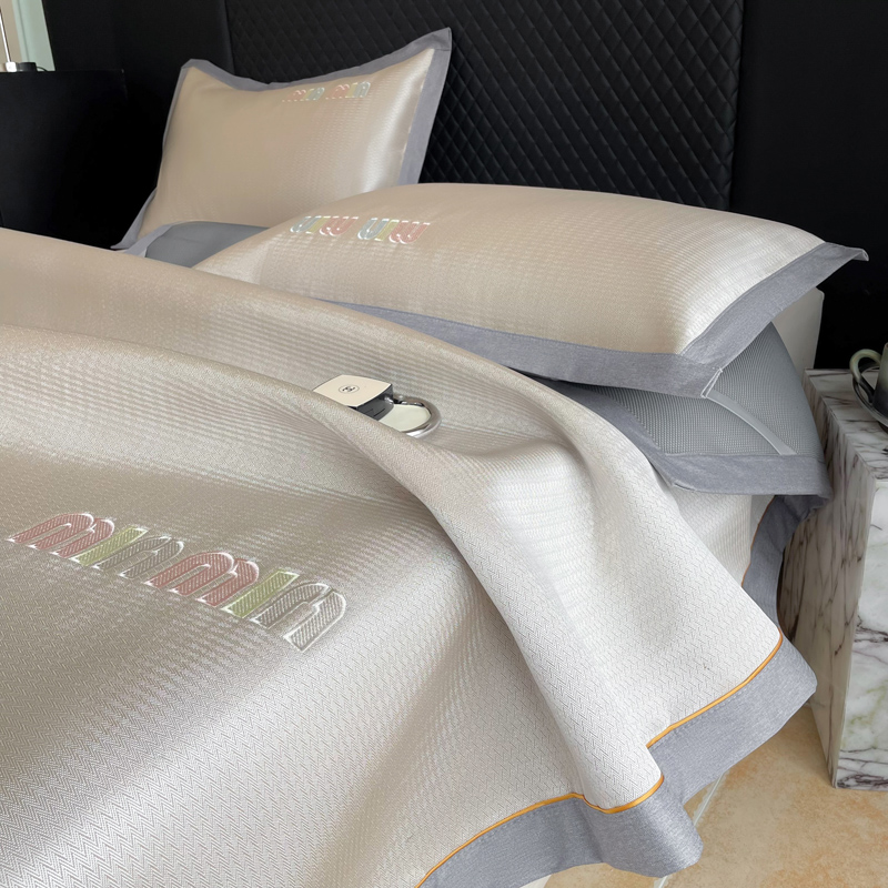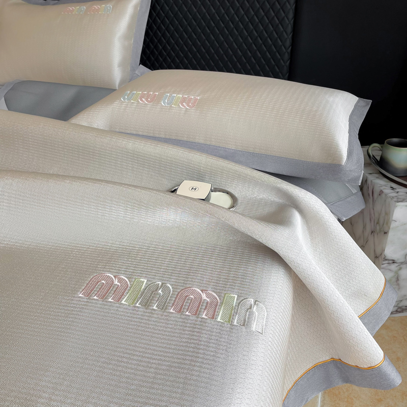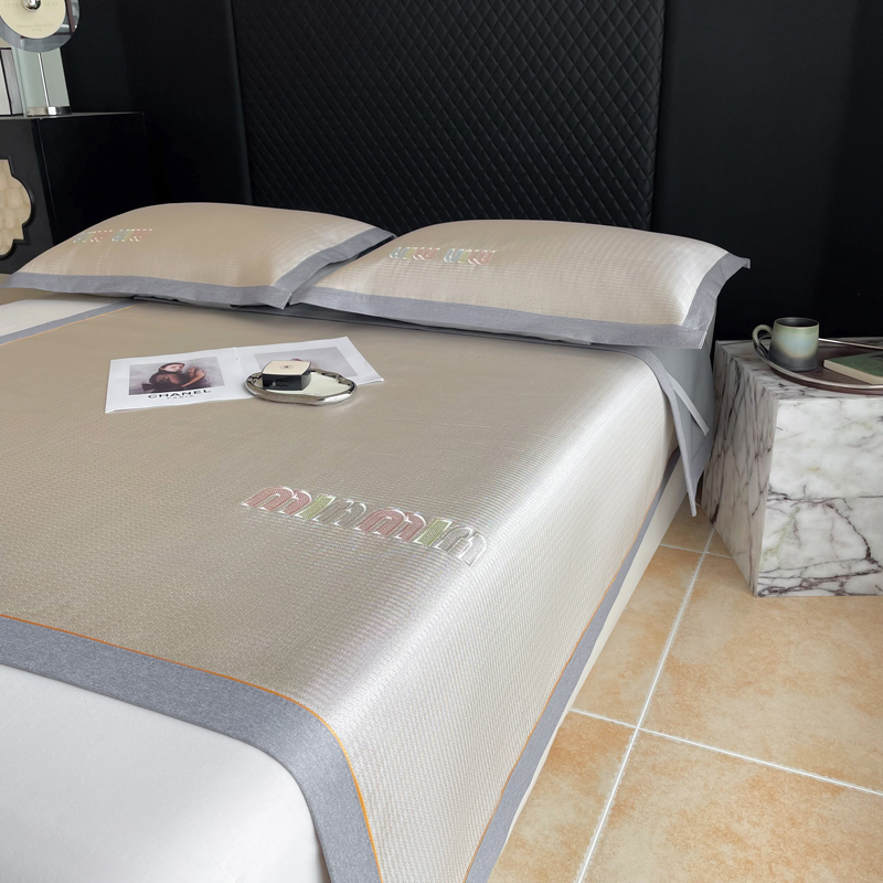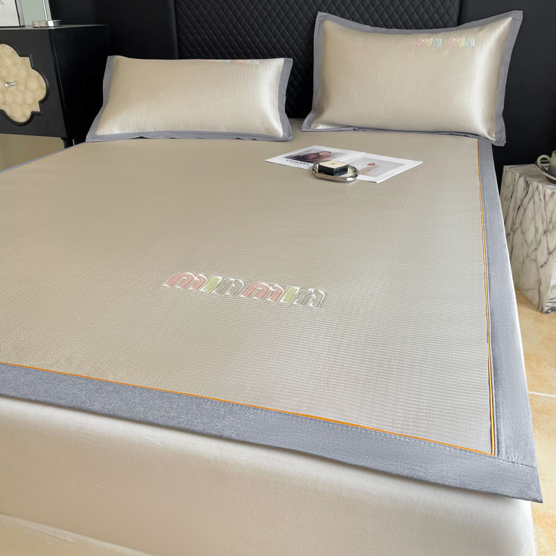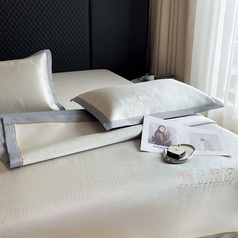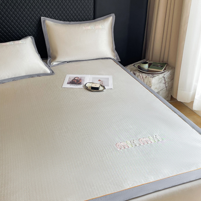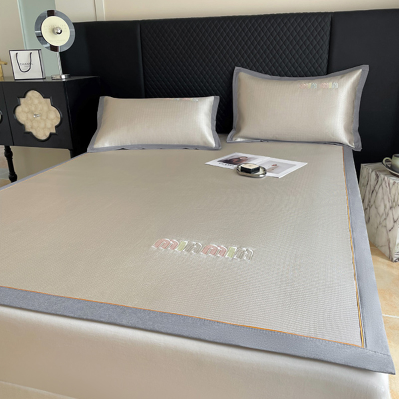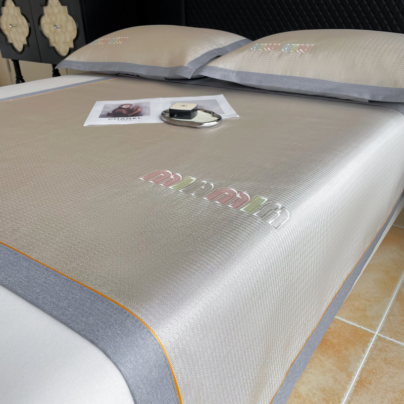 慕尚家纺 2025新款凉感冰丝大牌miumiu凉席三件套 miu 香槟金