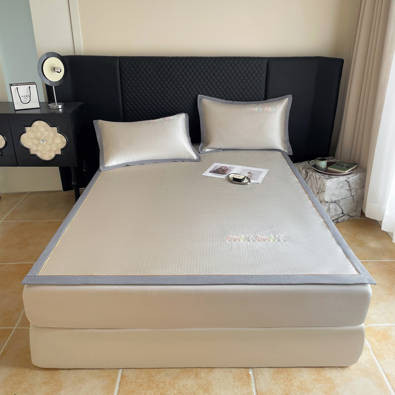 商品名称:慕尚家纺 2025新款凉感冰丝大牌miumiu凉席三件套 miu 香槟金