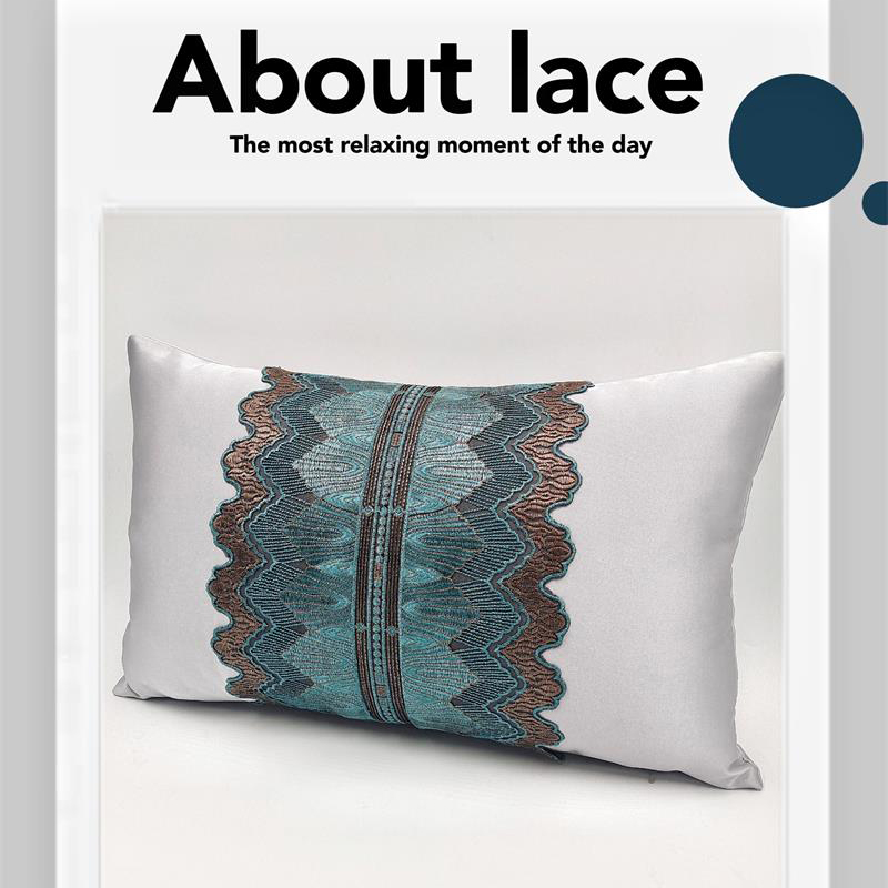 澜屿 24款高精密蕾丝款花边小抱枕头枕芯腰靠枕 银灰