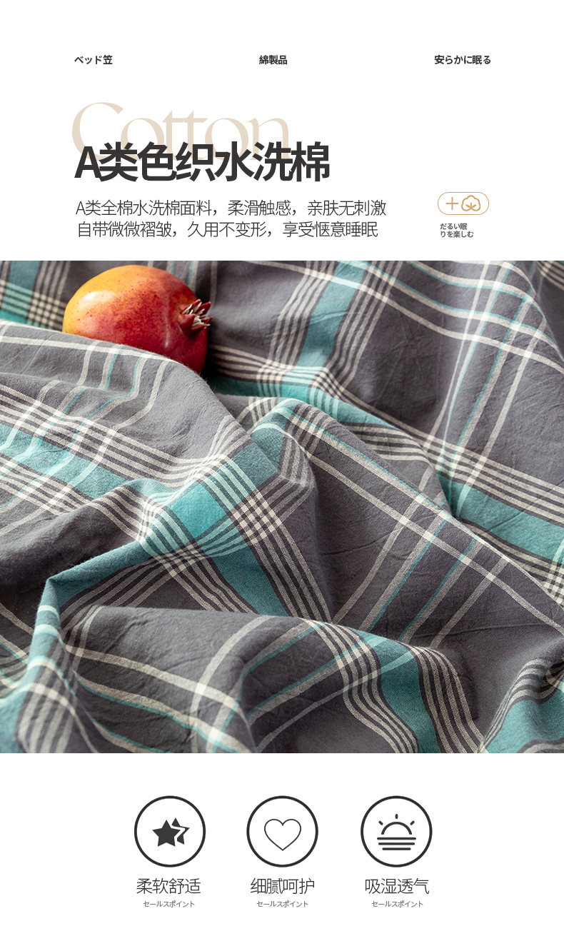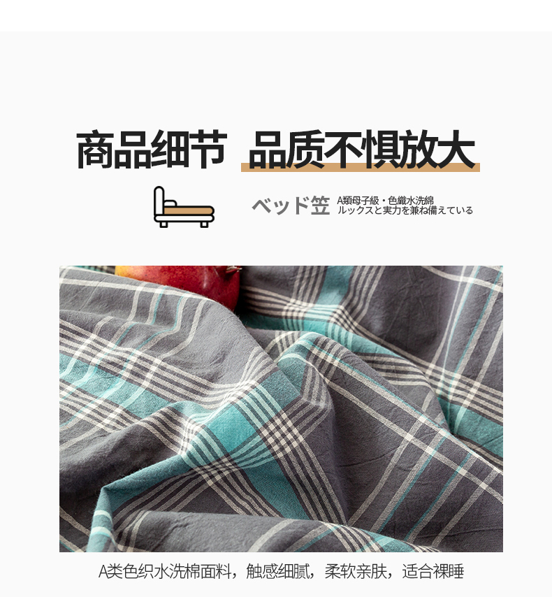 商品名称:萌飞 2024新款A类色织水洗棉床笠 灰绿格