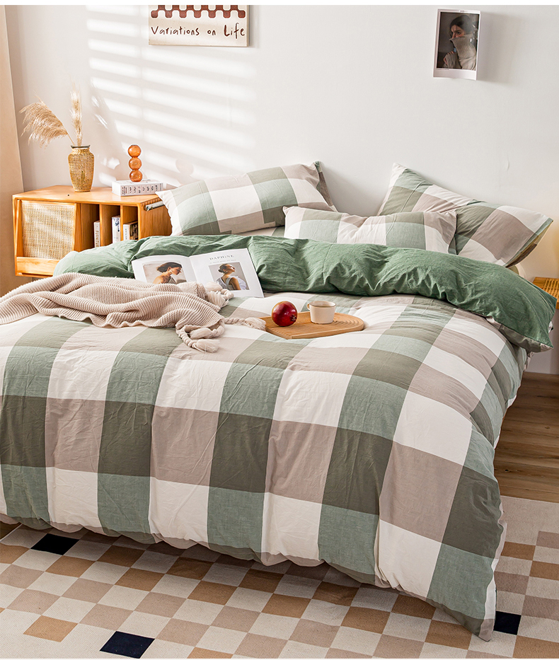 当前位置: 91家纺网 > 商品网购 > 床品套件 > 四件套 > 水洗棉四件套 > 九沐良品 新款A类色织水洗棉四件套 绿大格