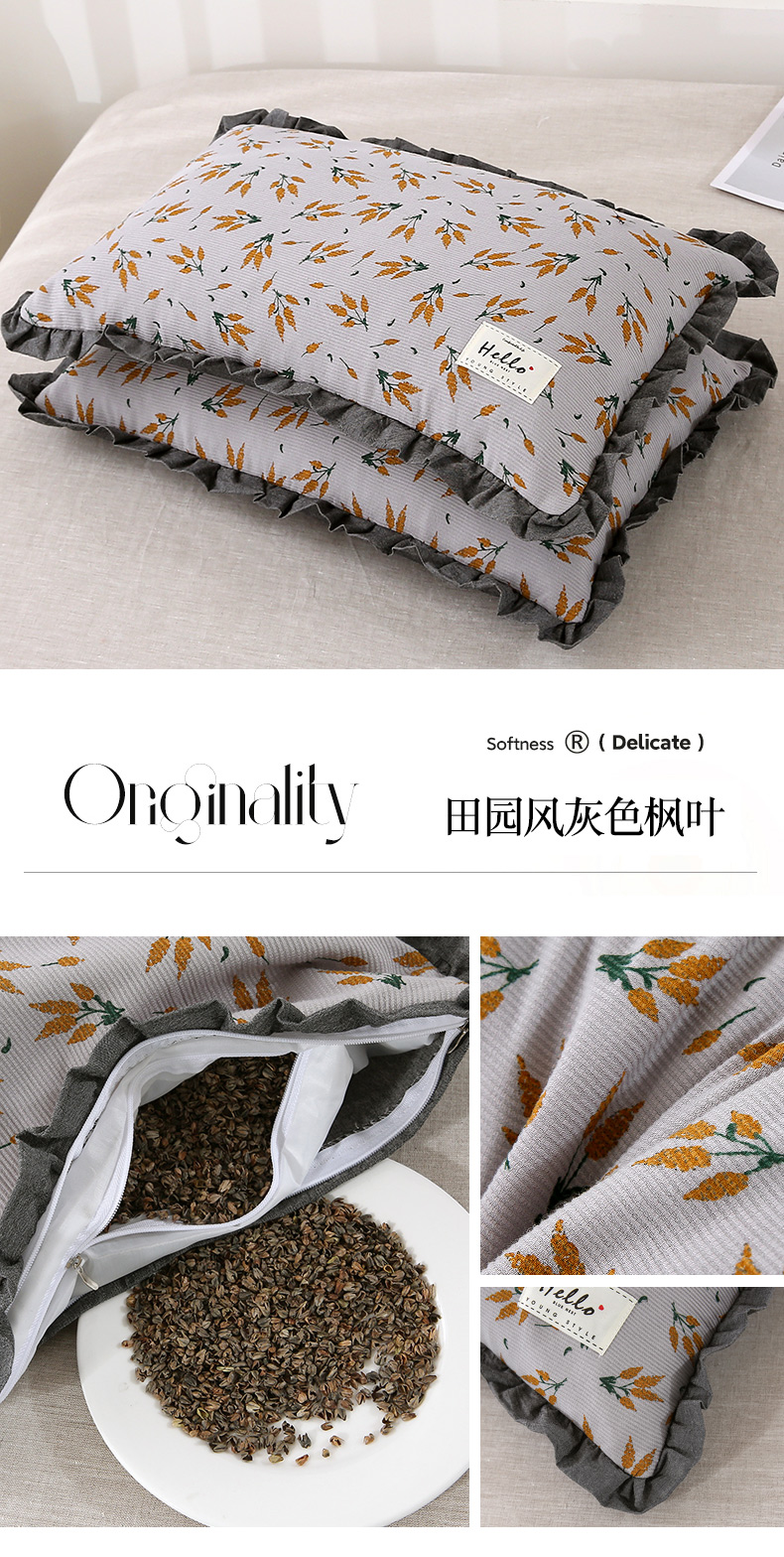 当前位置: 91家纺网 > 商品网购 > 枕头/枕芯/保健枕/颈椎枕 > 普通枕芯 > 梦叶草 2024新款枕芯全棉砂洗田园风系列荷叶边35×55cm全荞麦枕头 田园风灰色枫叶