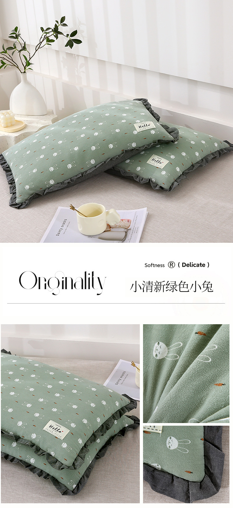 当前位置: 91家纺网 > 商品网购 > 枕头/枕芯/保健枕/颈椎枕 > 普通枕芯 > 梦叶草 2024新款枕芯全棉砂洗小清新系列荷叶边42×60cm全荞麦枕头 小清新绿色小兔