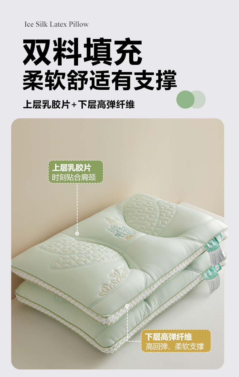 乐可 2024新款仙丝乳胶舒适枕头枕芯 绿色