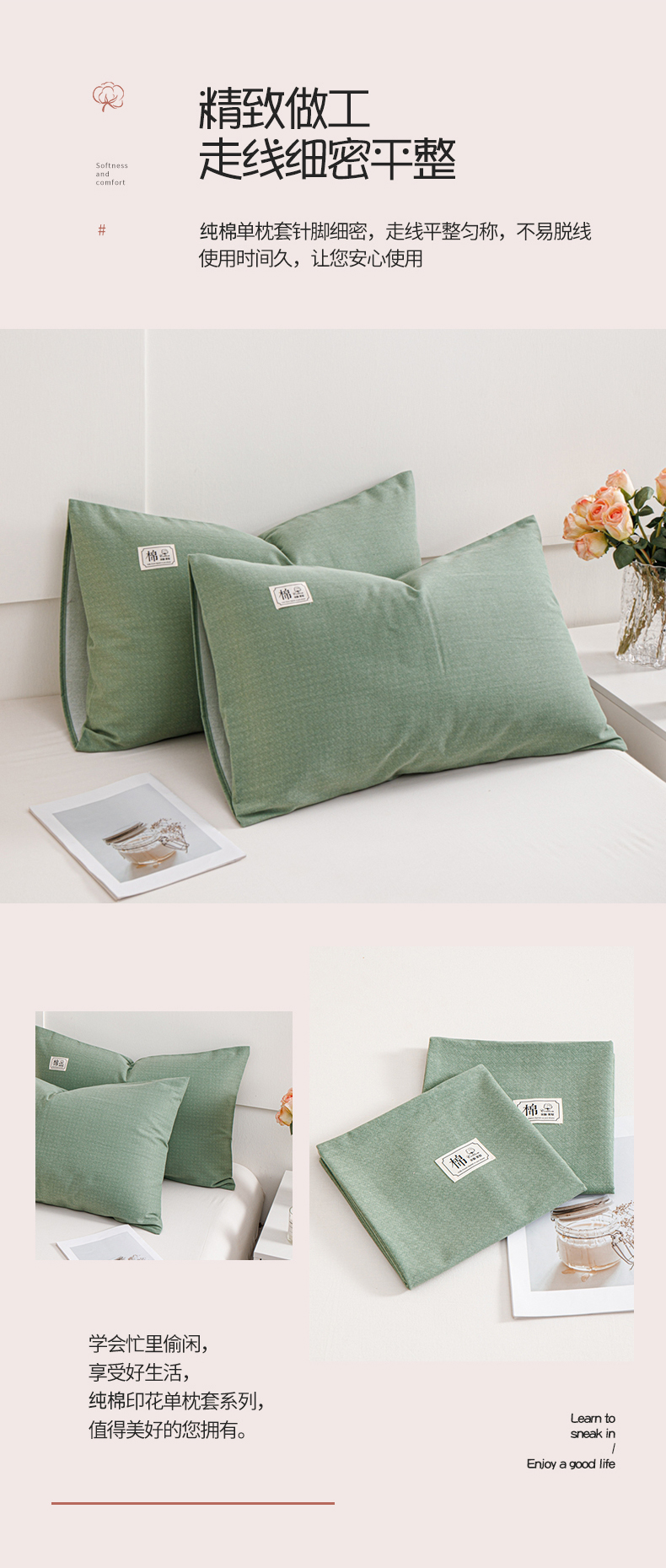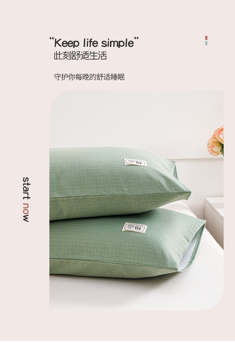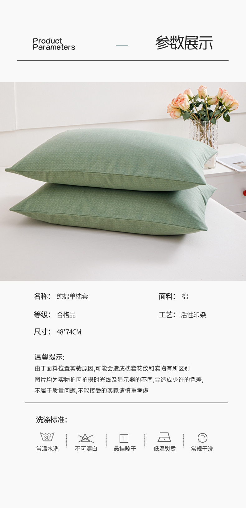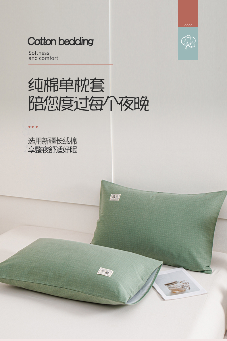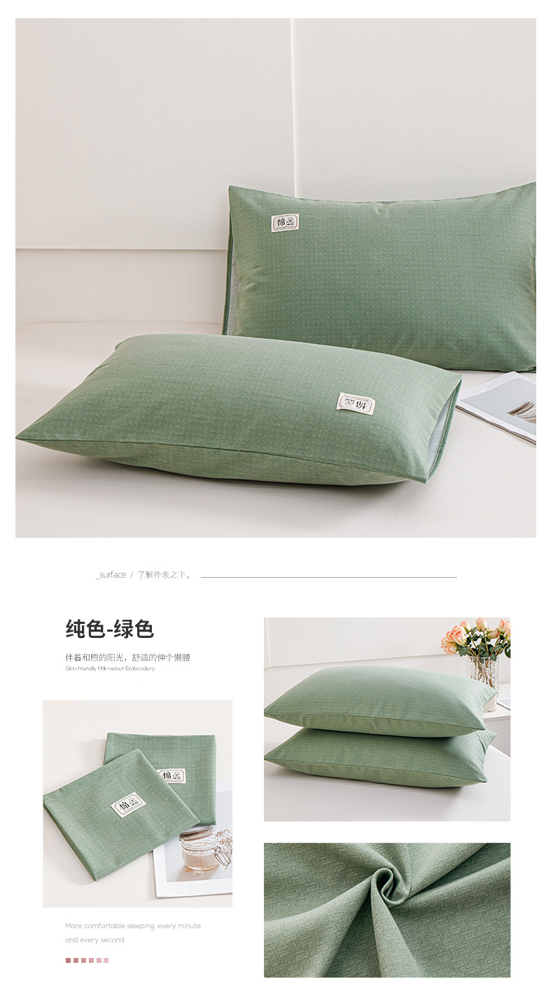 商品名称:宝时兰 2024新款纯色单枕套全棉加厚生态喷气磨毛纯棉口袋枕套 纯色-绿色