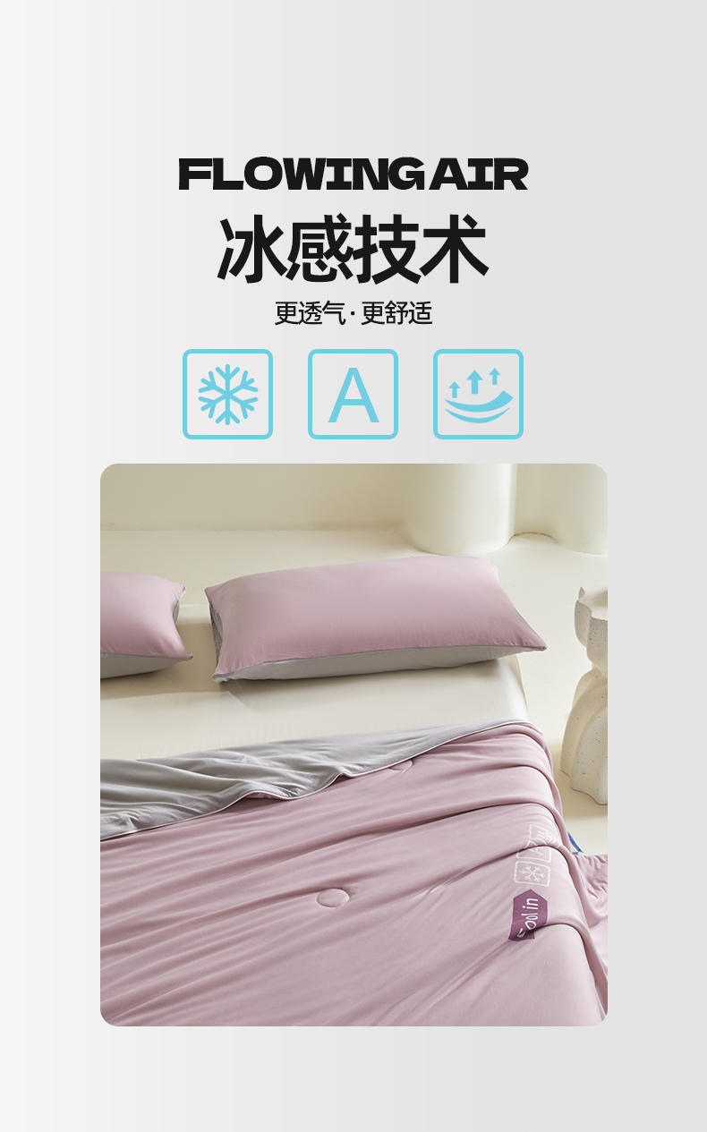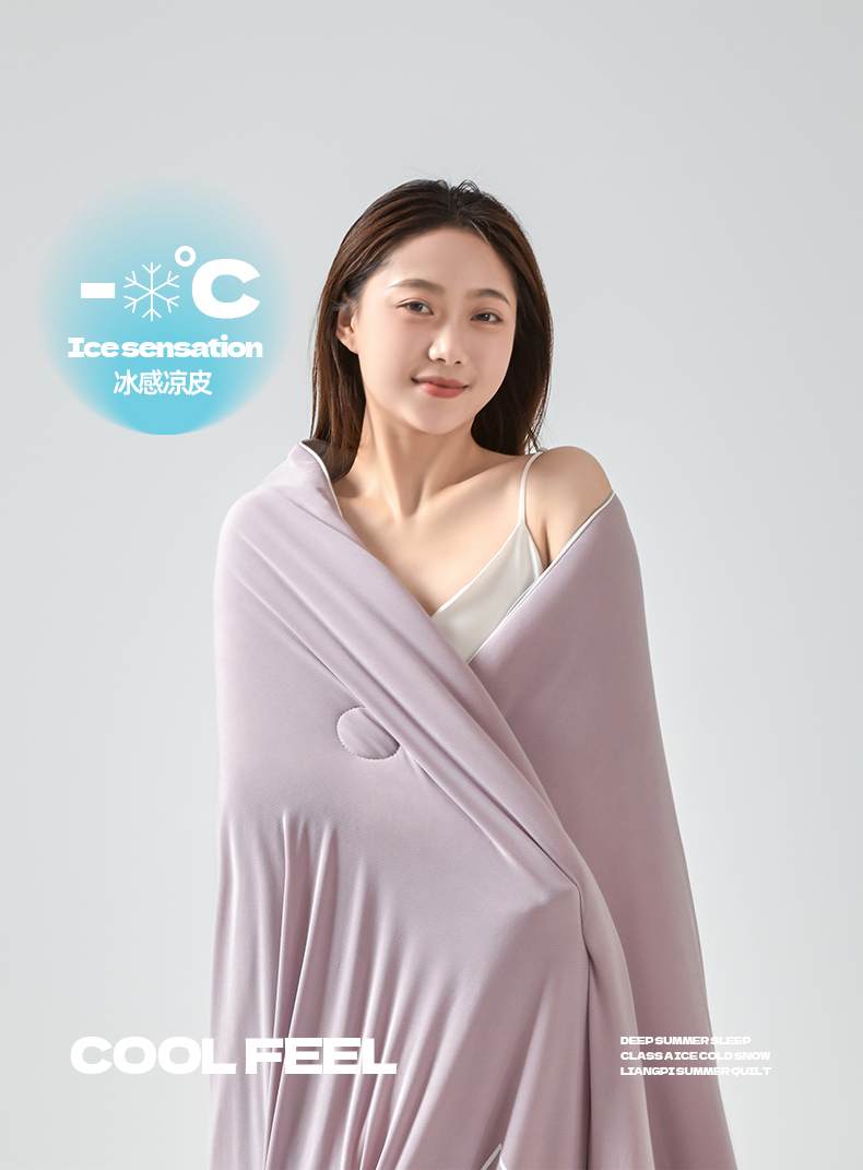 • 91家纺网 家纺一手货源 找家纺 桃子 2024新款A类高品质冰冰凉雪花冰感凉皮双面凉感夏被 冰感凉皮-芋紫灰(加倍透气)