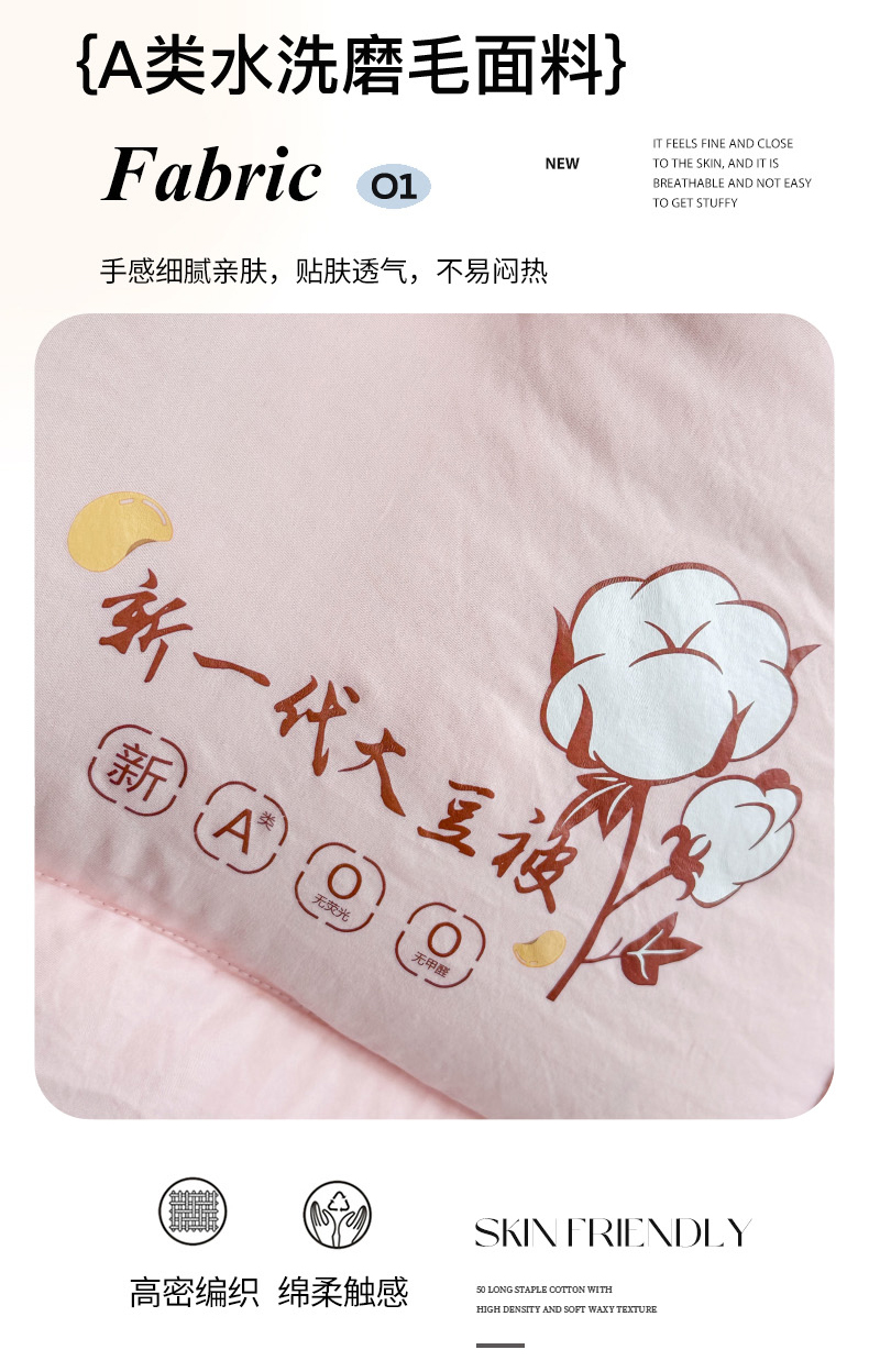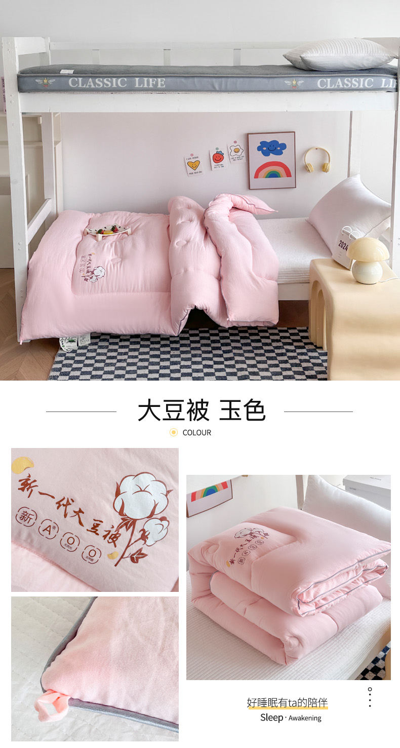 • 91家纺网 家纺一手货源 找家纺 招财狼家纺  2024新款水洗磨毛学生大豆被夏被春秋被多被芯被子 大豆被 玉色