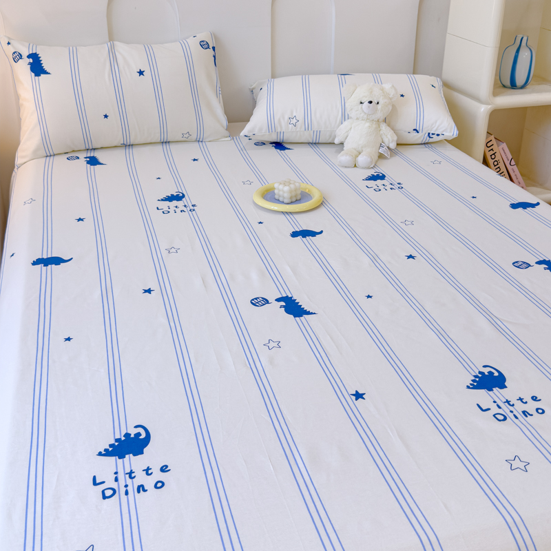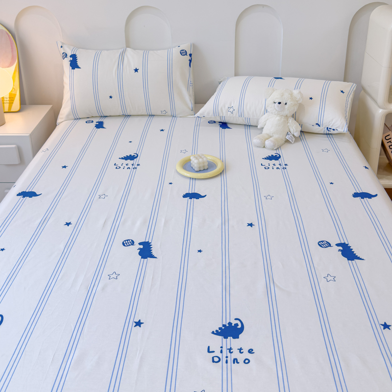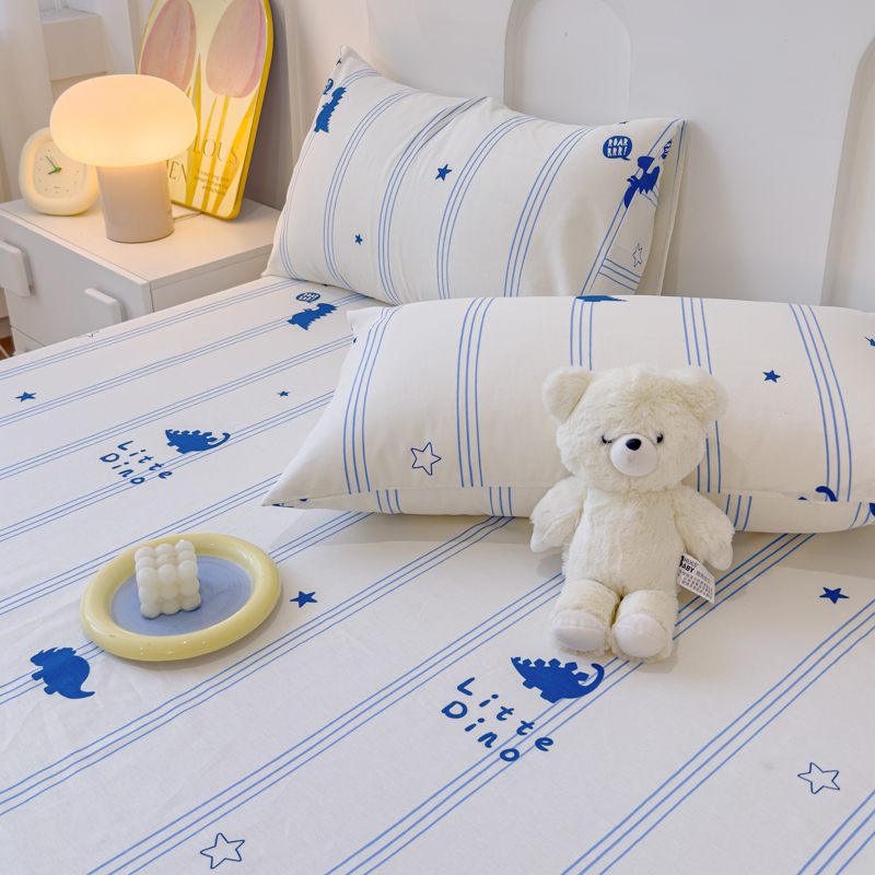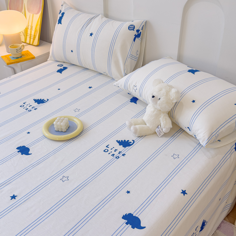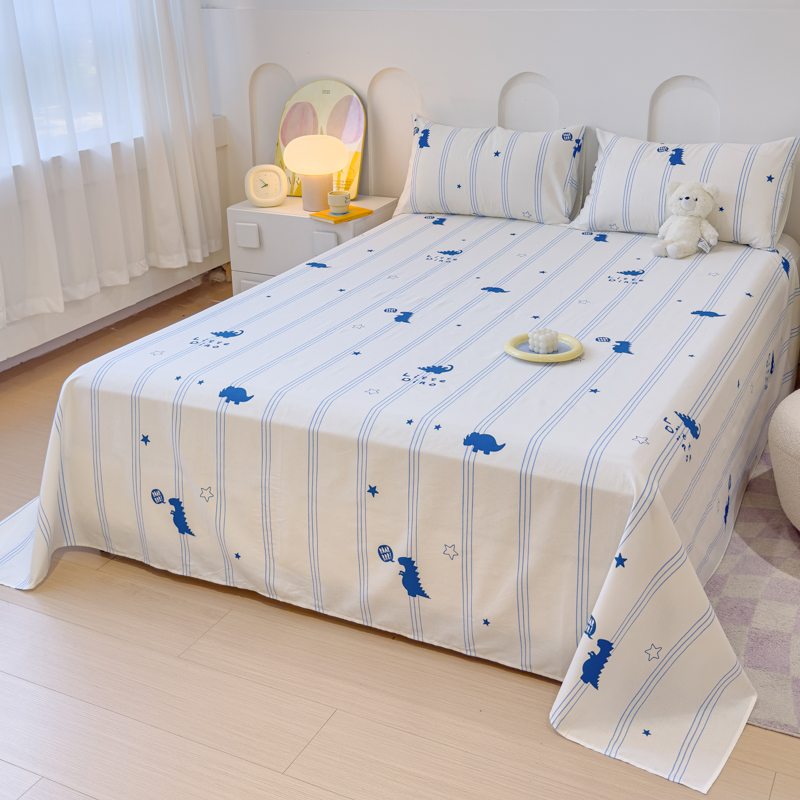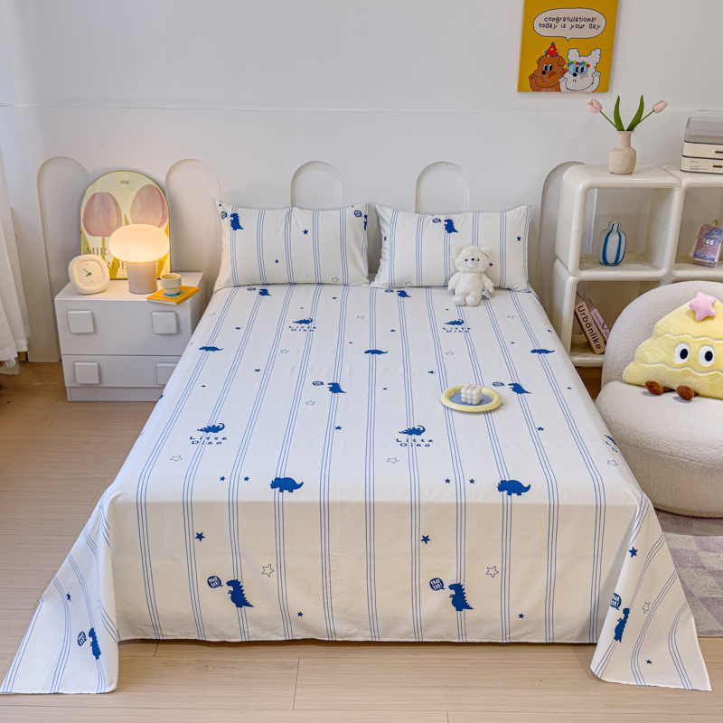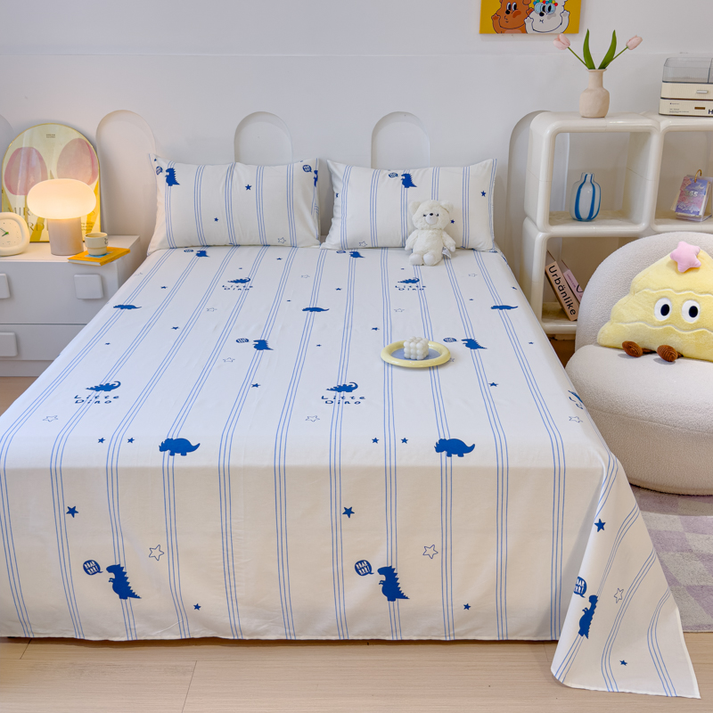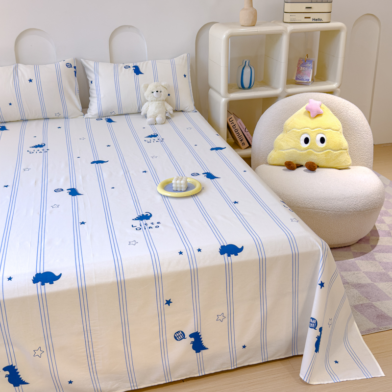 感遇家纺 2024新款纯棉床单床笠枕套 床单款-蓝条恐龙