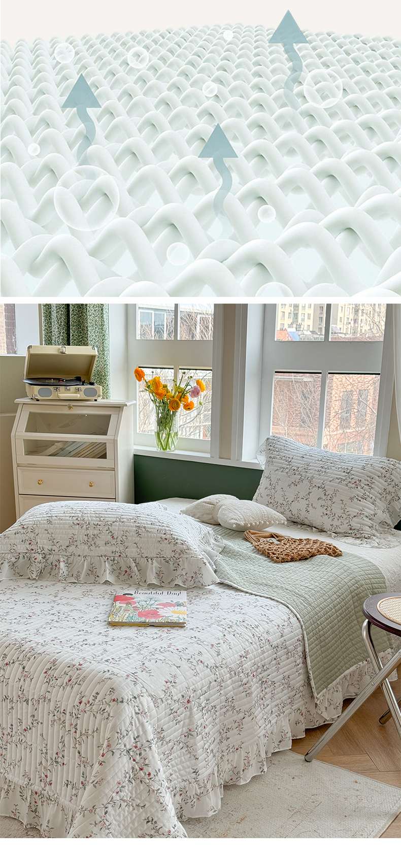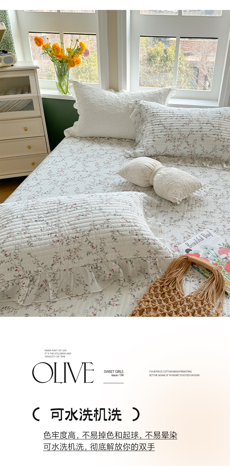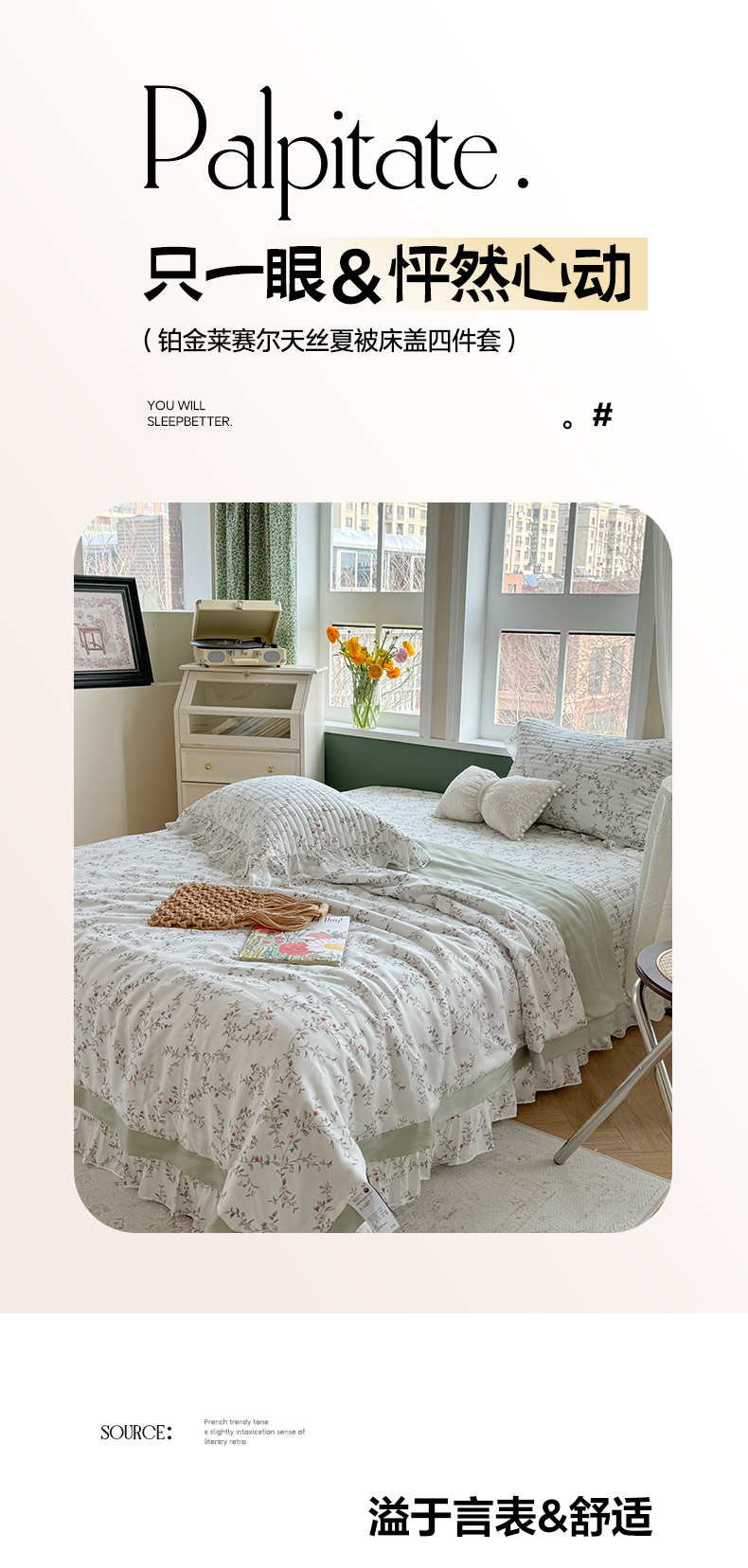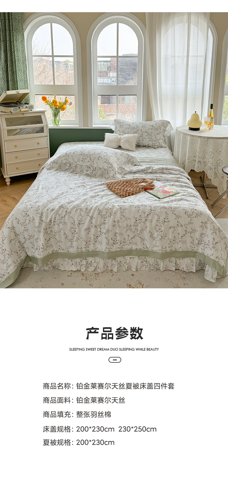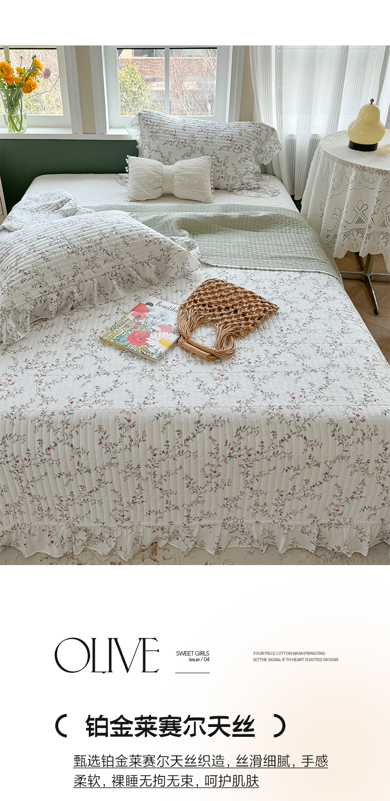 商品名称:诗黛尔 2024新款莱赛尔印花床盖三件套 悠然绿