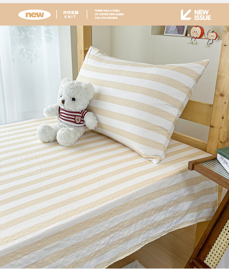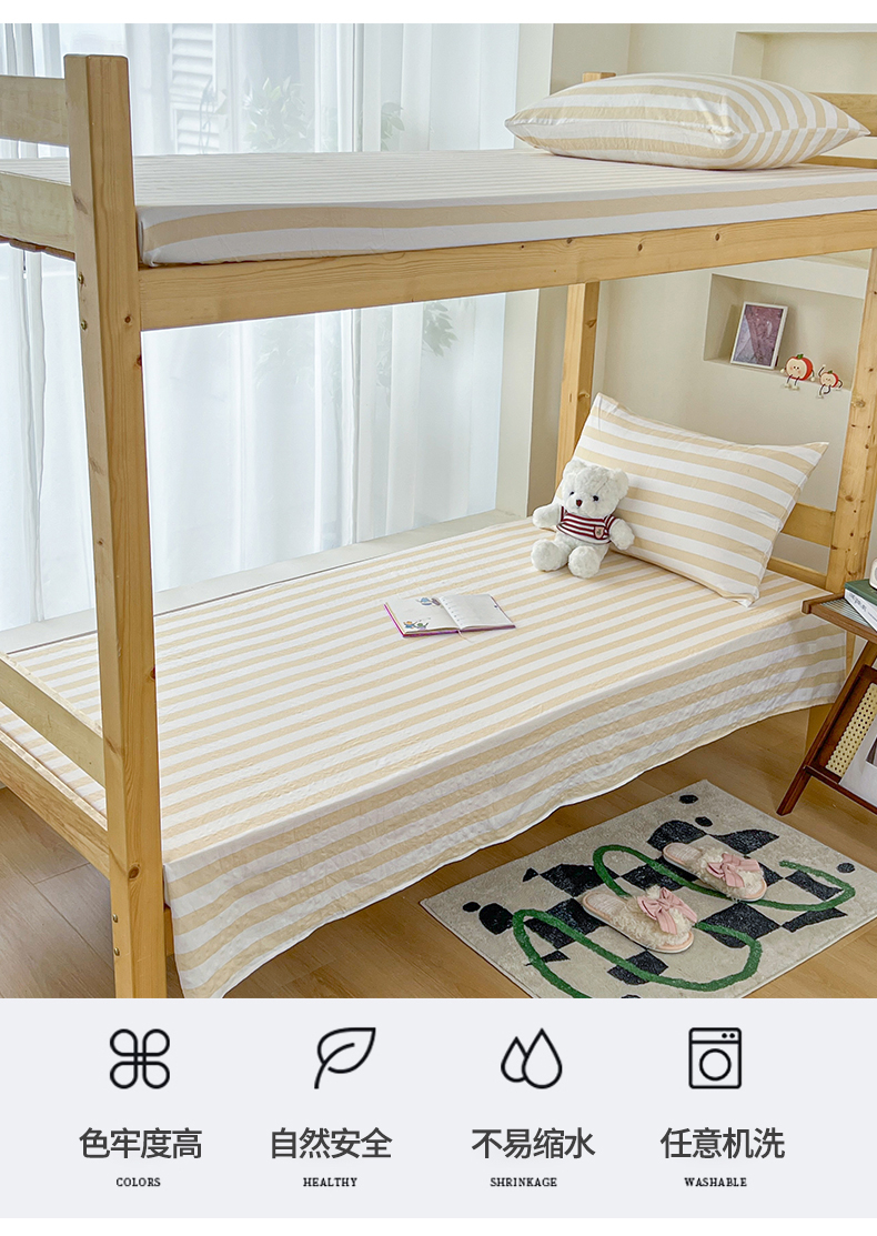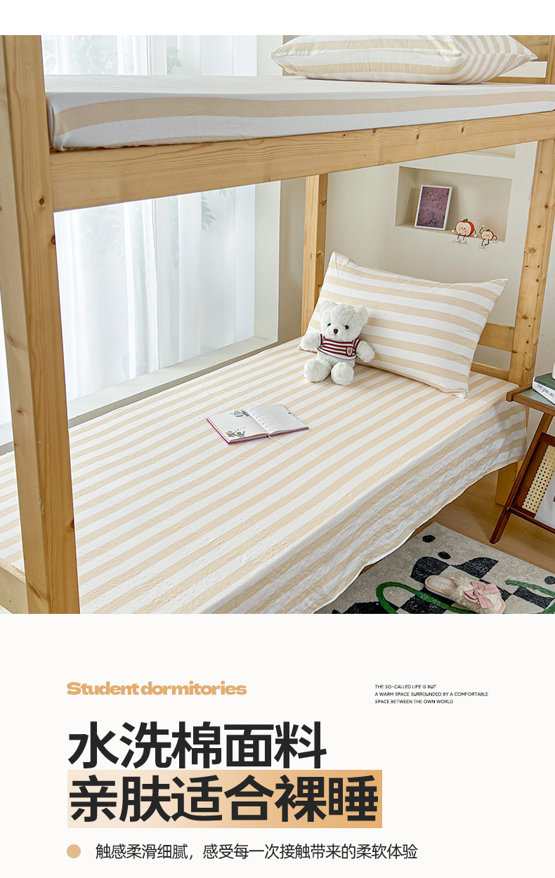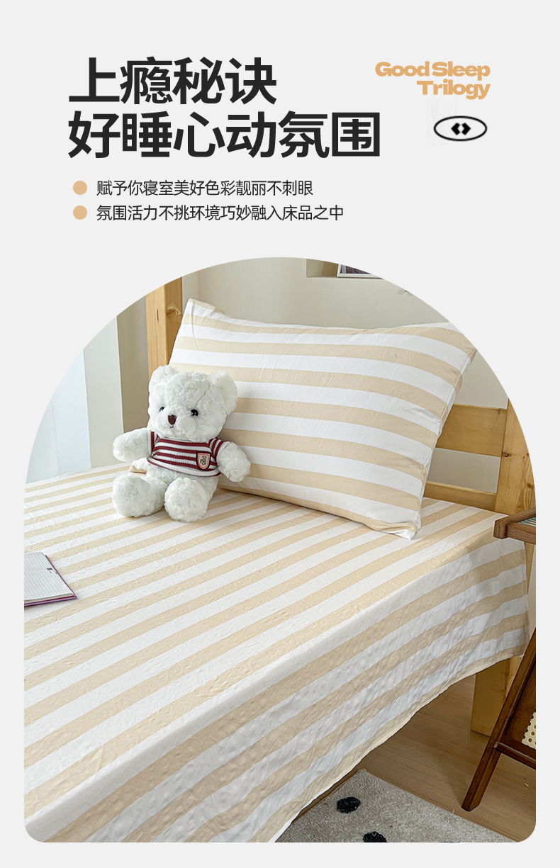 多品 2024新款水洗棉皱皱纱学生宿舍单床单 日系黄条