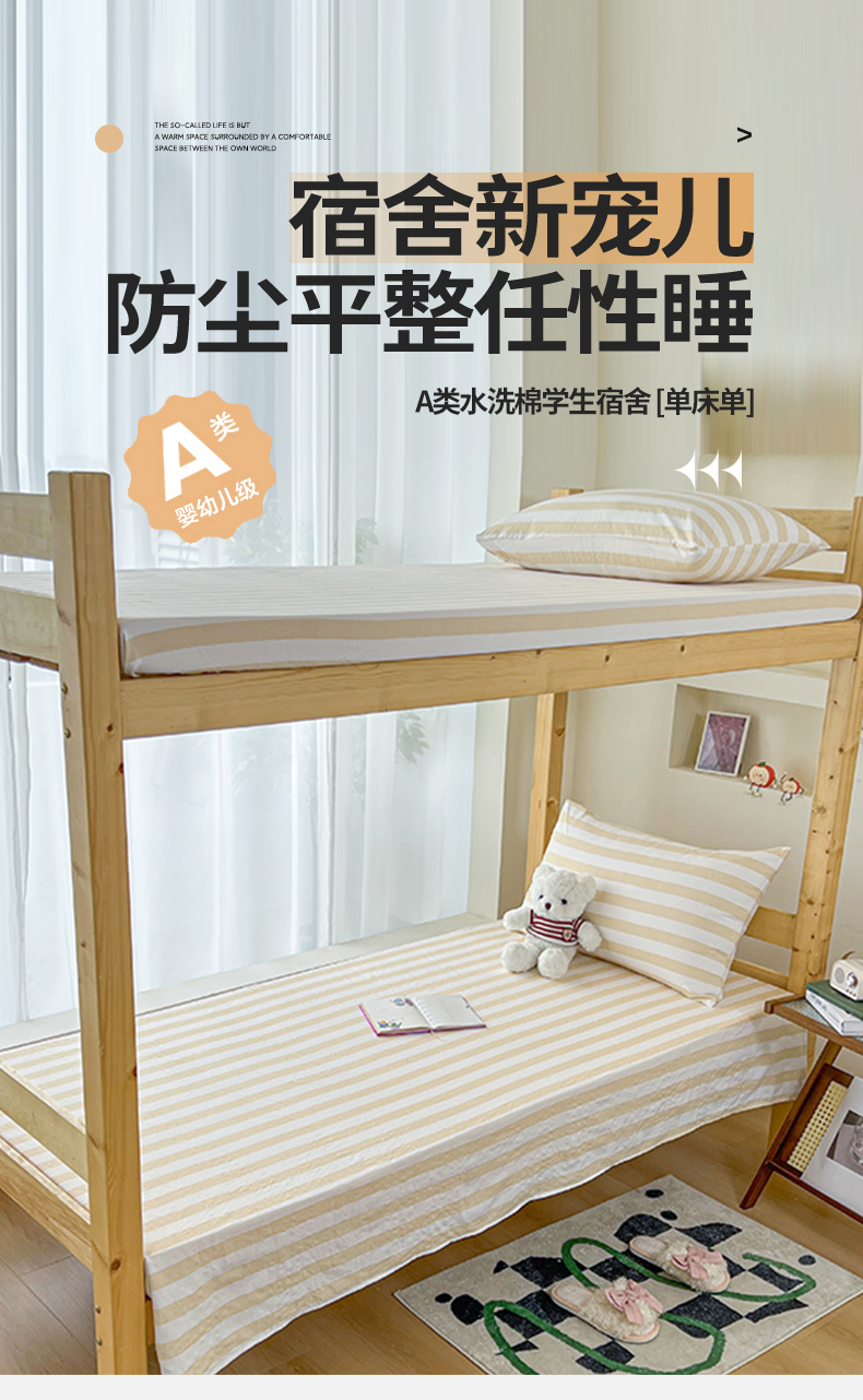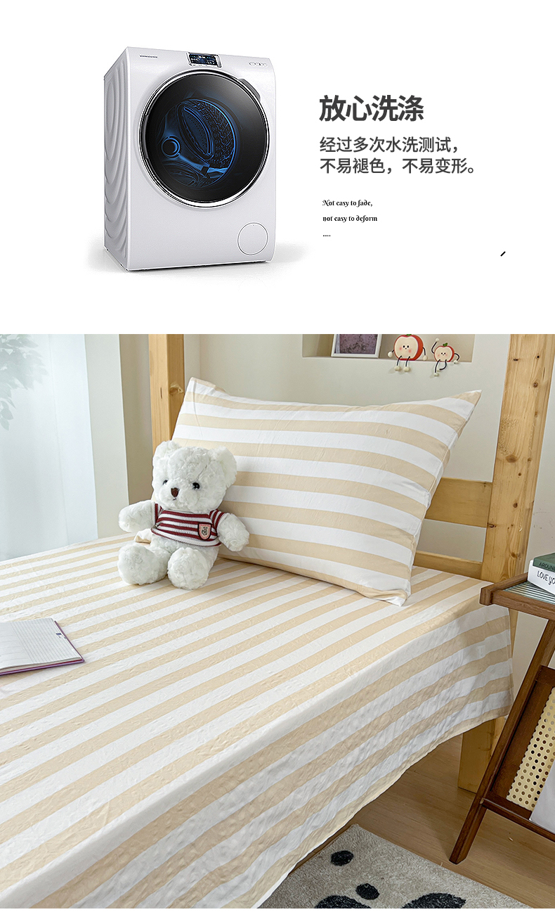• 91家纺网 家纺一手货源 找家纺 多品 2024新款水洗棉皱皱纱学生宿舍单床单 日系黄条