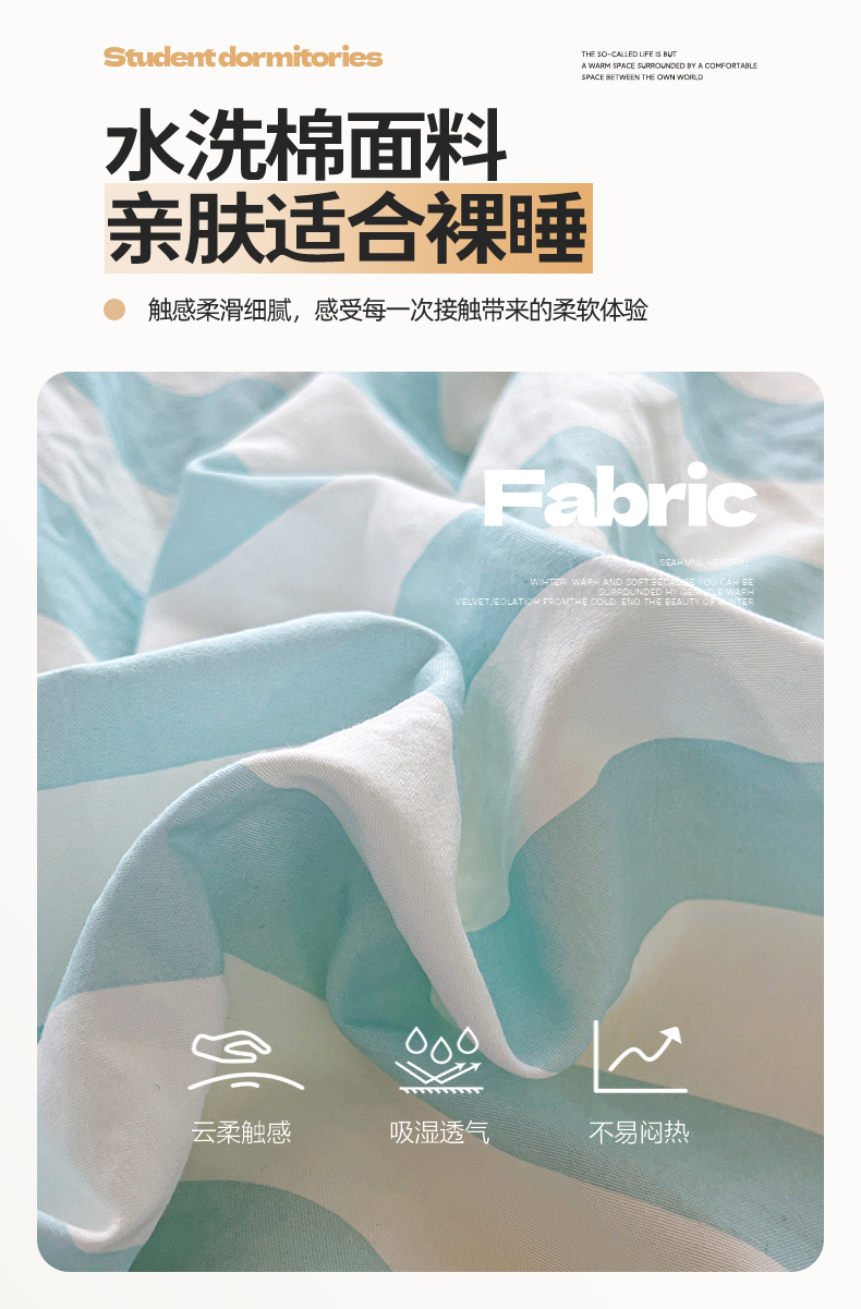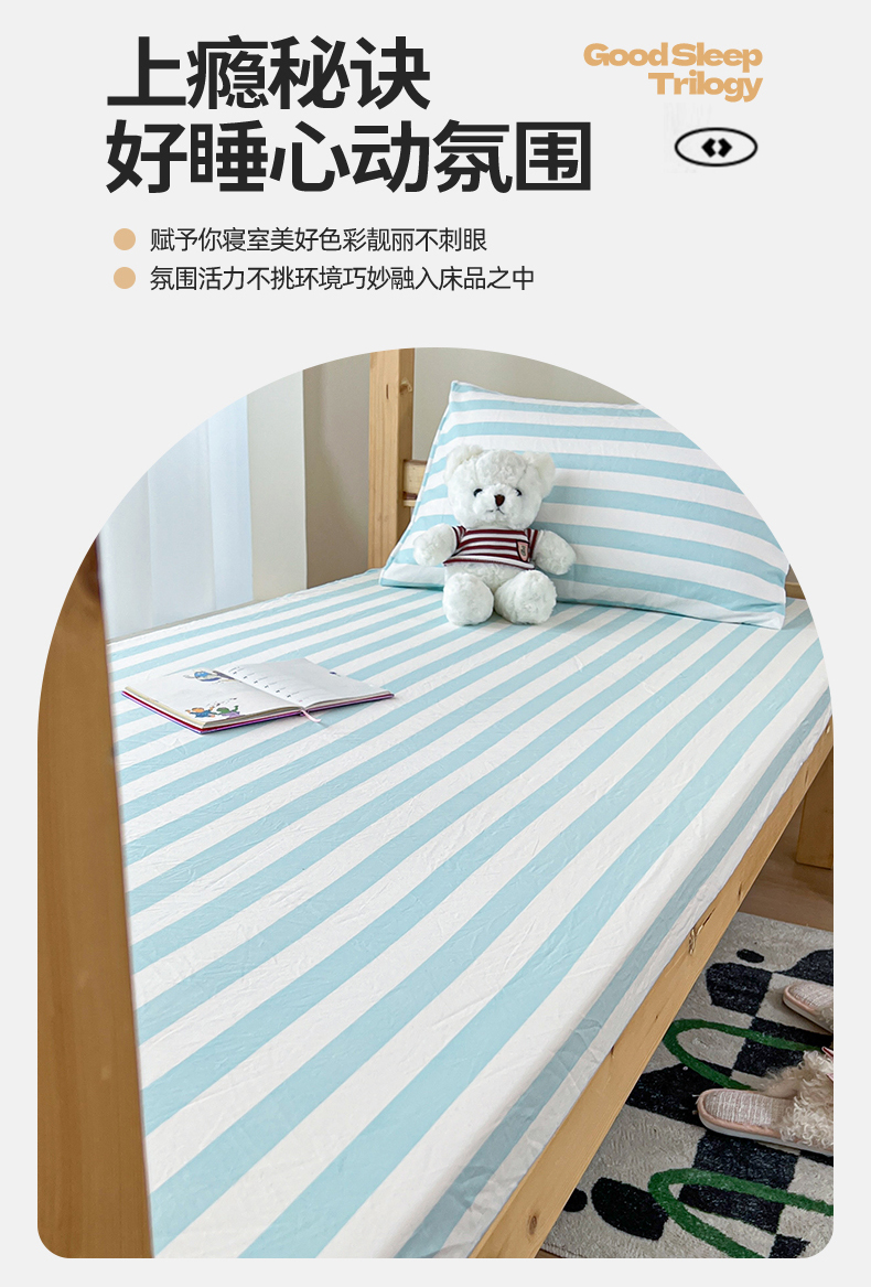 • 91家纺网 家纺一手货源 找家纺 多品 2024新款水洗棉皱皱纱学生宿舍单床笠 糯米蓝条