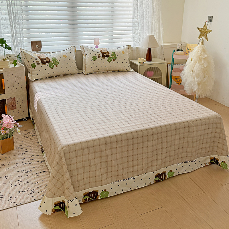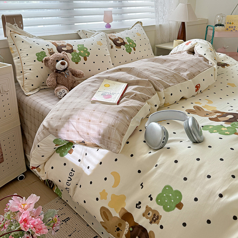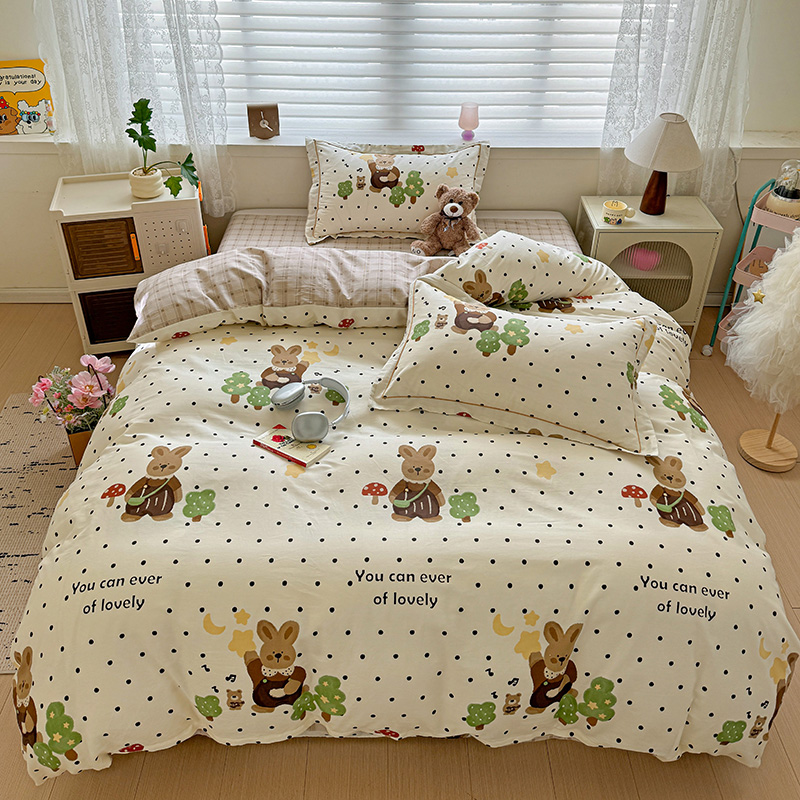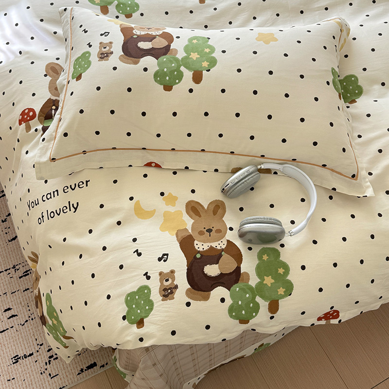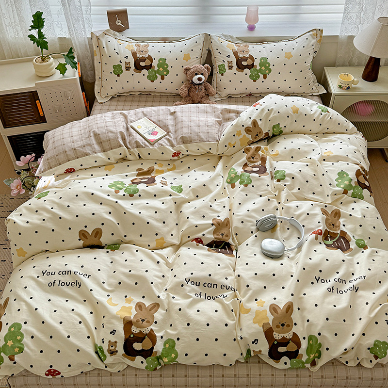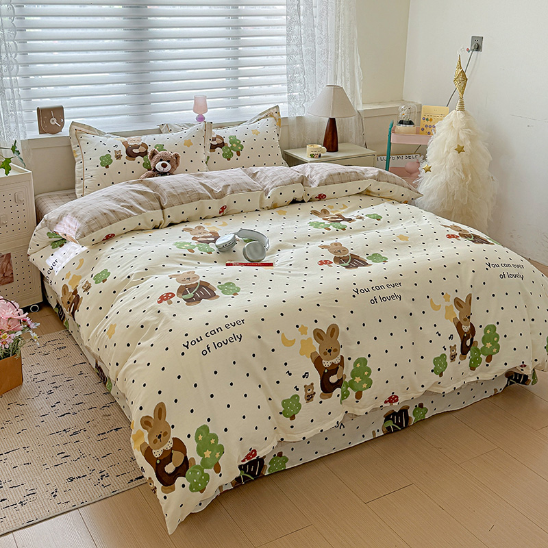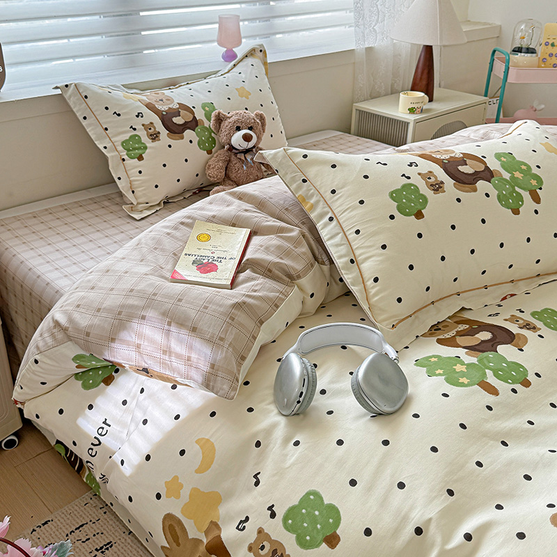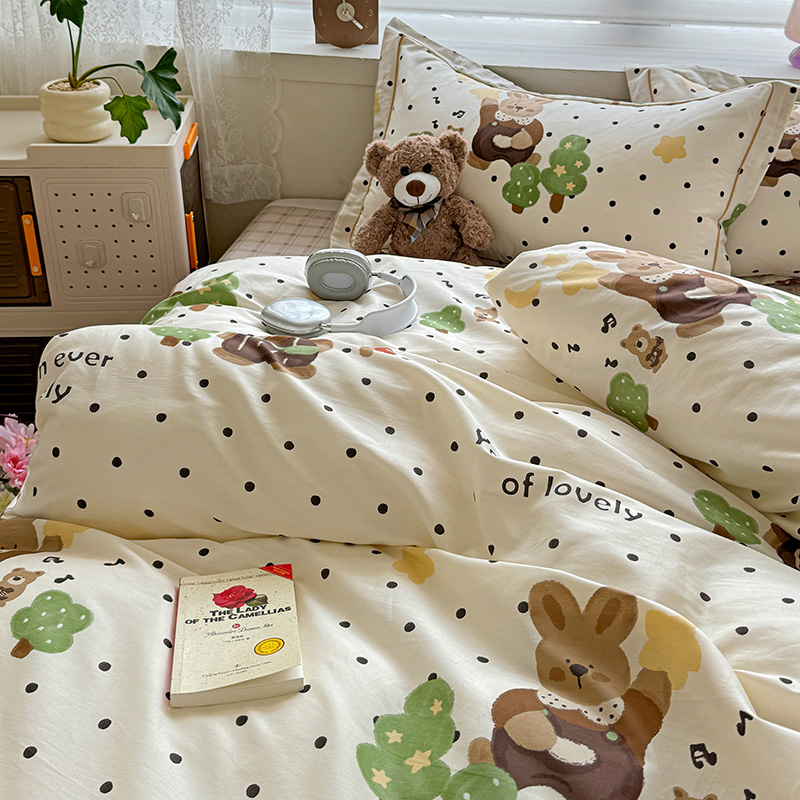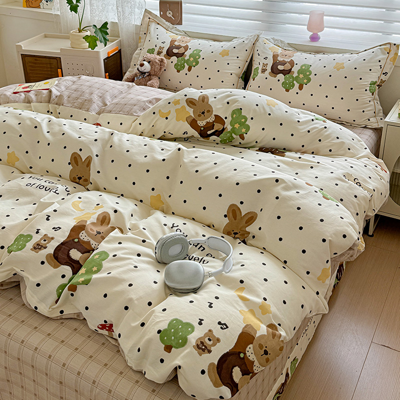 乐童 2024新款直播爆款13070纯棉印花吊边款一字绣四件套第八波波点学院熊
