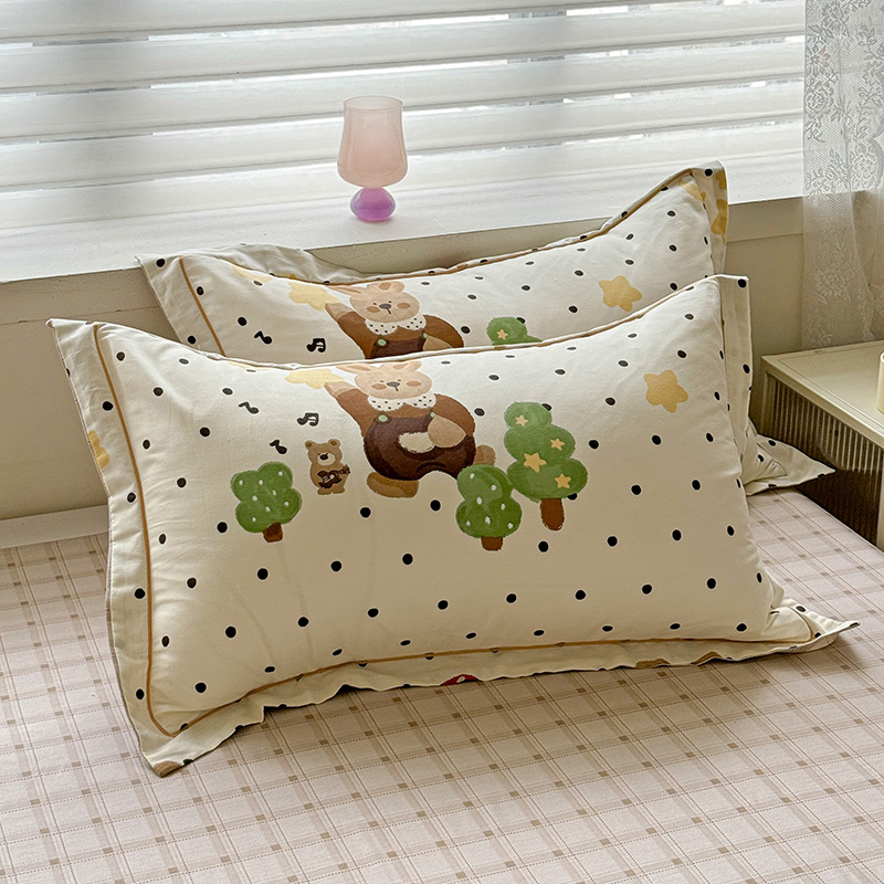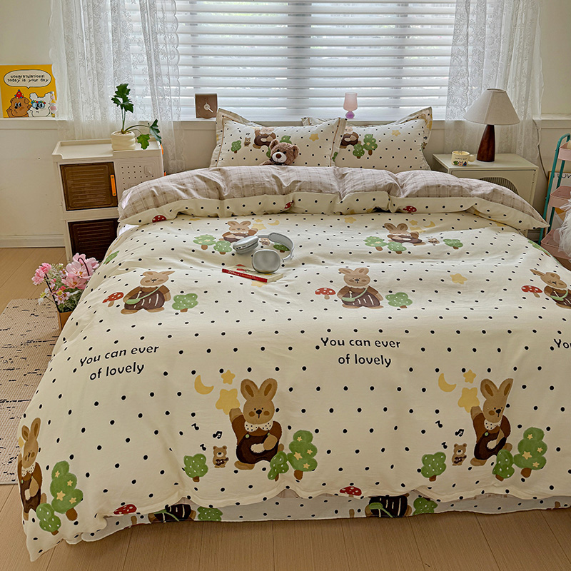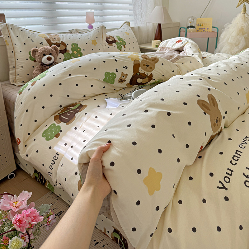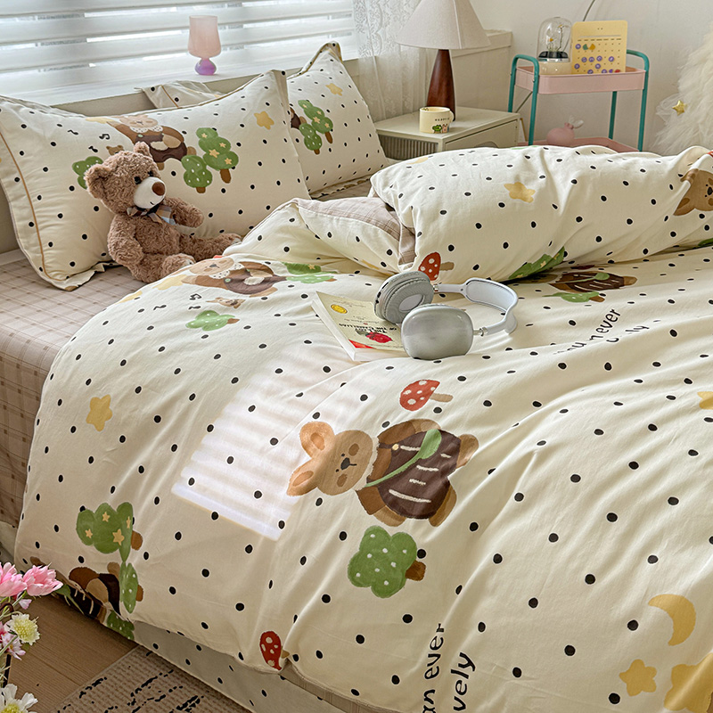 商品名称:乐童 2024新款直播爆款13070纯棉印花吊边款一字绣四件套第八波波点学院熊