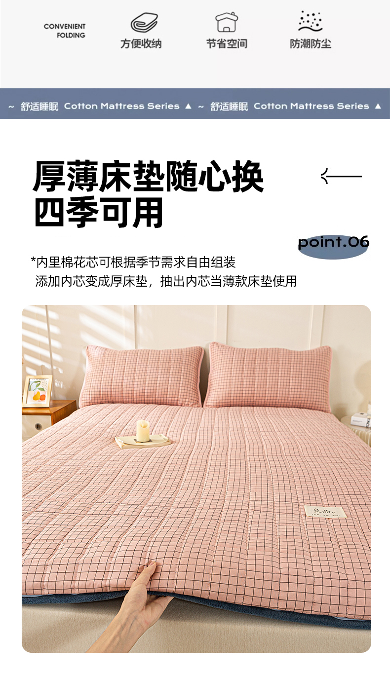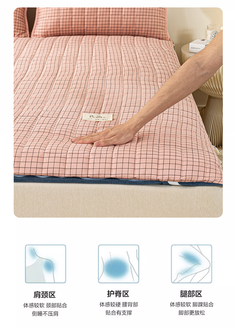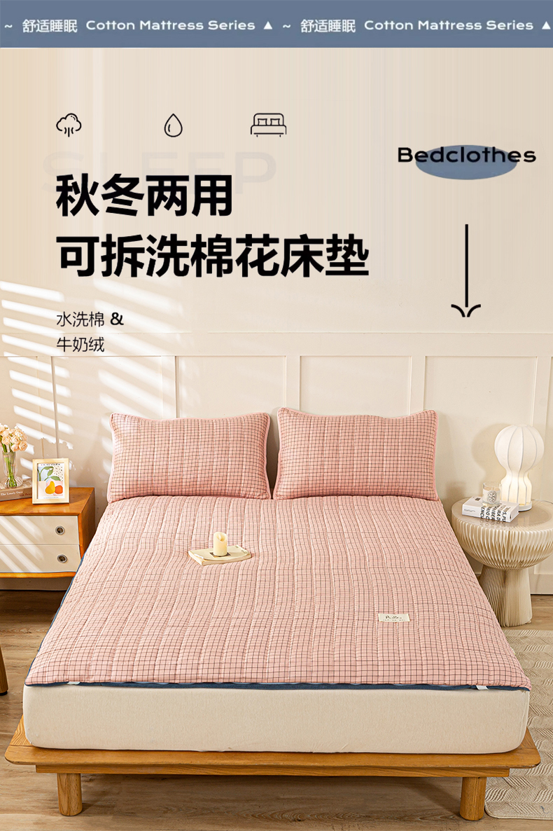 当前位置: 91家纺网 > 商品网购 > 床垫/床褥 > 普通床垫 > 萌飞 2024新款四季款秋冬两用可拆洗棉花学生床垫子牛奶绒褥子 艾格粉