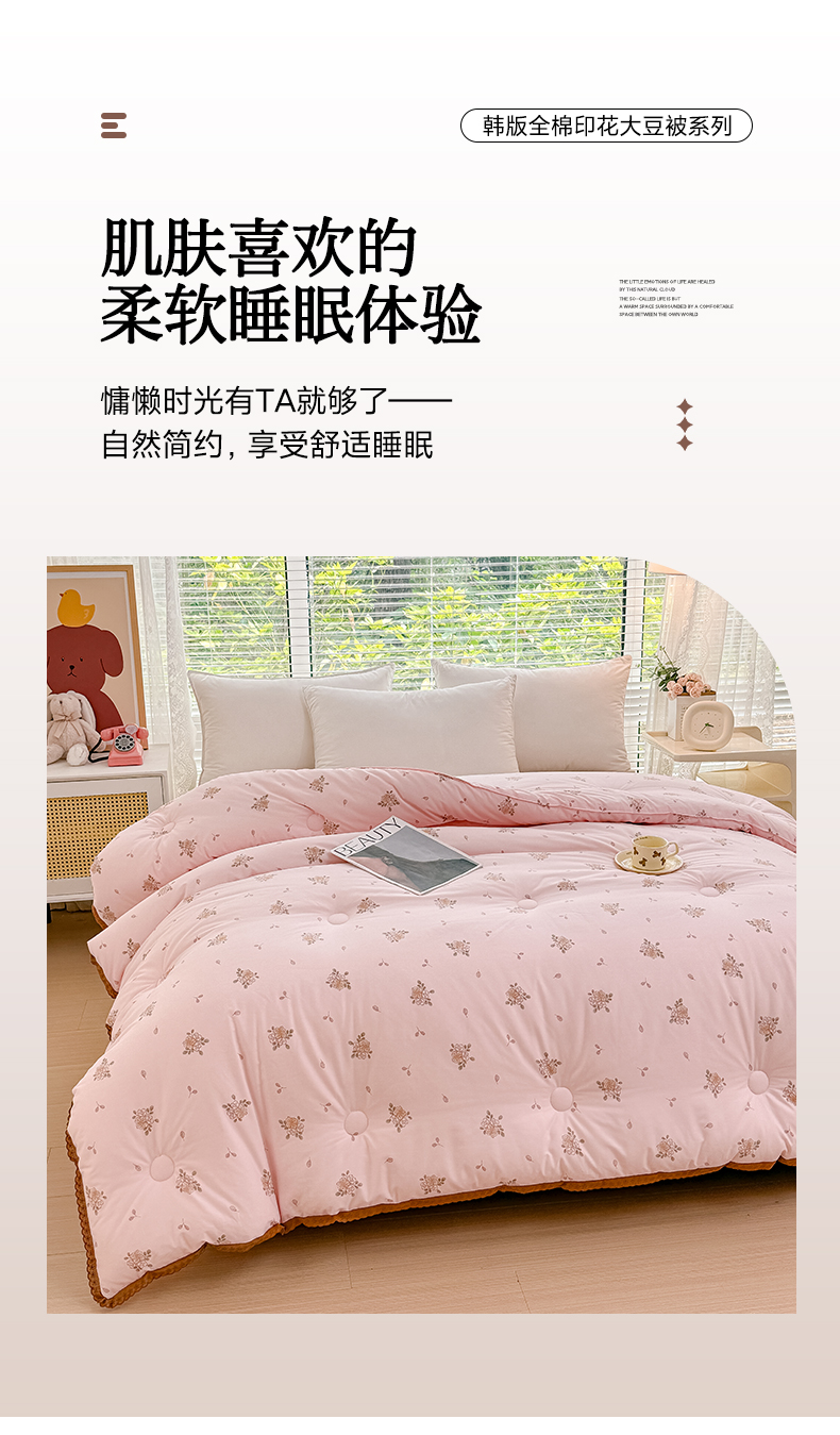 • 91家纺网 家纺一手货源 找家纺 心悦 2024新款韩版全棉印花大豆被系列 记忆花香兰色